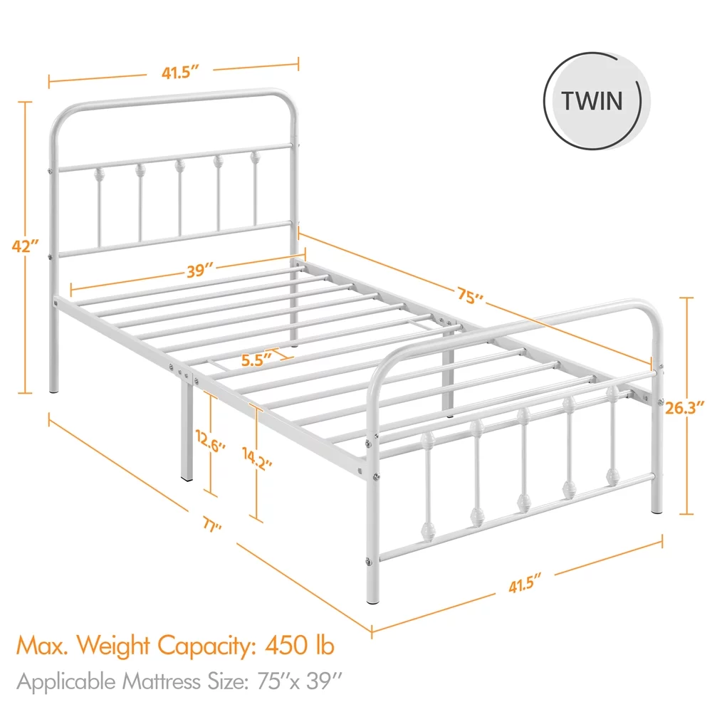 Voilamart Metal Twin Bed Frame Slatted Bed Base with Headboard and Footboard, Platform Bed for Kids Adults, White