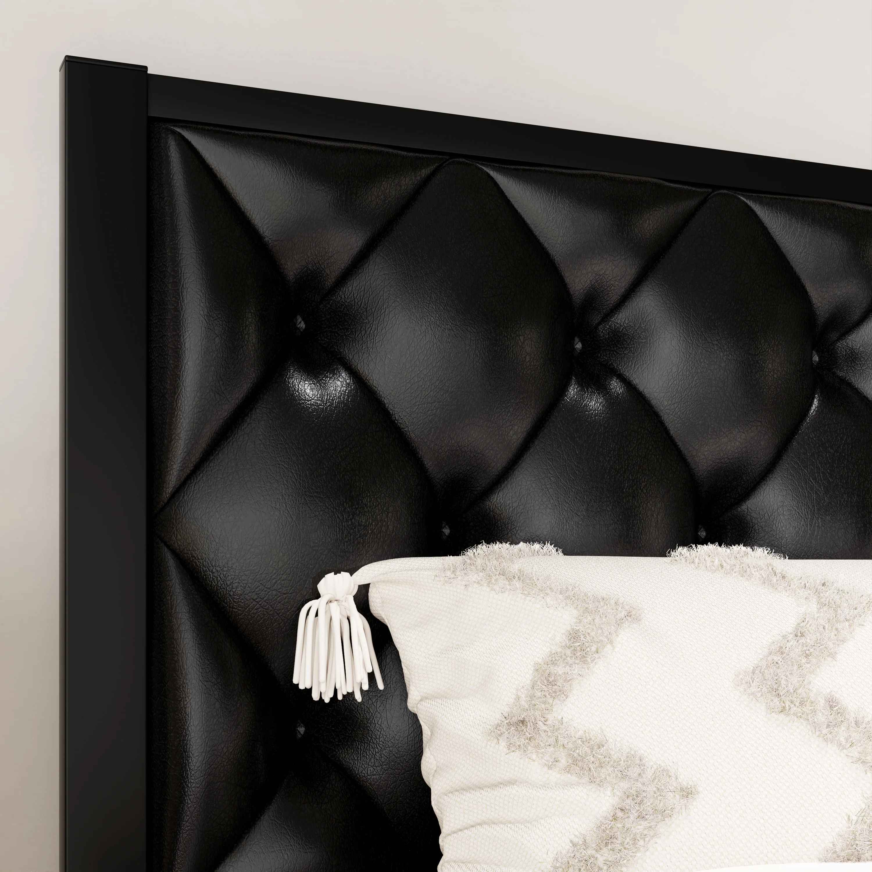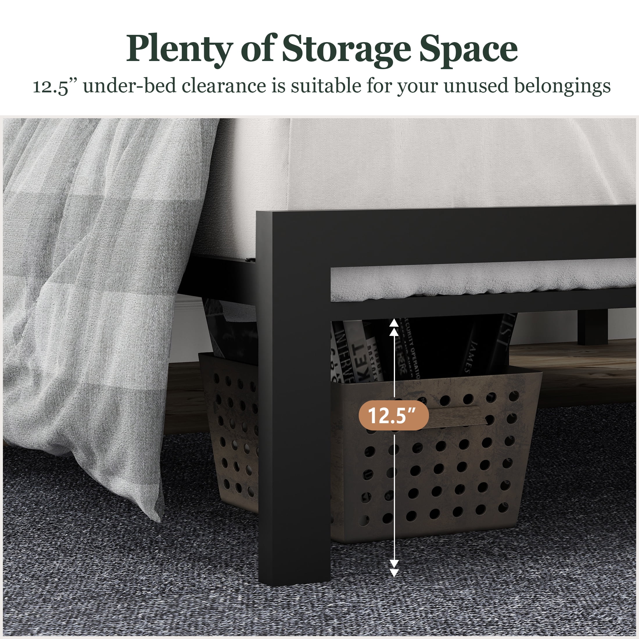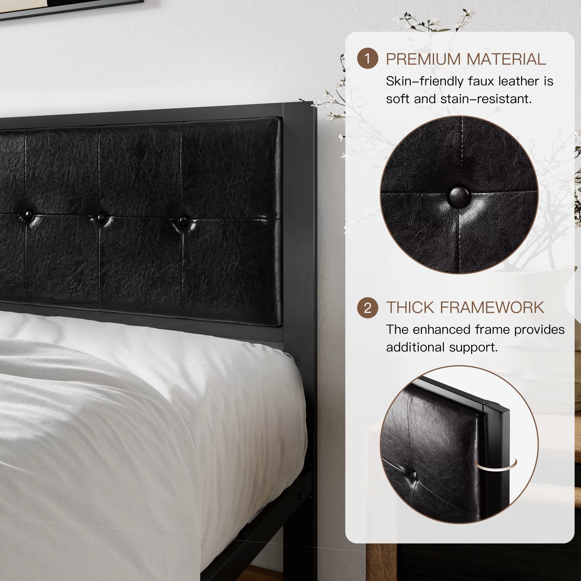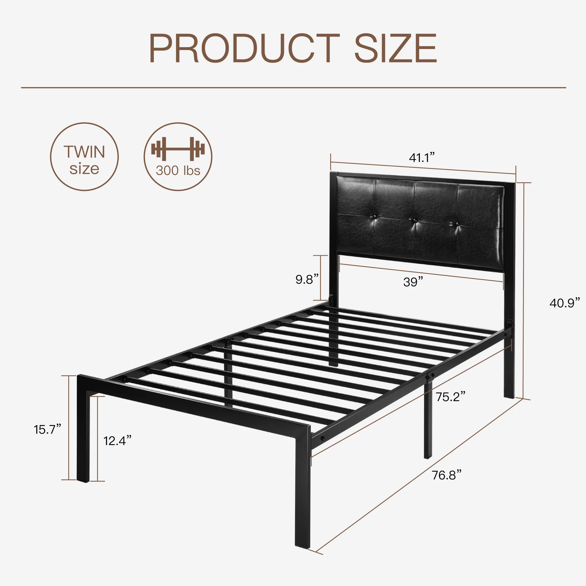 Sha Cerlin Twin Size Metal Platform Bed Frame with Faux Leather Tufted Headboard & Underbed Storage, Black