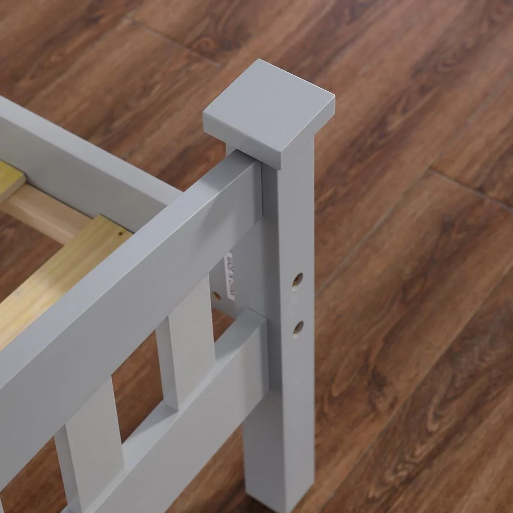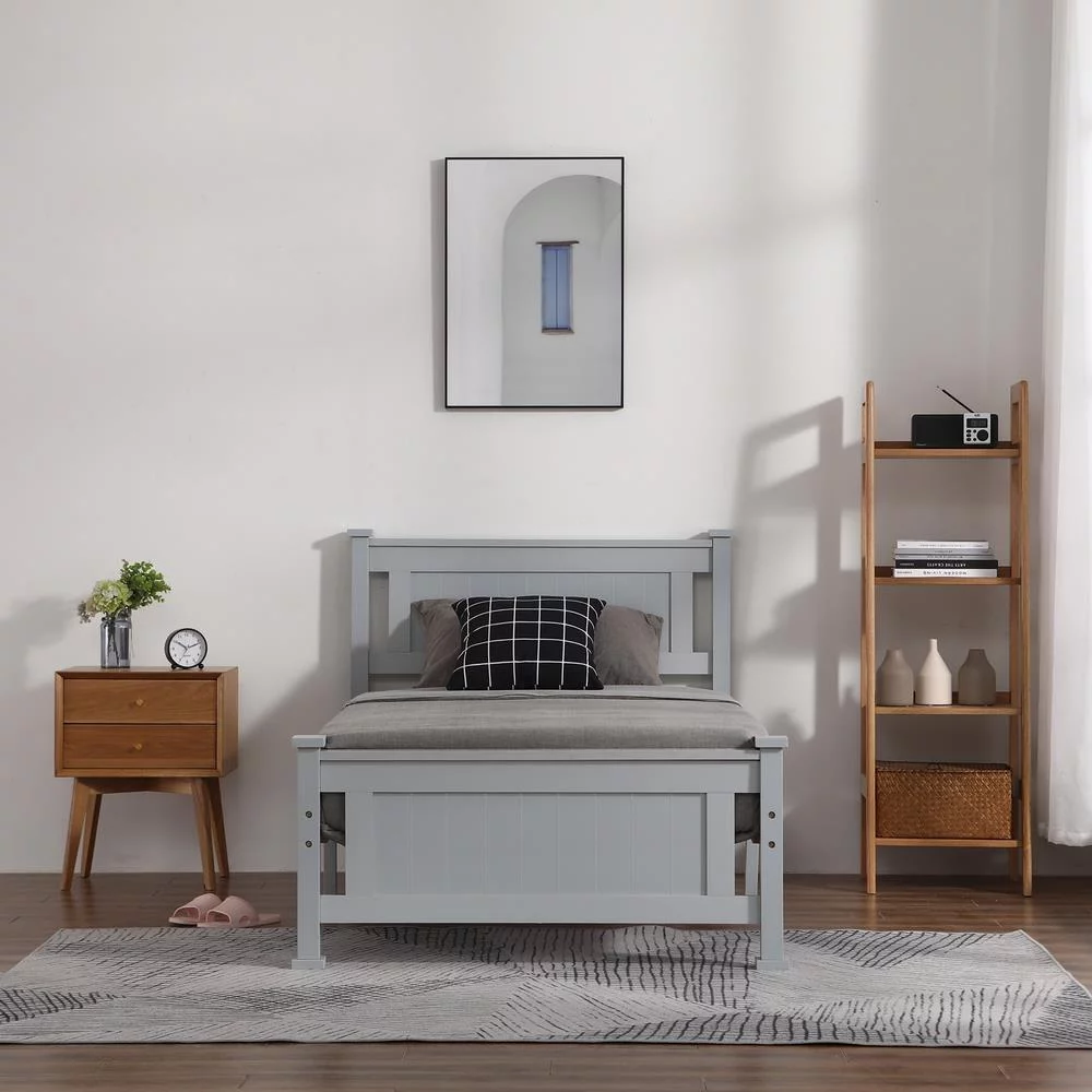 Ktaxon Twin Bed Frame,Solid Pine Wood Kids Twin Platform Bed Frame, Bedroom Twin Bed with Headboard for Adults, Gray