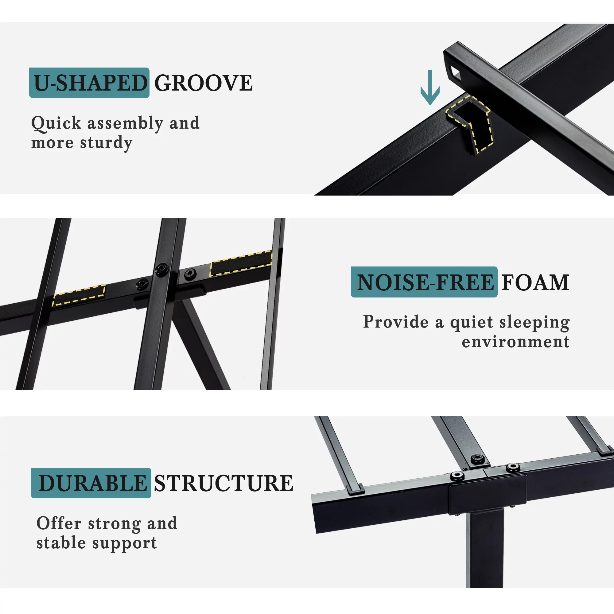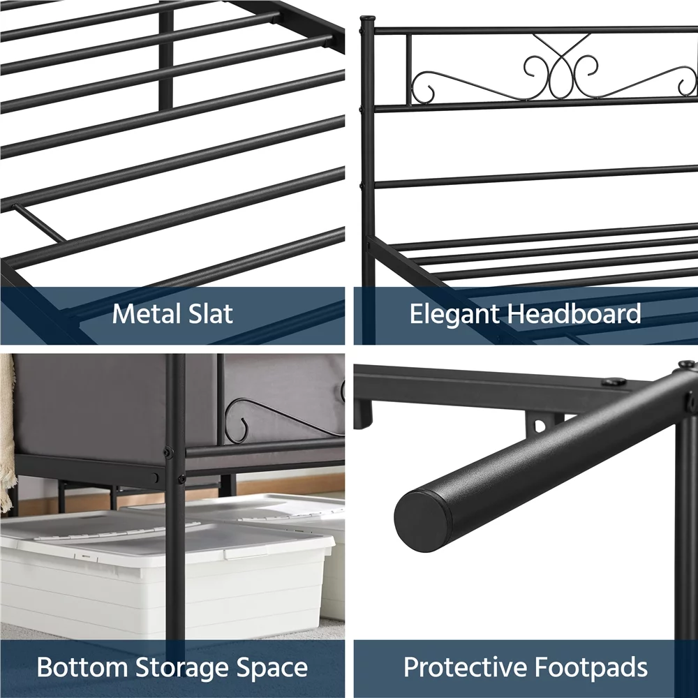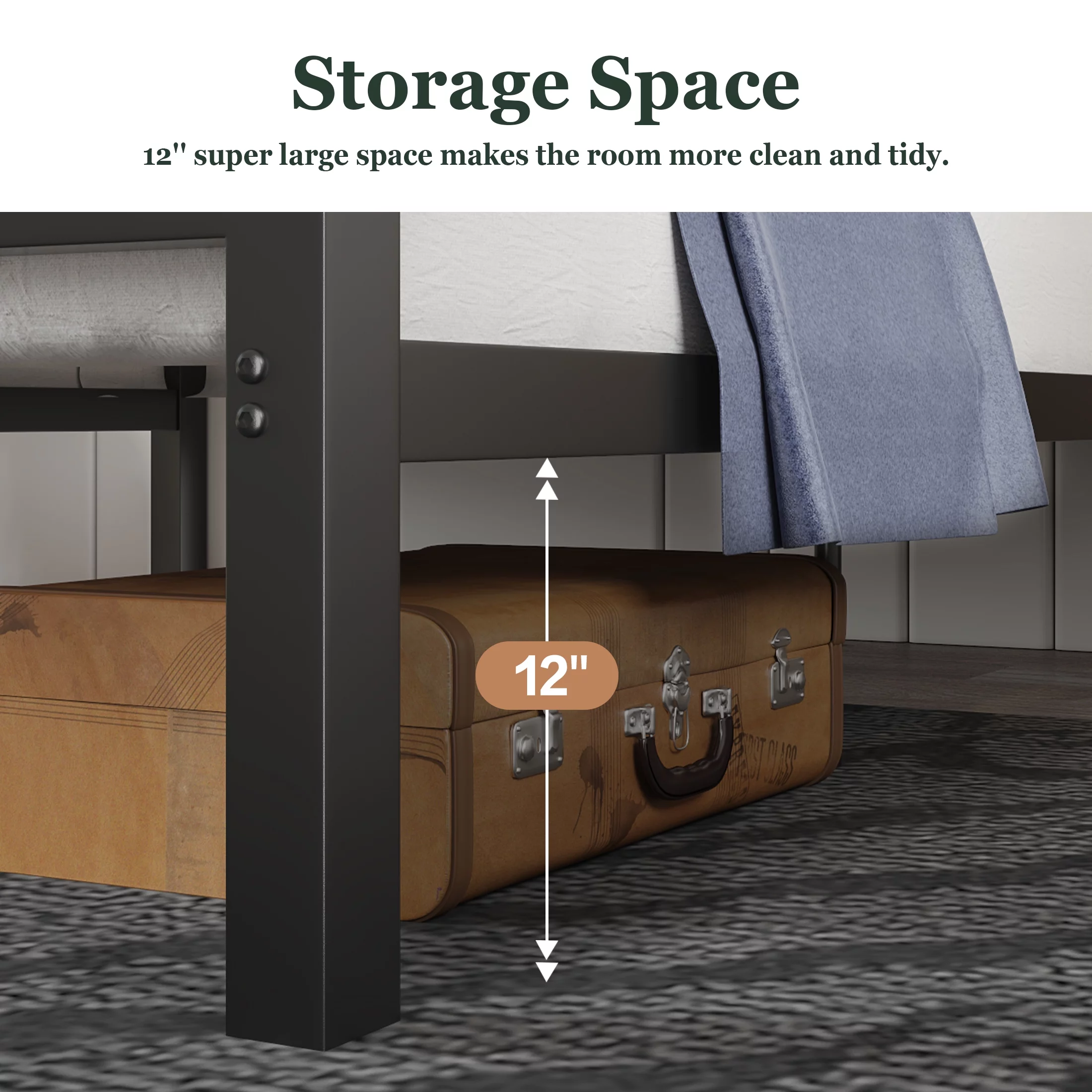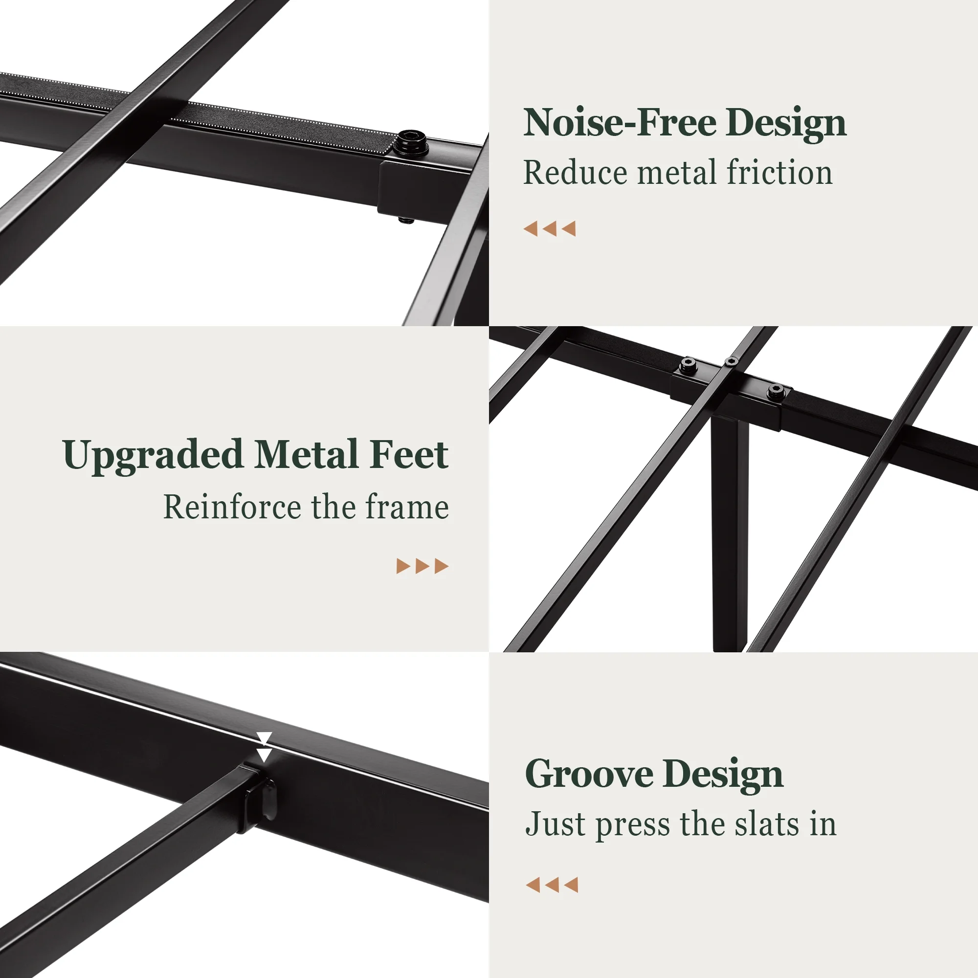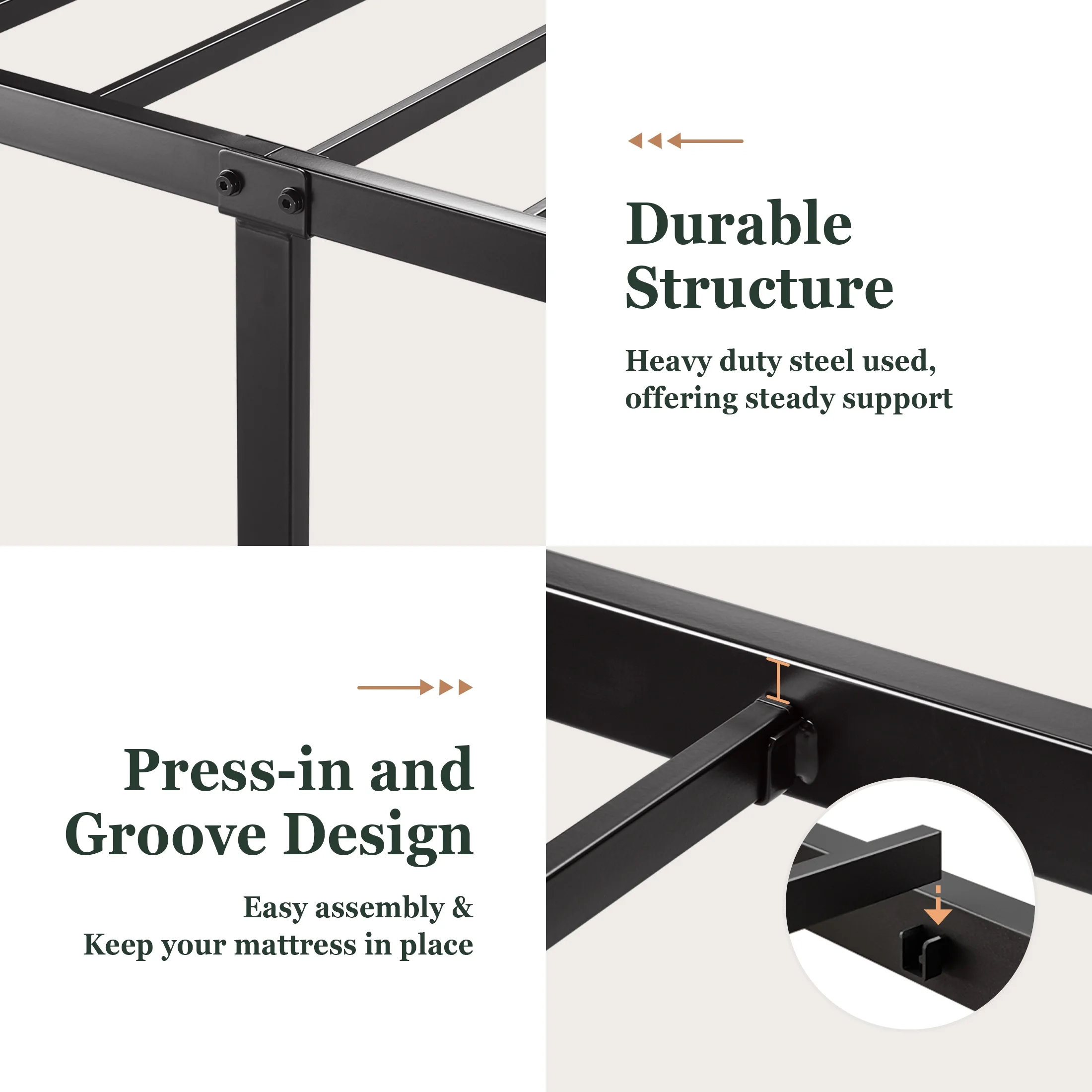 Rooflare 14'' Heavy Duty Twin Metal Platform Bed Frame for Adult,Black