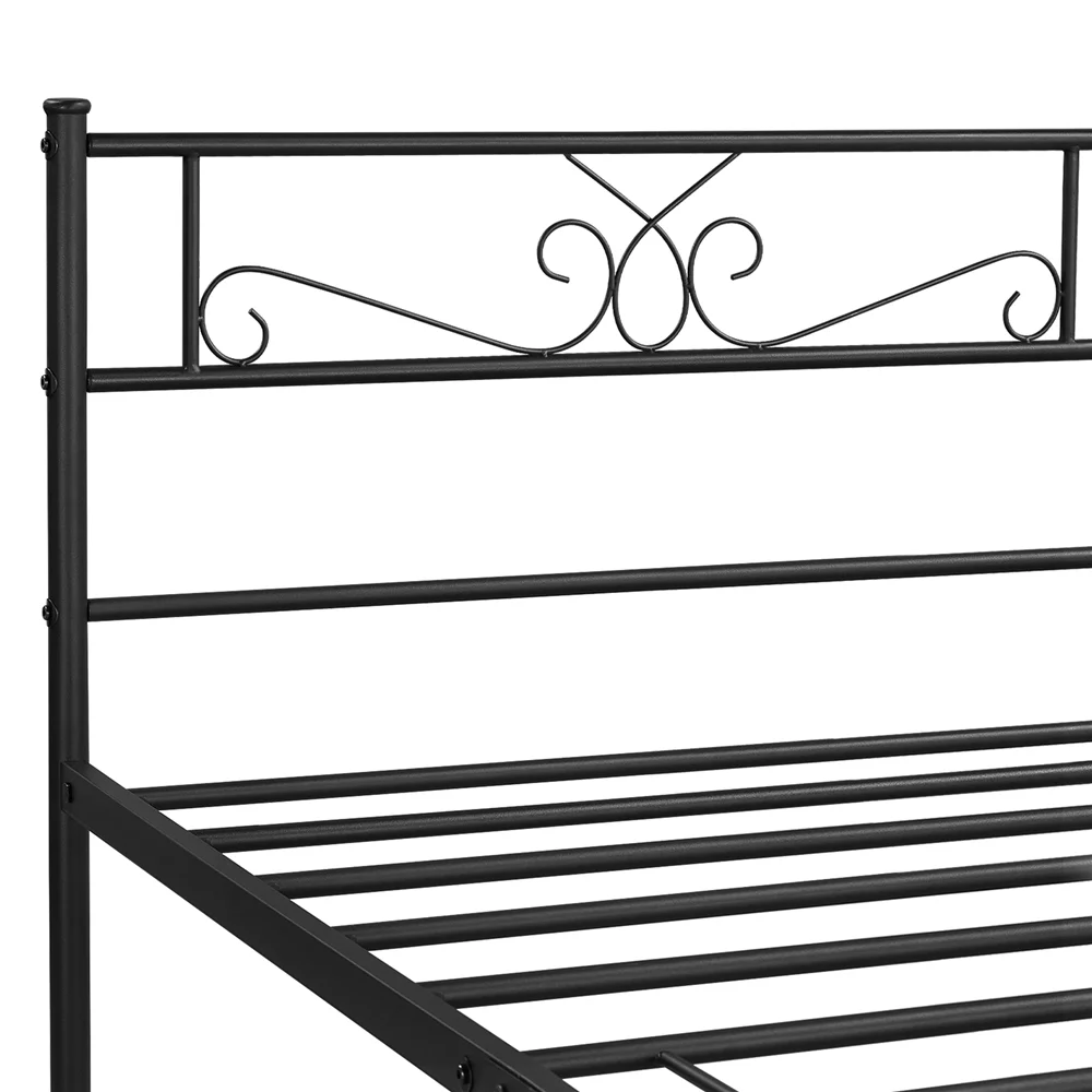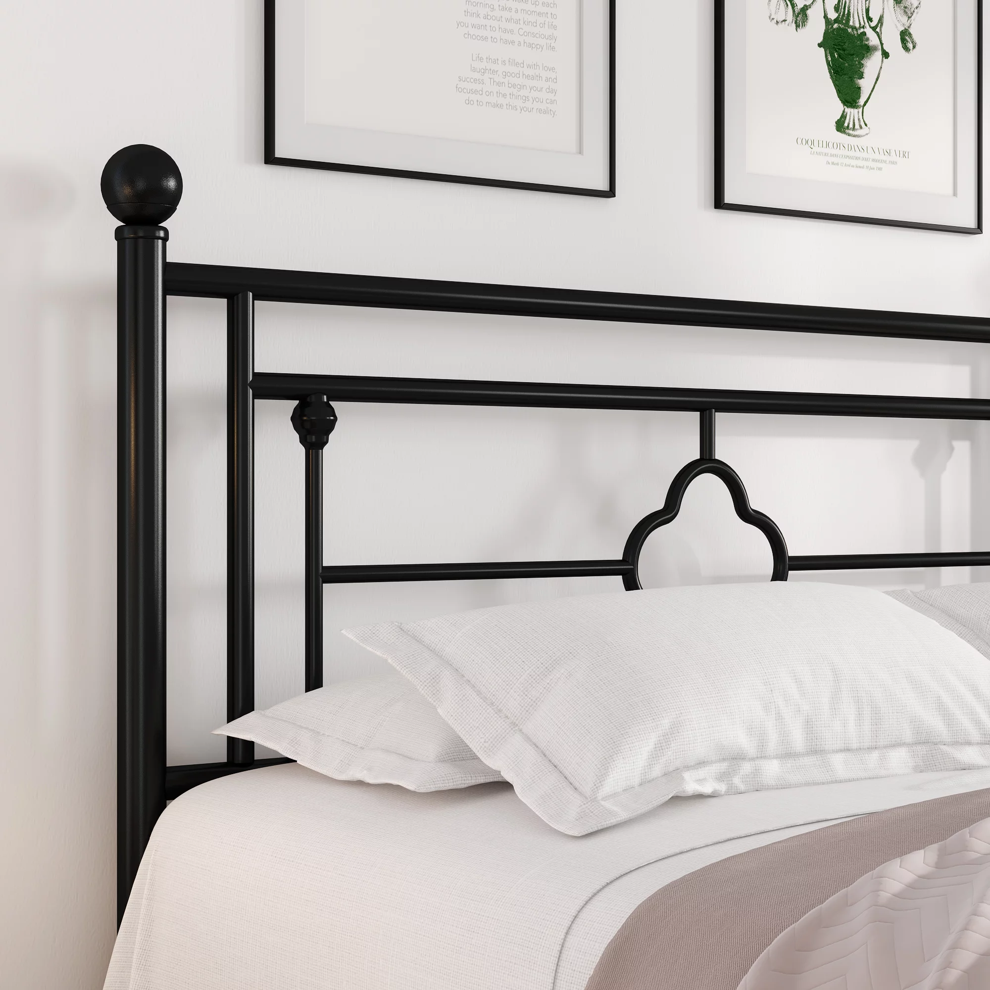 Einfach Queen Size Heavy Metal Bed with Vintage Headboard Pattern, Black