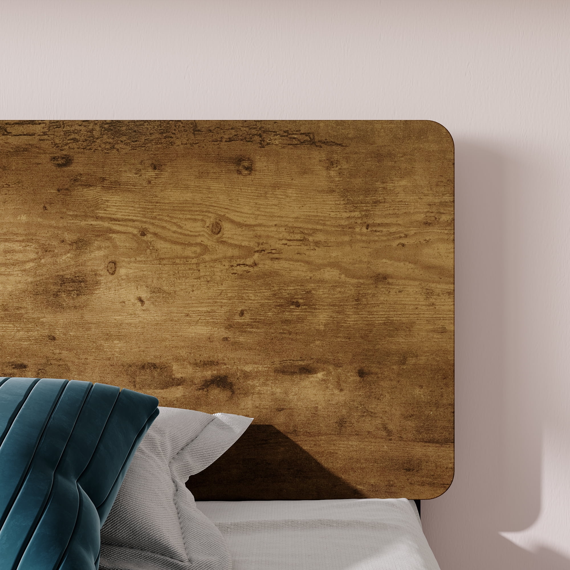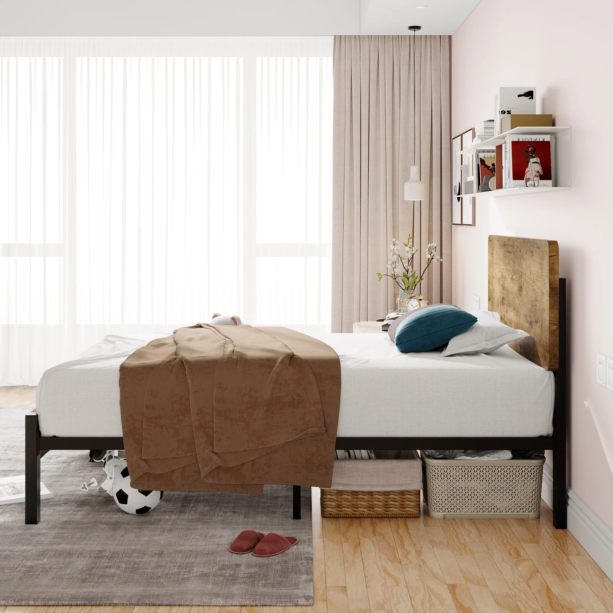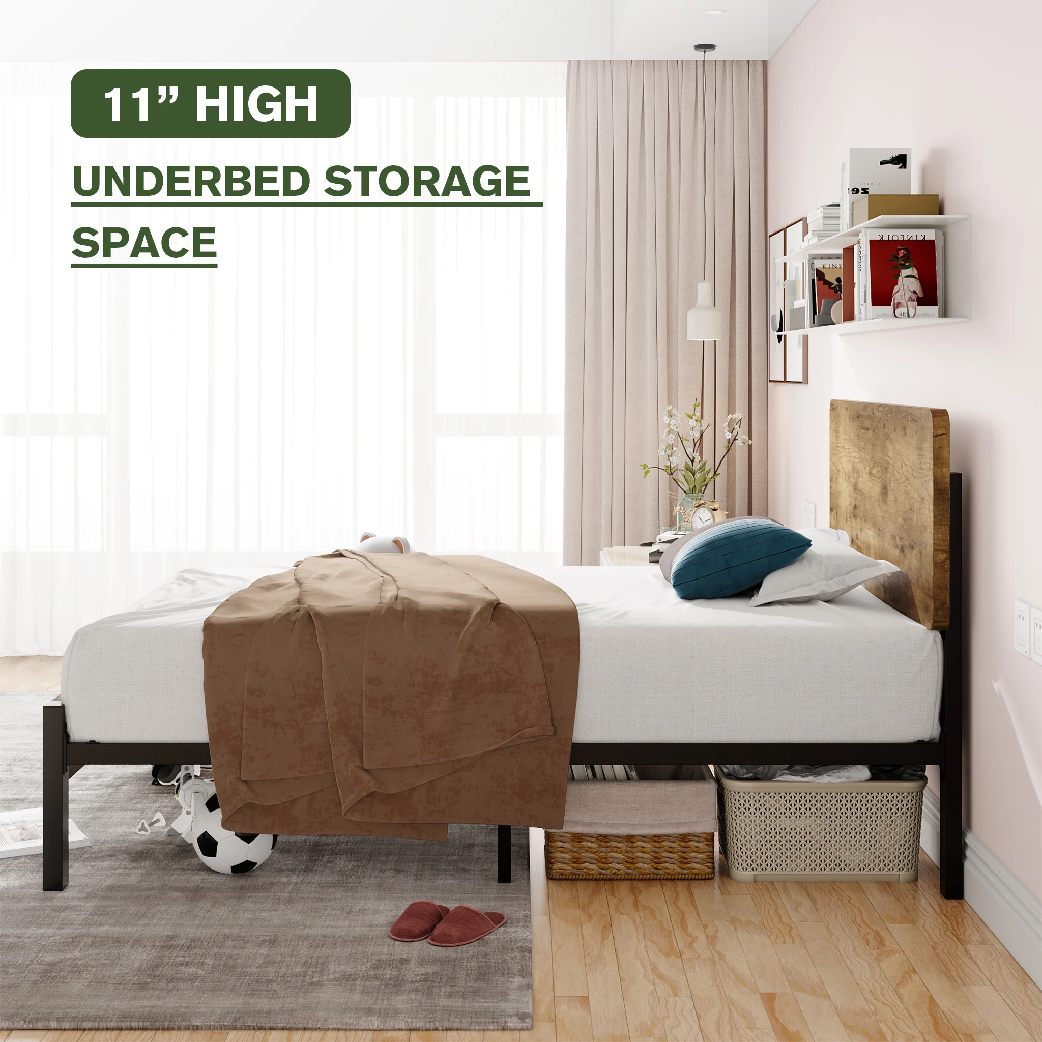 Yaheetech Rustic Metal Platform Bed with Wooden Headboard and Footboard, Twin Size, Mahogany