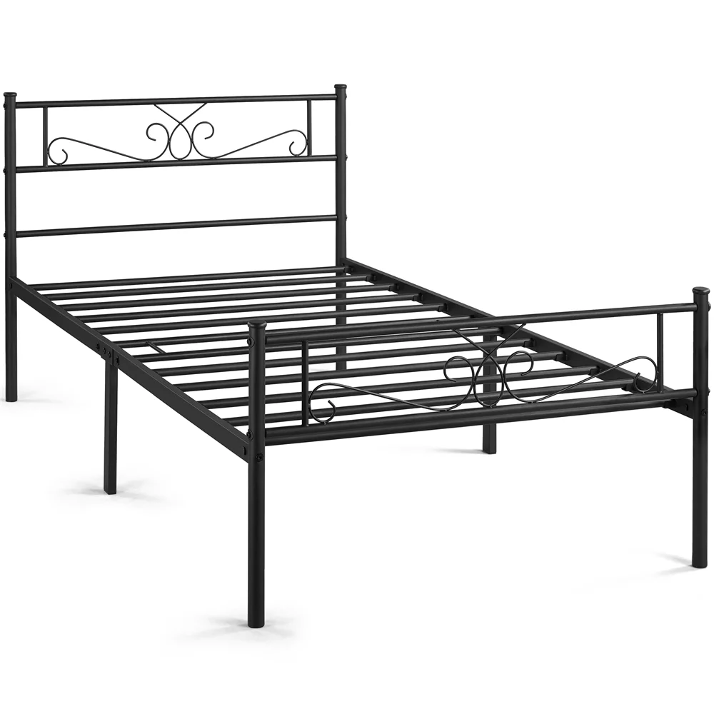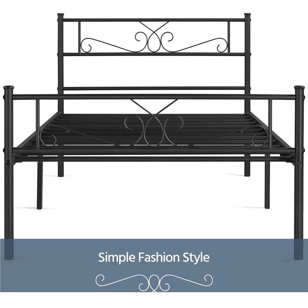 Topeakmart Twin Size Metal Platform Bed Frame with Headboard and Footboard, Black