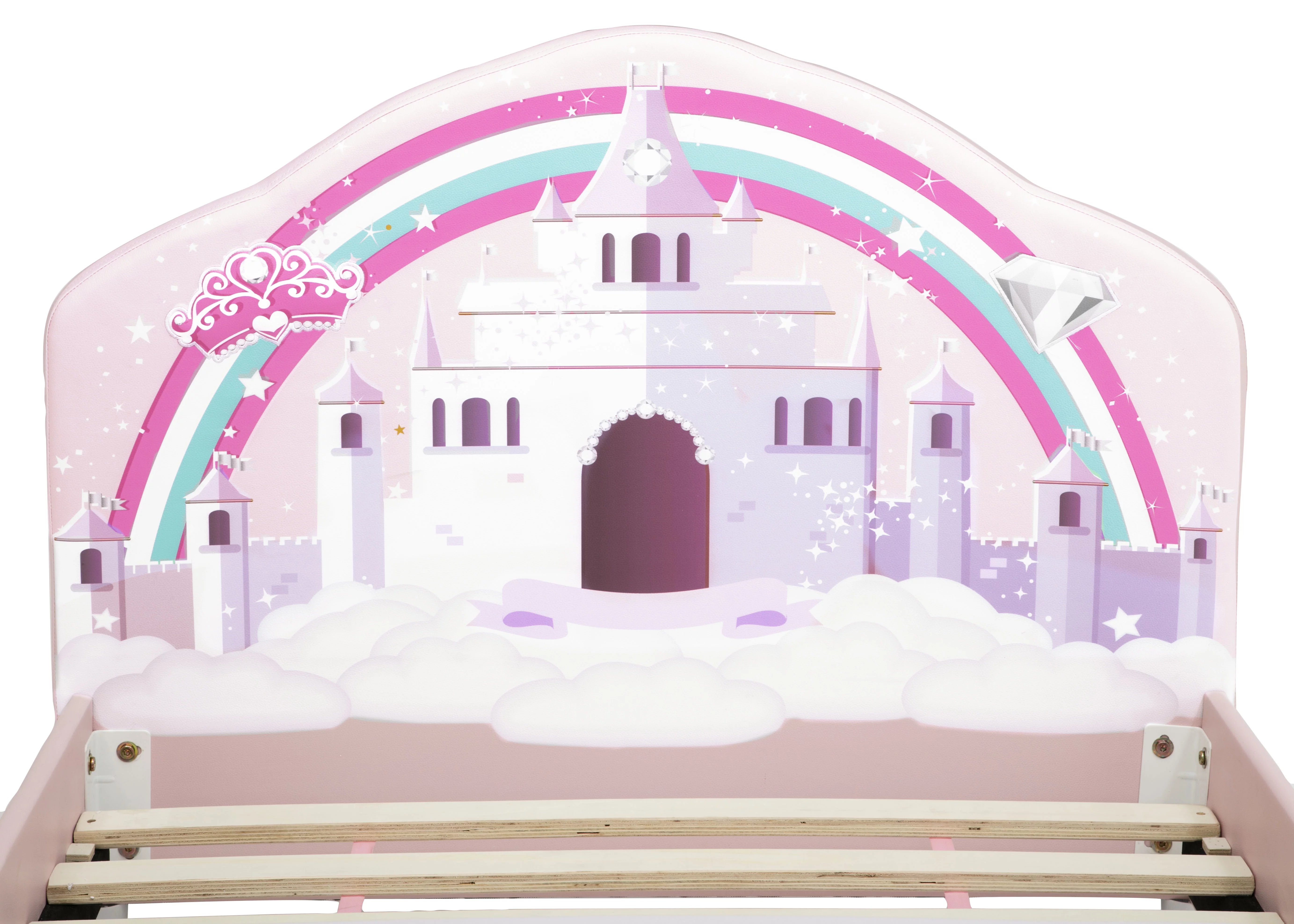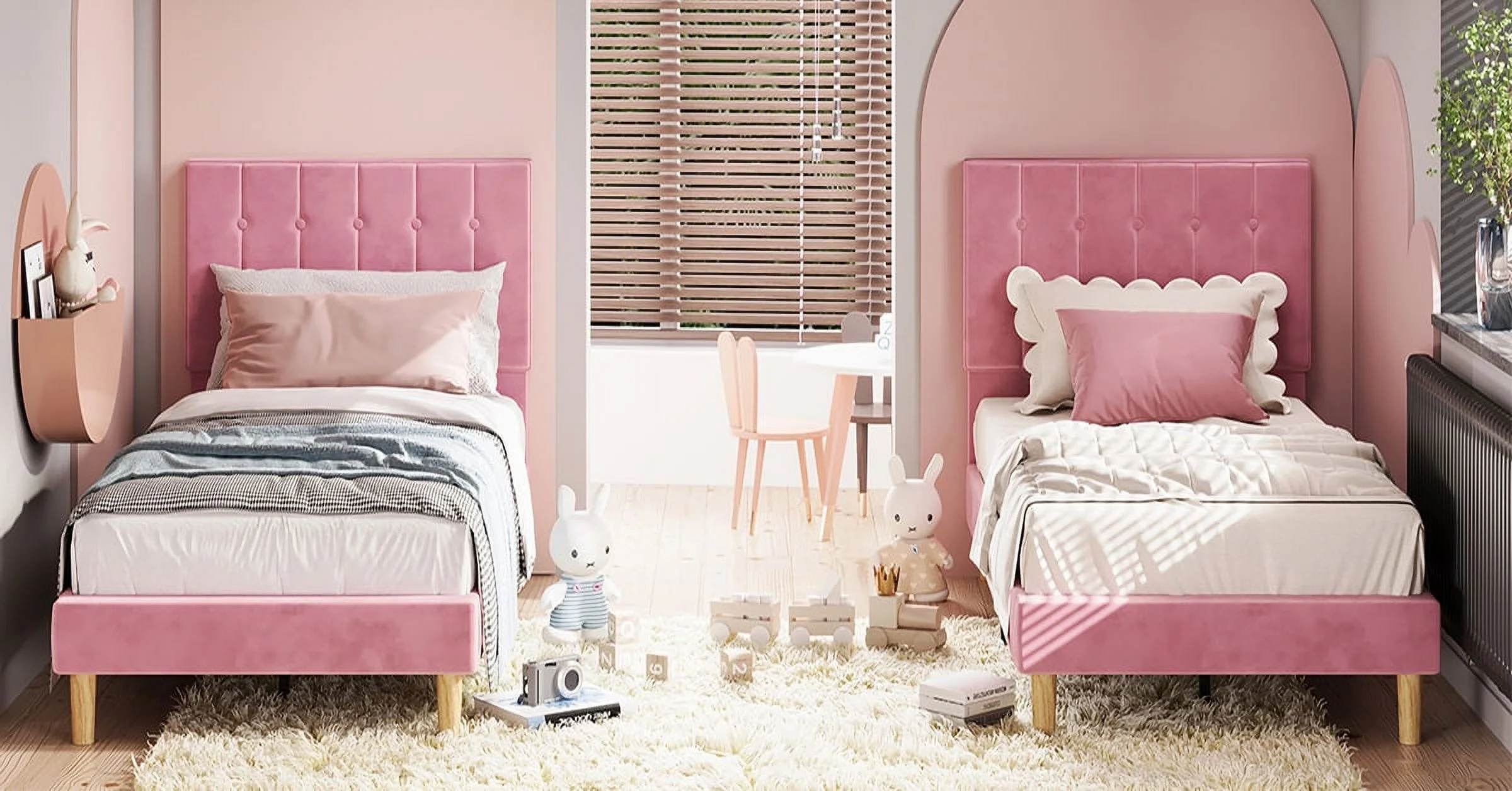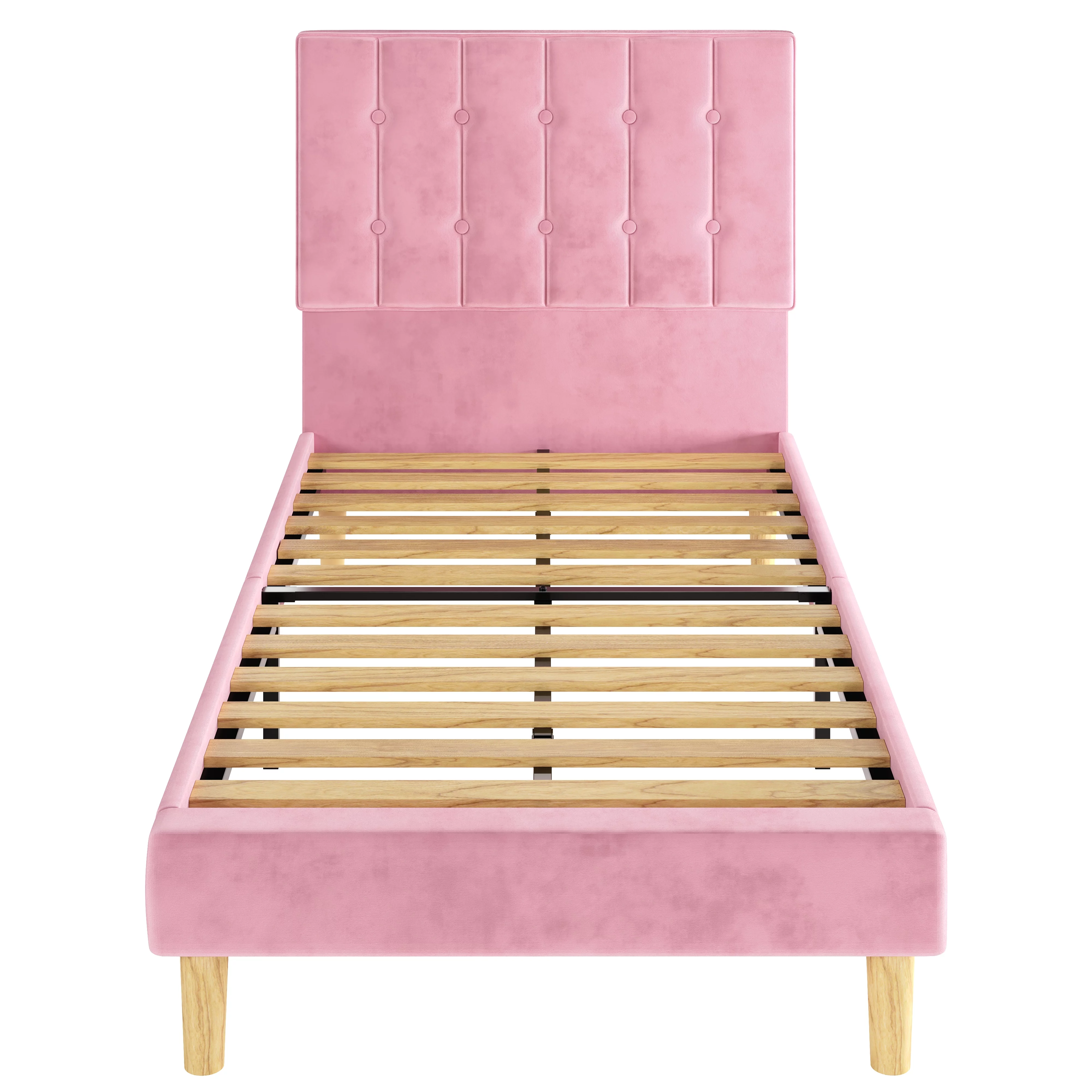 LIKIMIO Twin Bed Frame with Upholstered Headboard, No Box Spring Needed, Pink