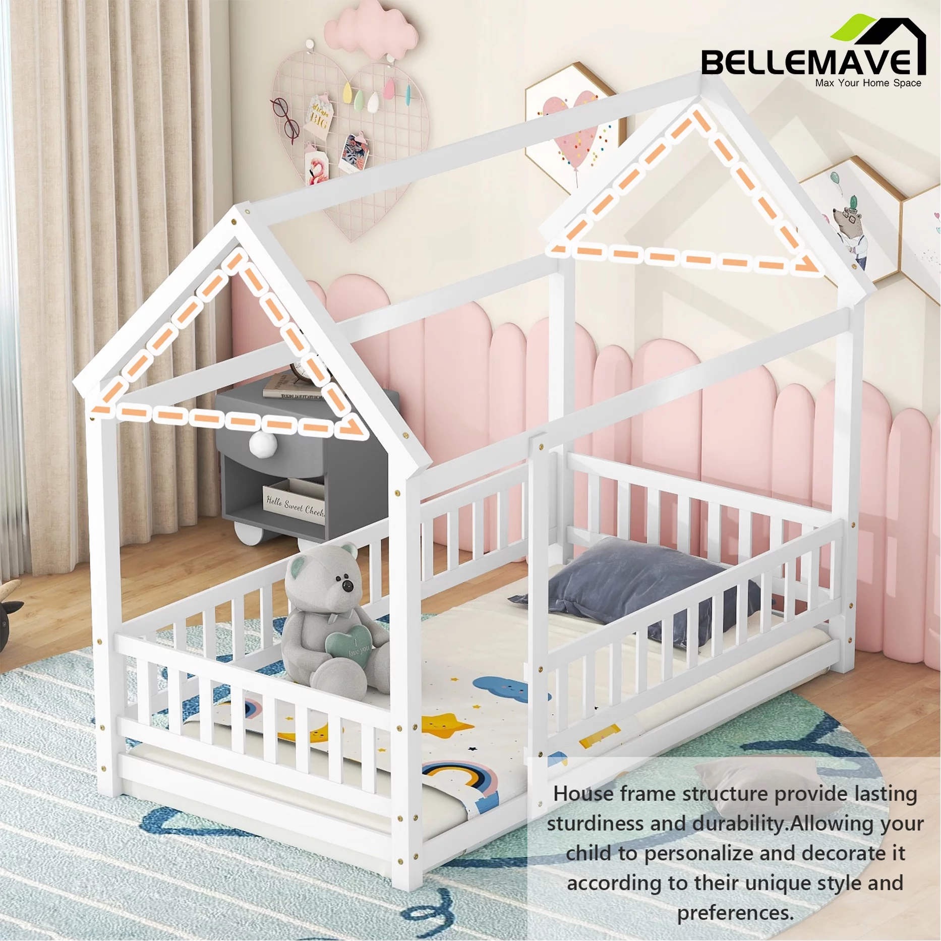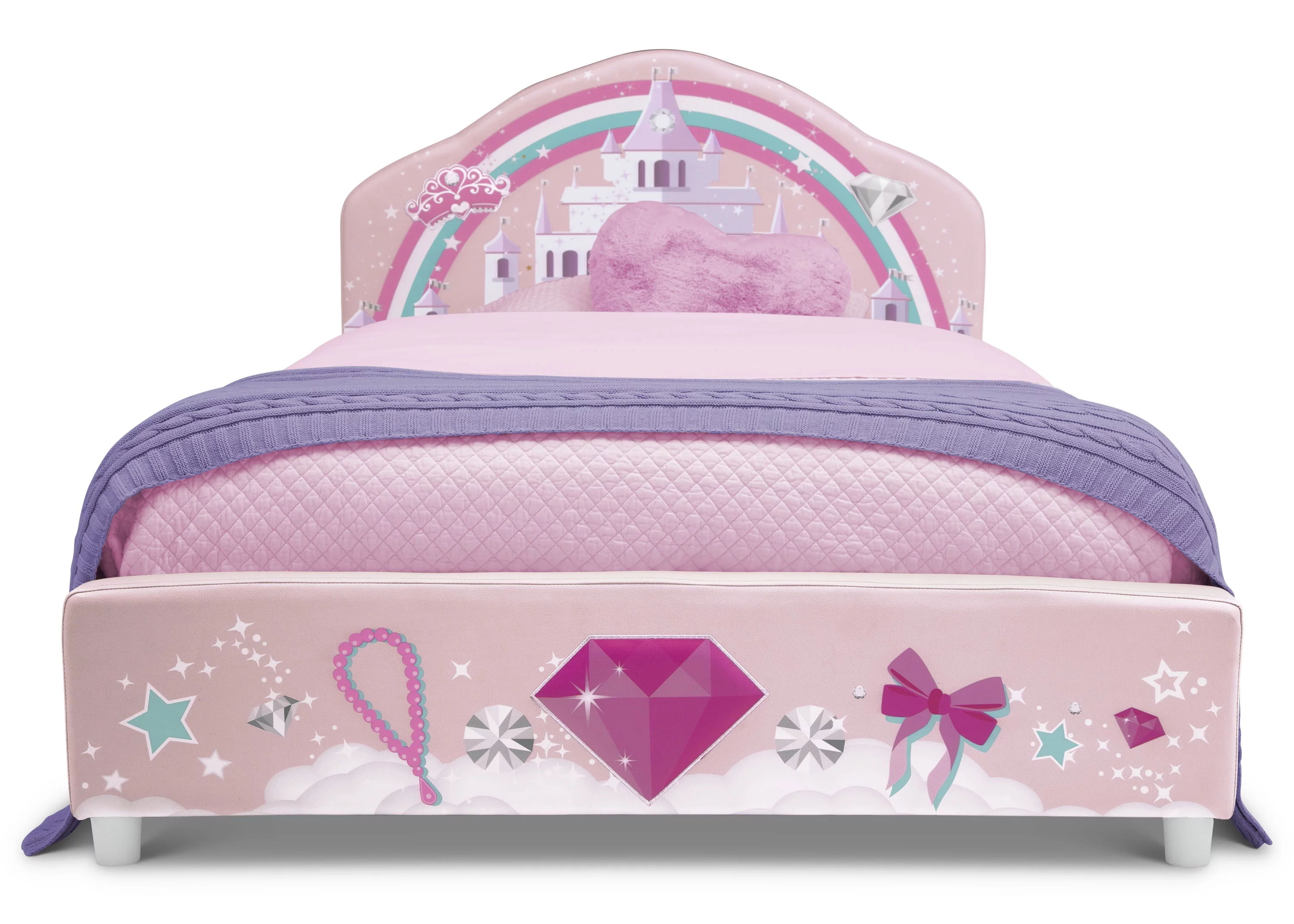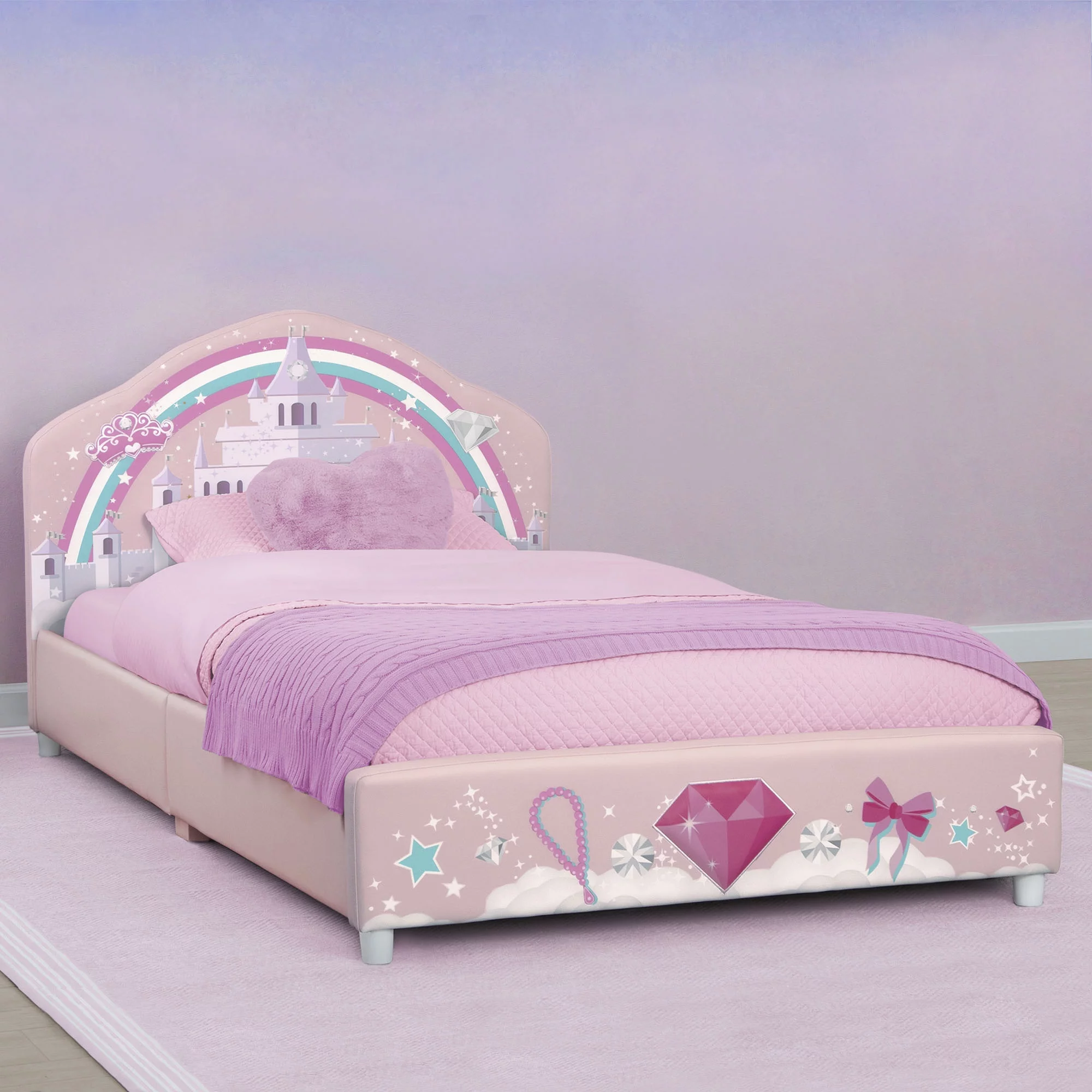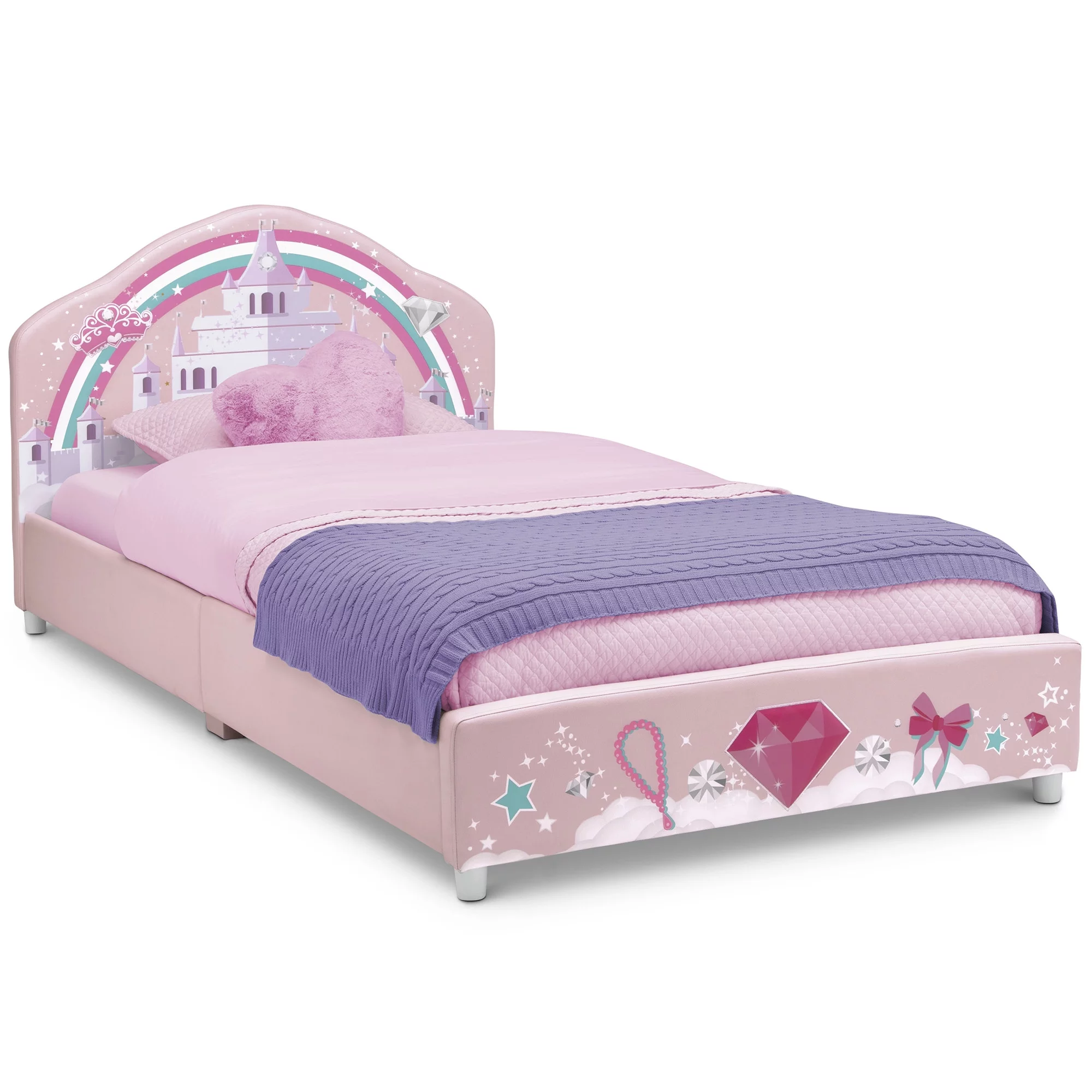 LIKIMIO Twin Bed Frame with Upholstered Headboard, No Box Spring Needed, Pink