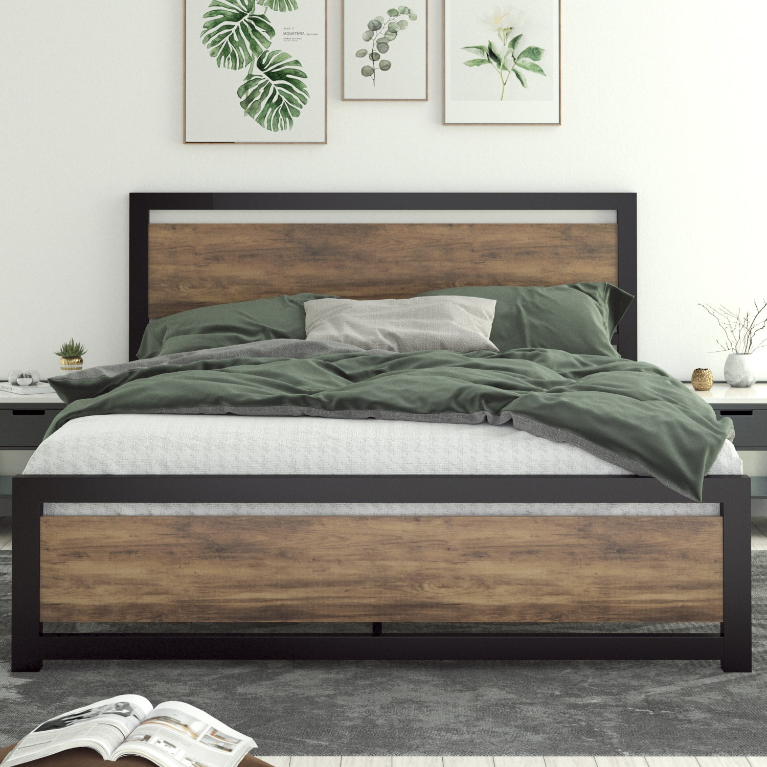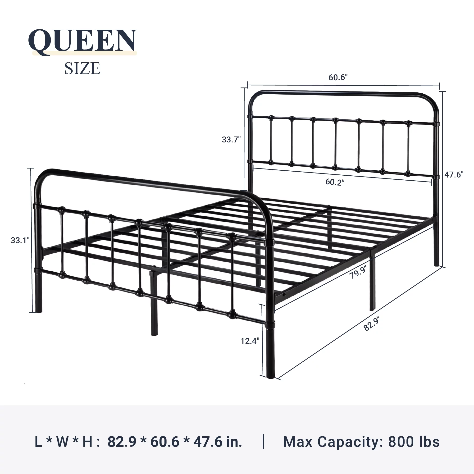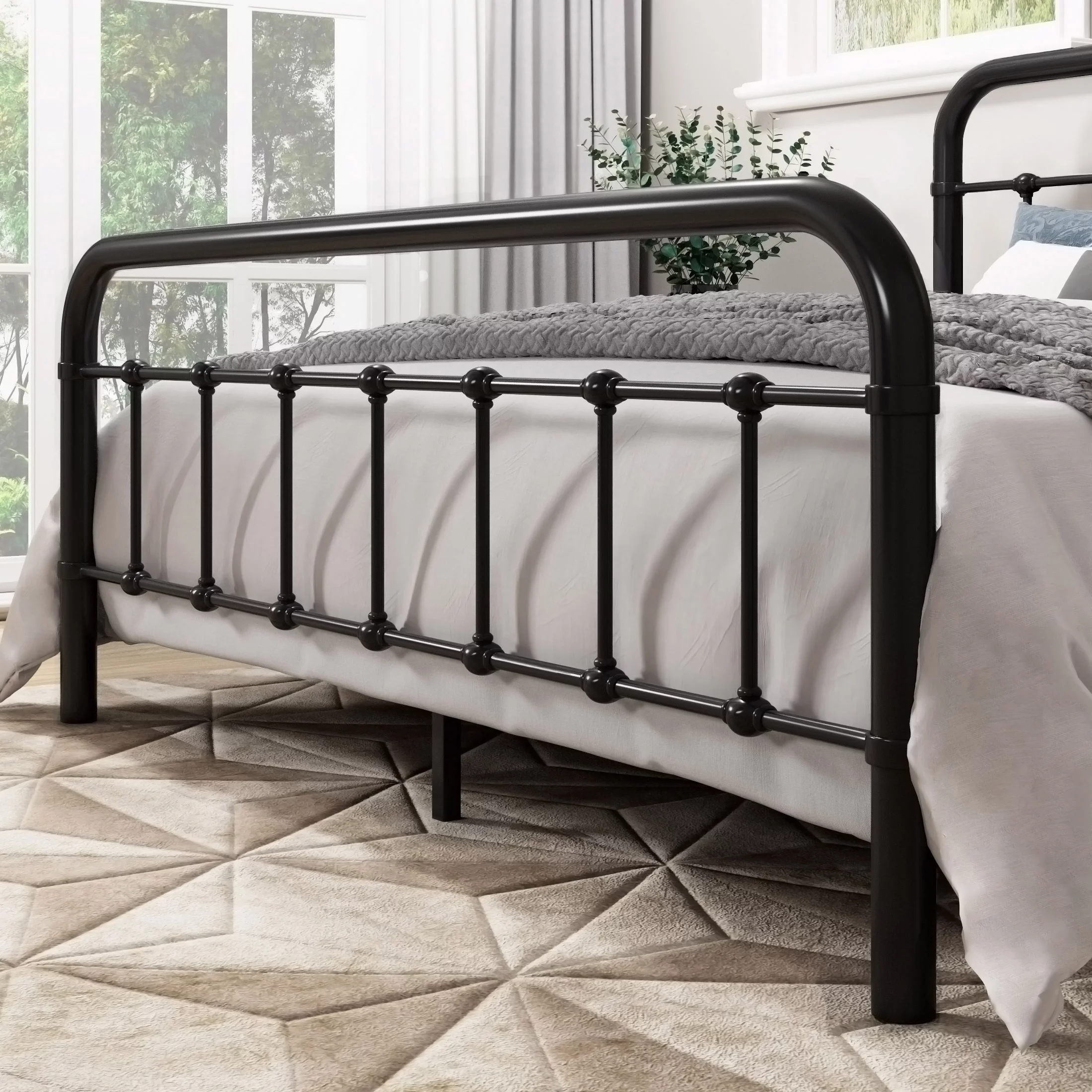 Allewie Queen Size Metal Platform Bed Frame with Victorian Style Wrought Iron-Art Headboard/Footboard, Black