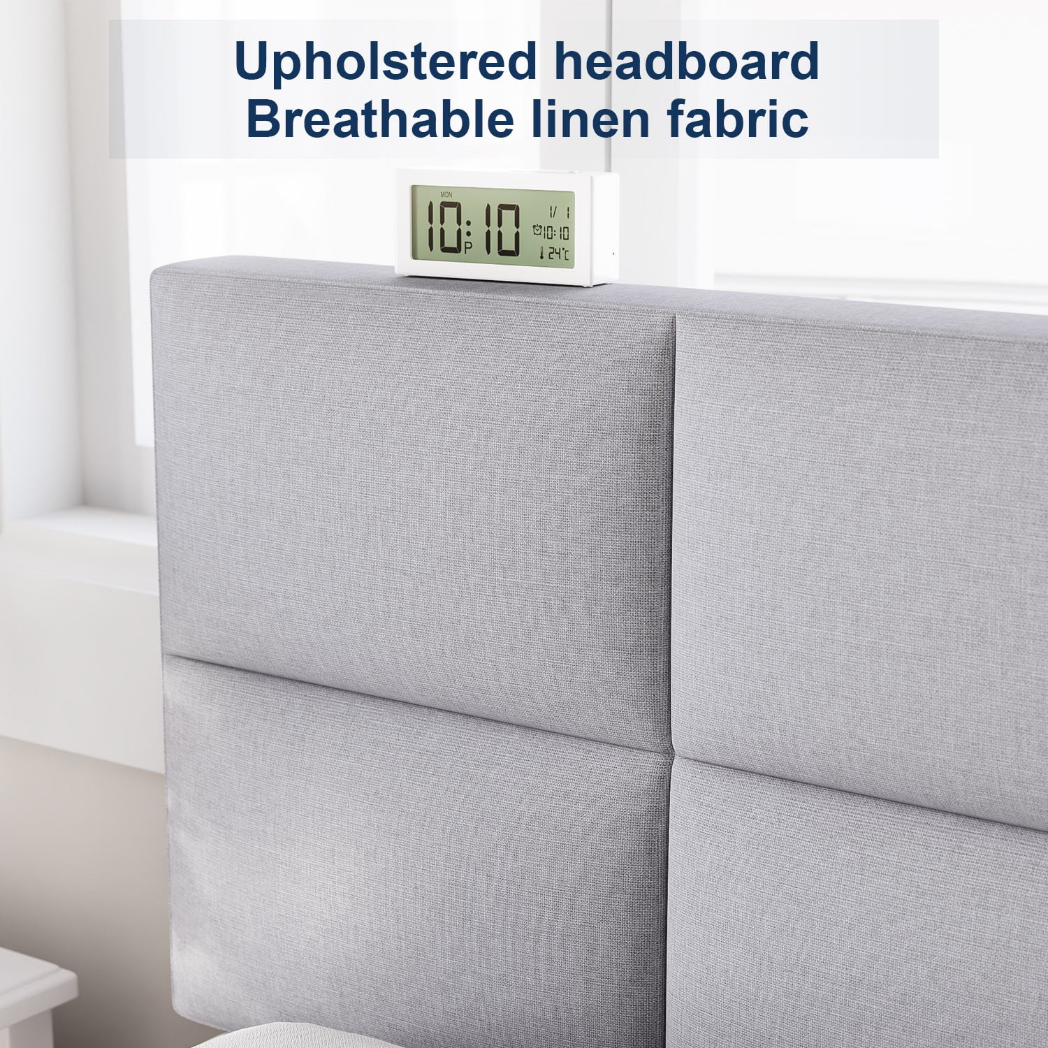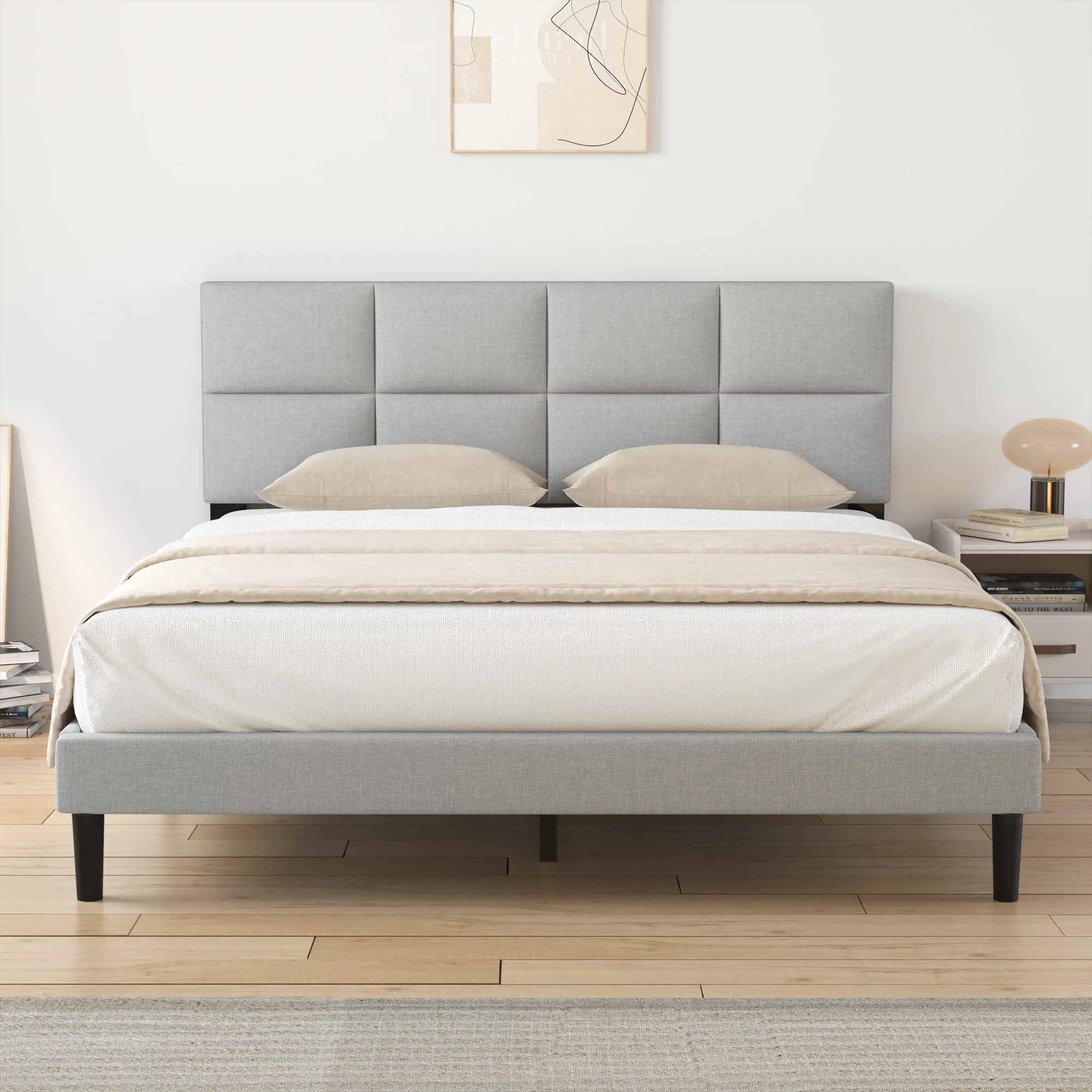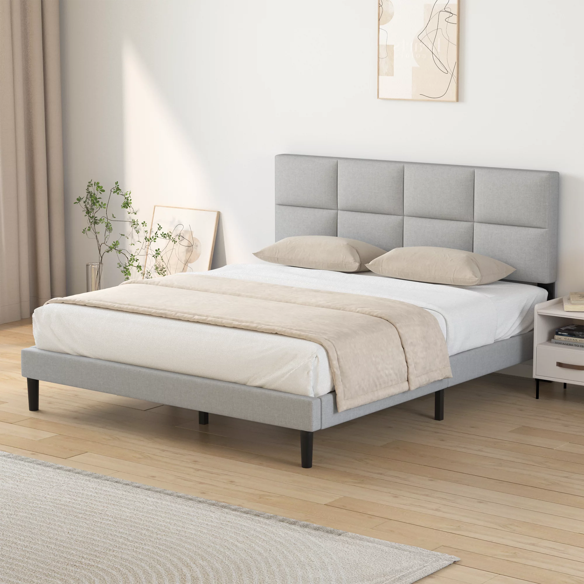 HAIIDE Queen Size bed Frame with Fabric Upholstered Headboard,light Gray, Easy Assembly