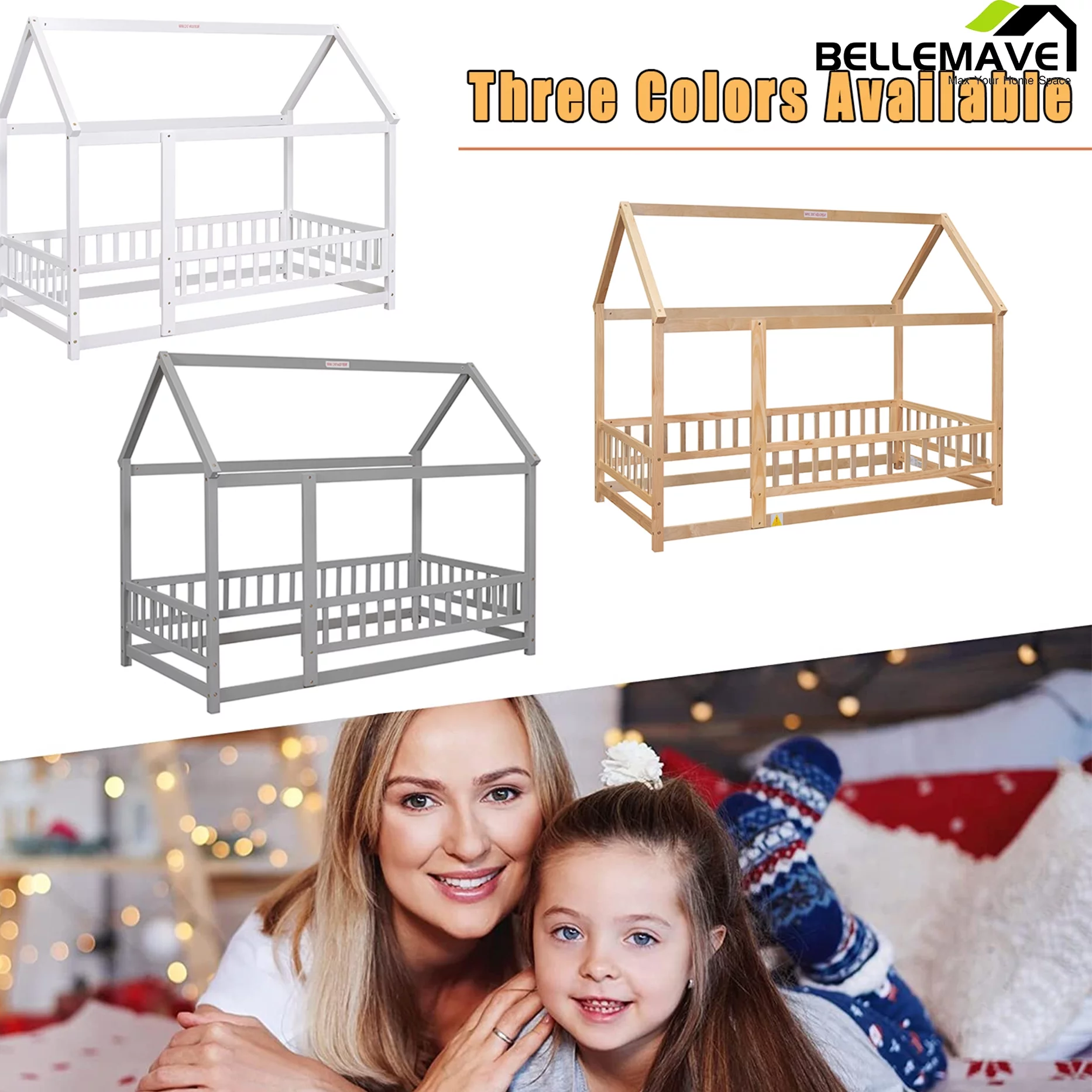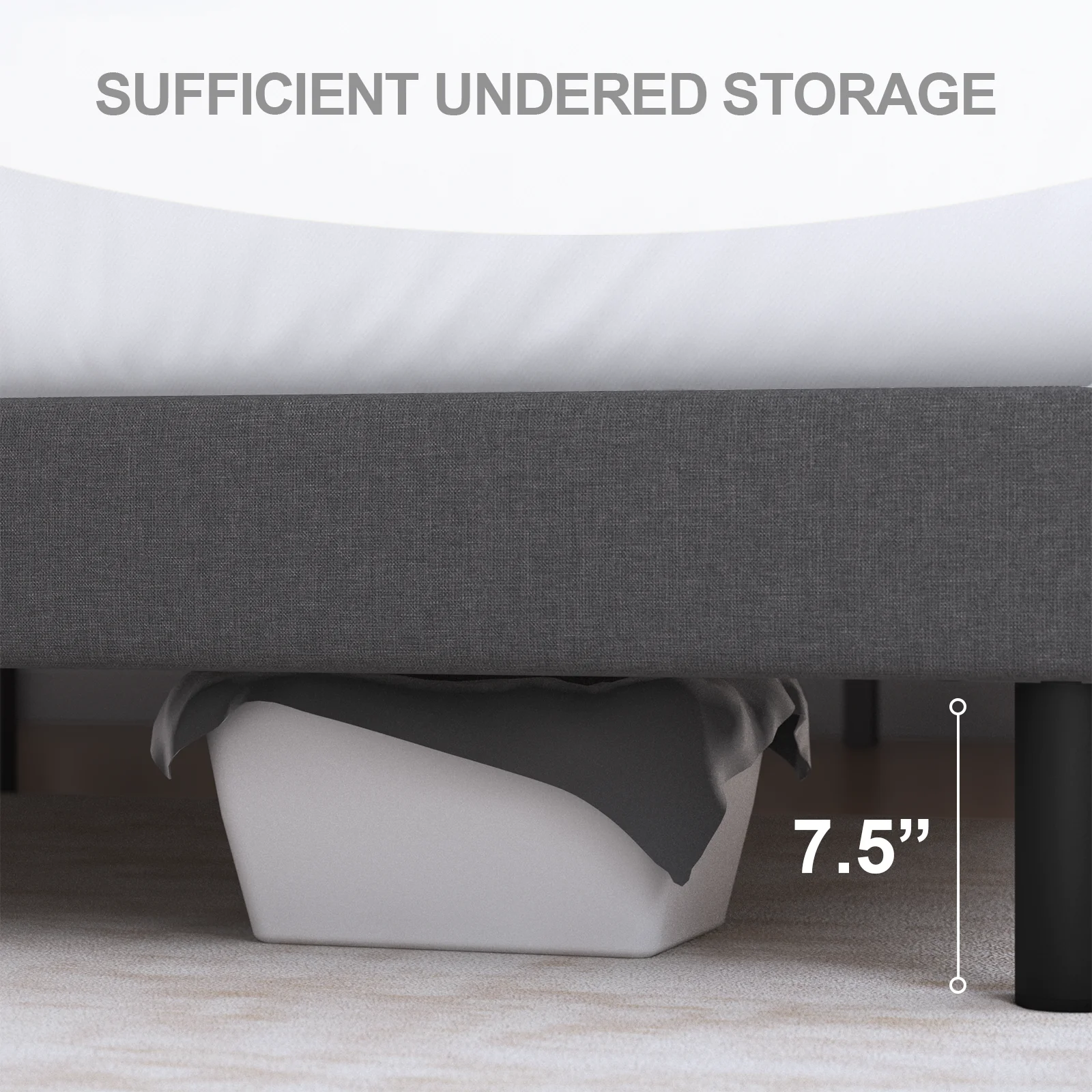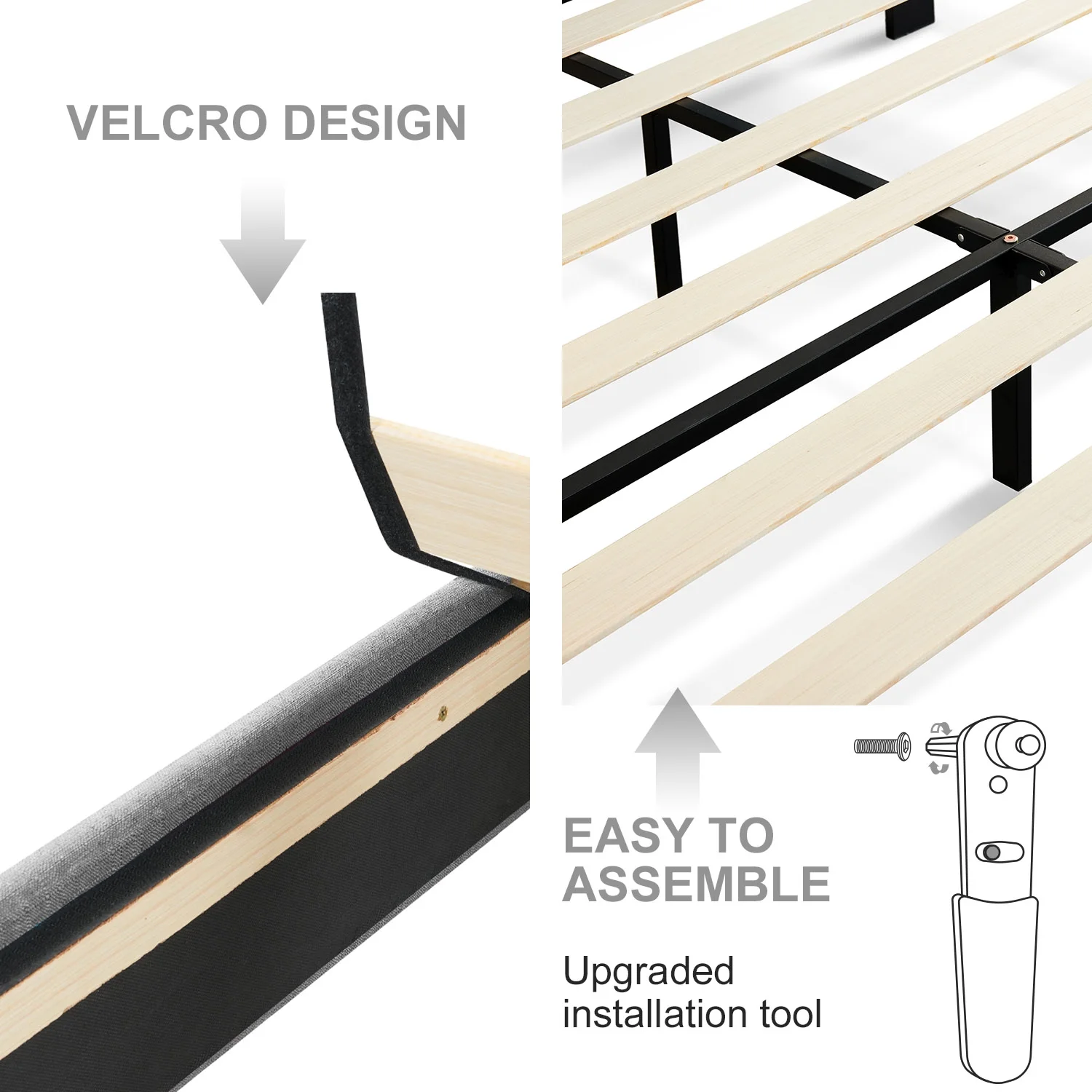 HAIIDE Queen Size bed Frame with Fabric Upholstered Headboard,light Gray, Easy Assembly