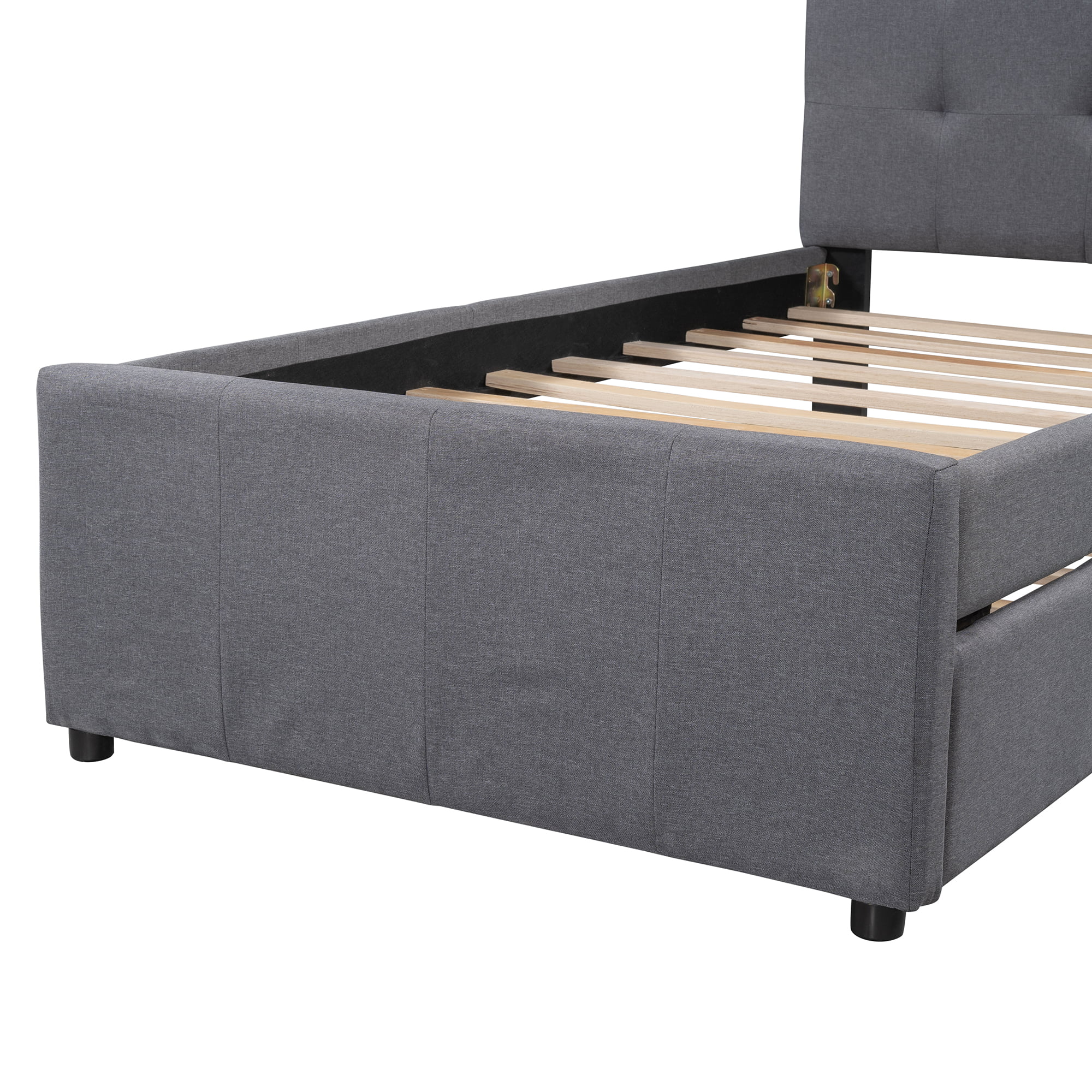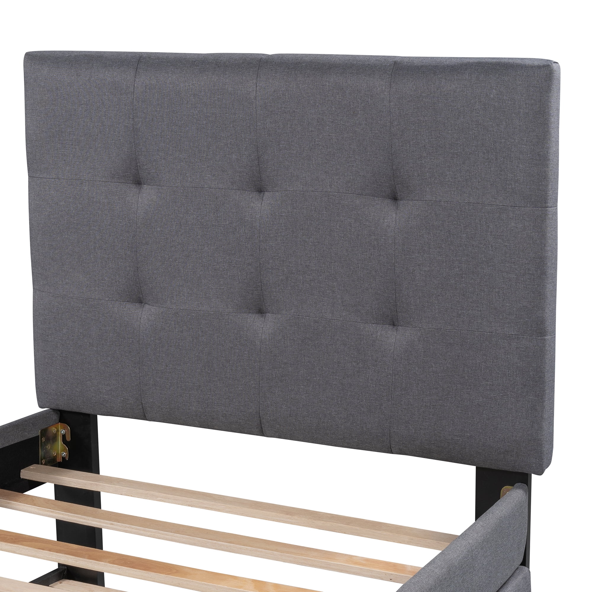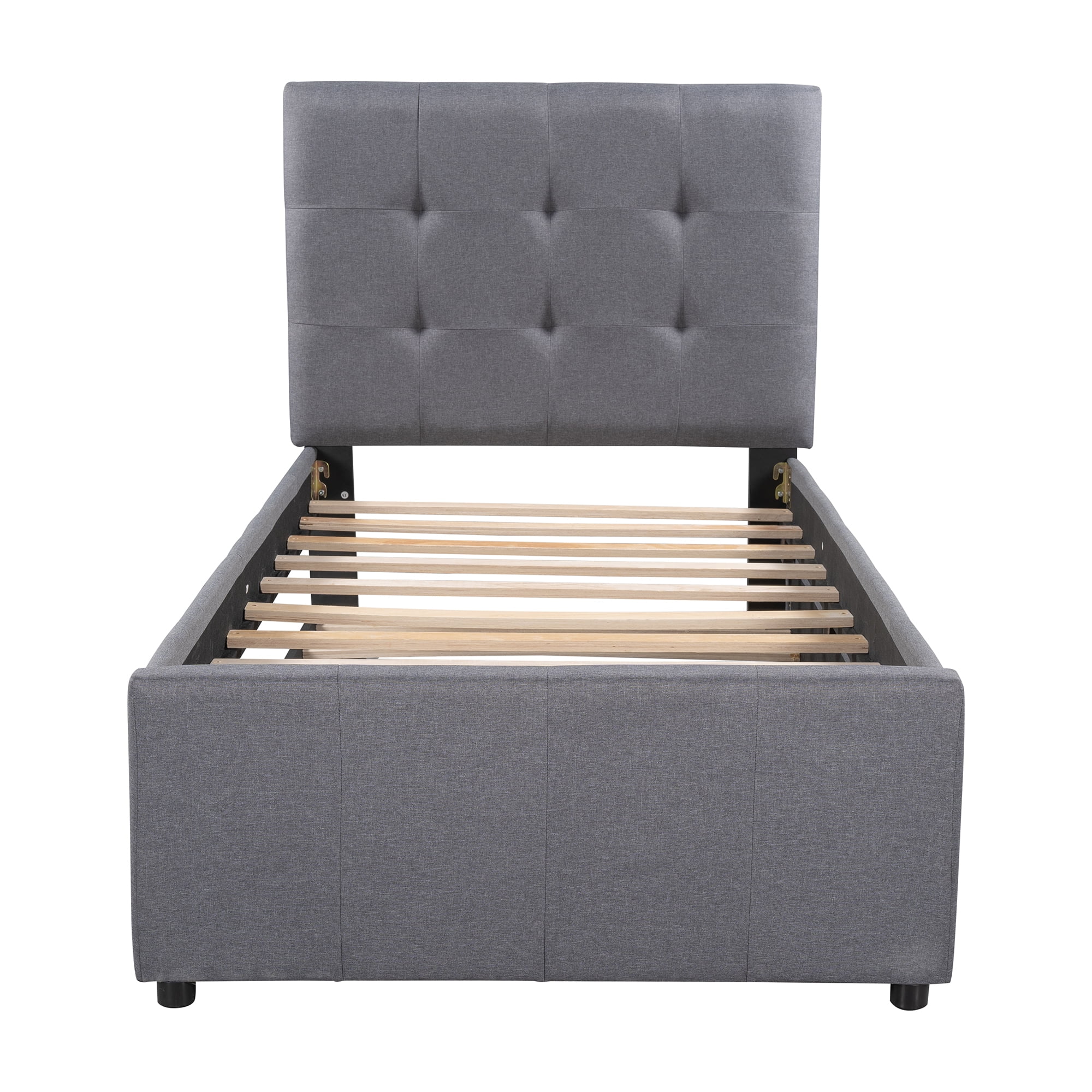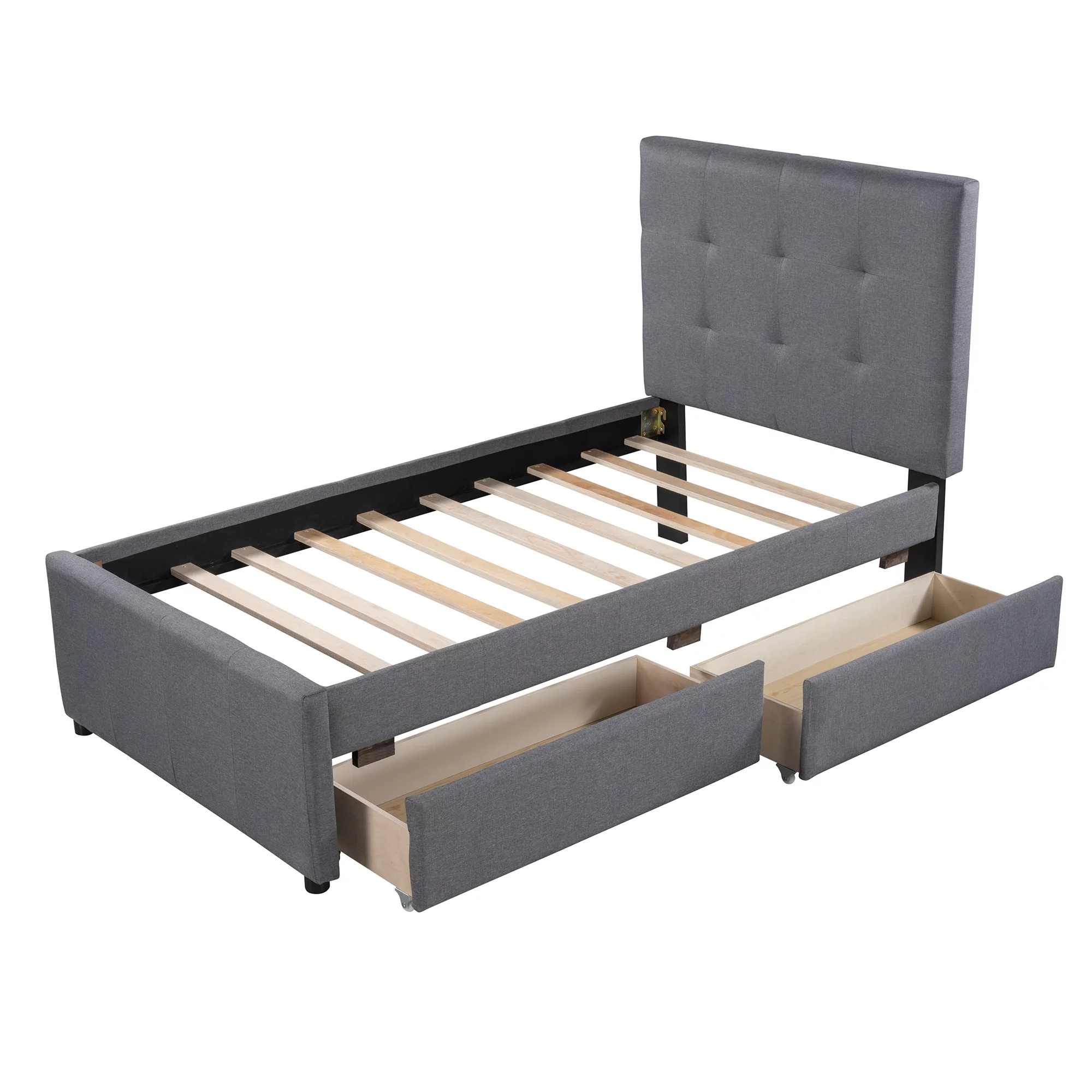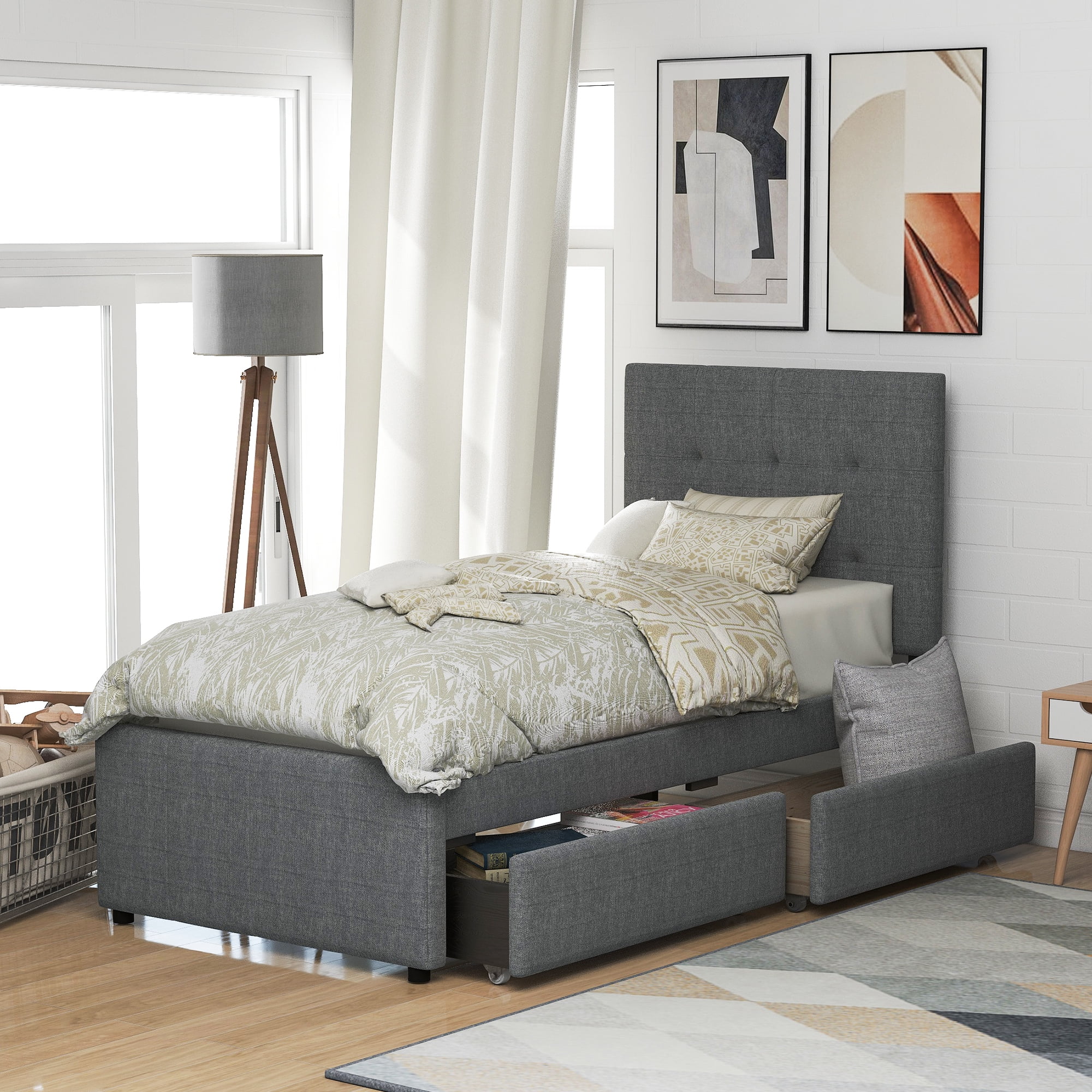 Euroco Upholstered Twin Size Platform Bed with 2 Storage Drawers for Kids, Gray