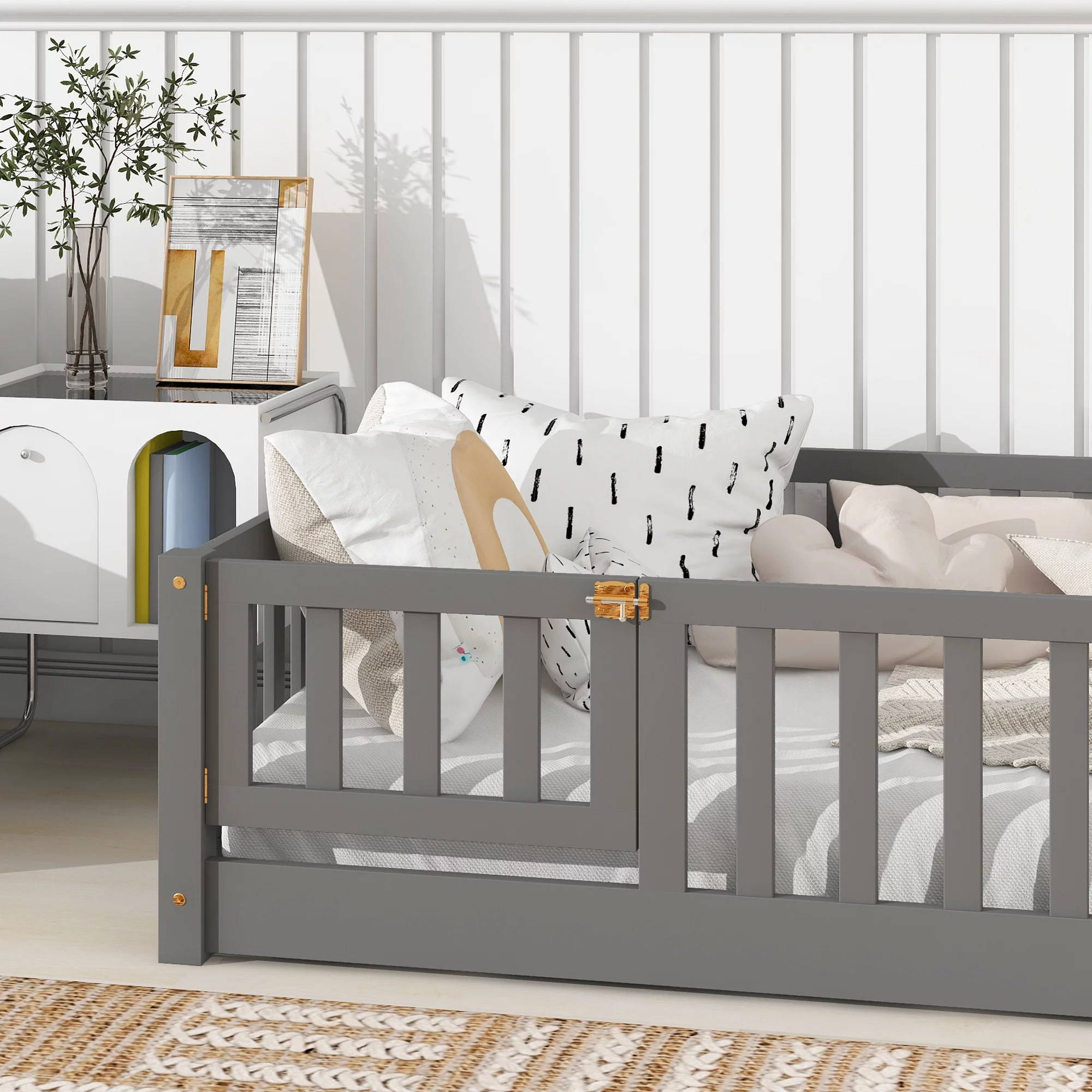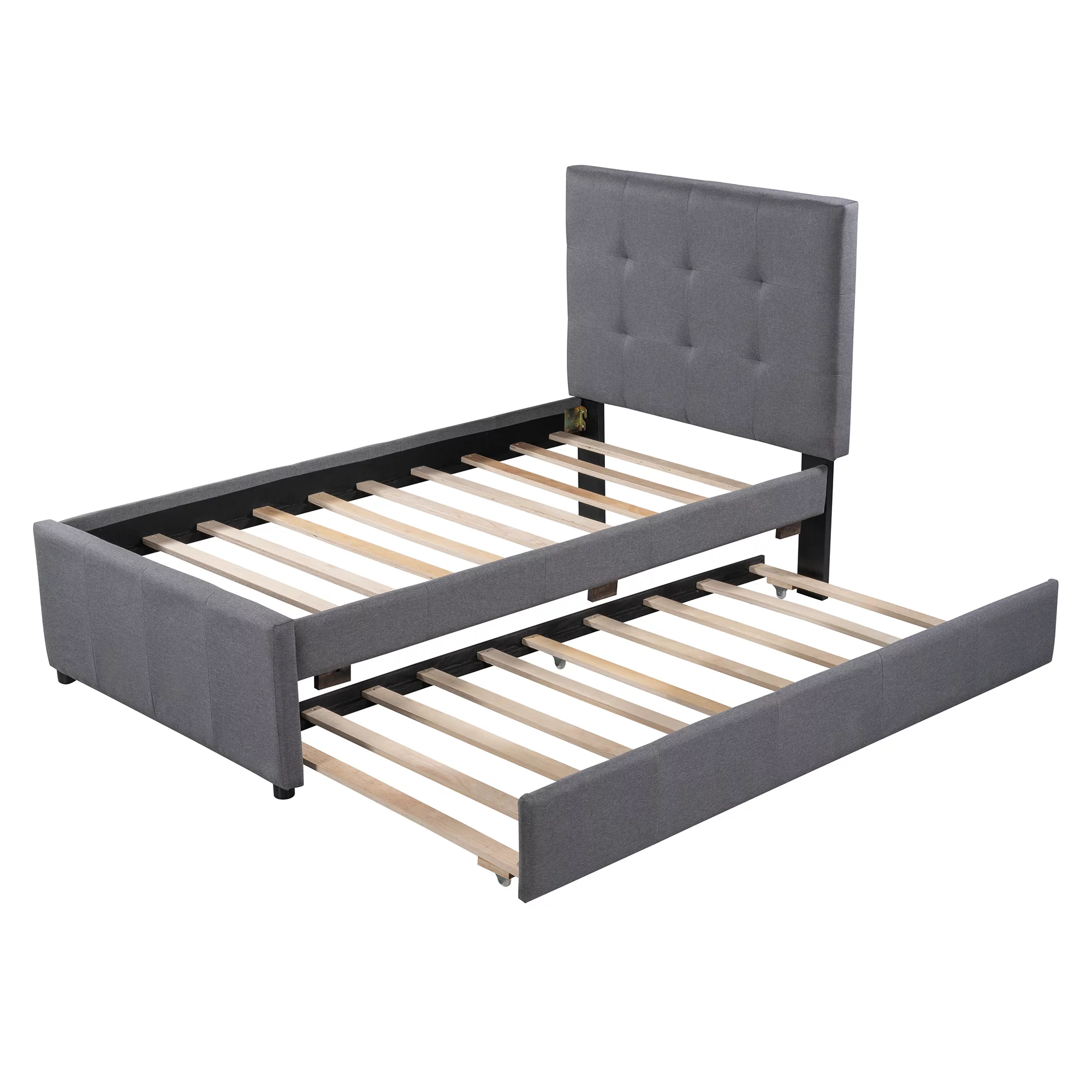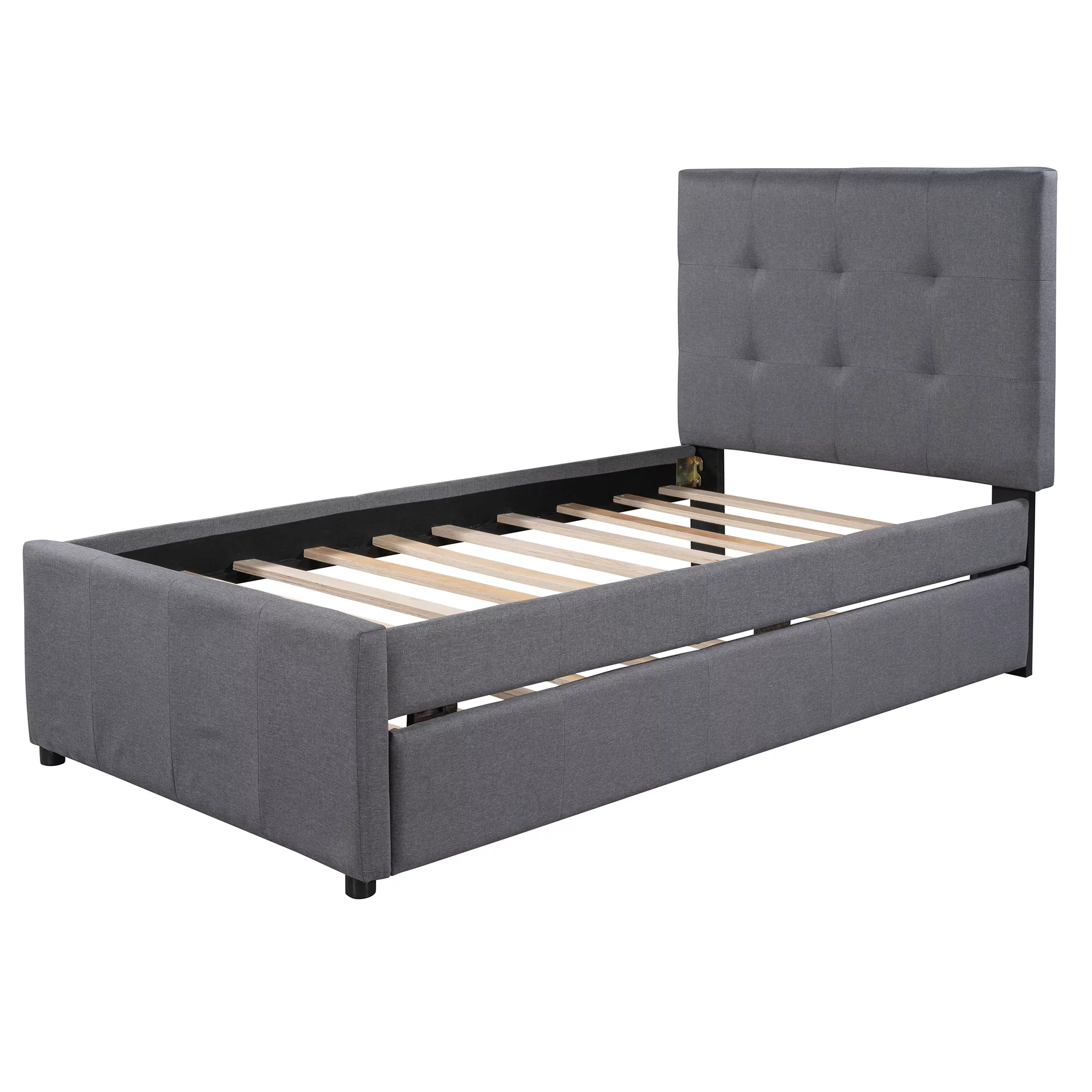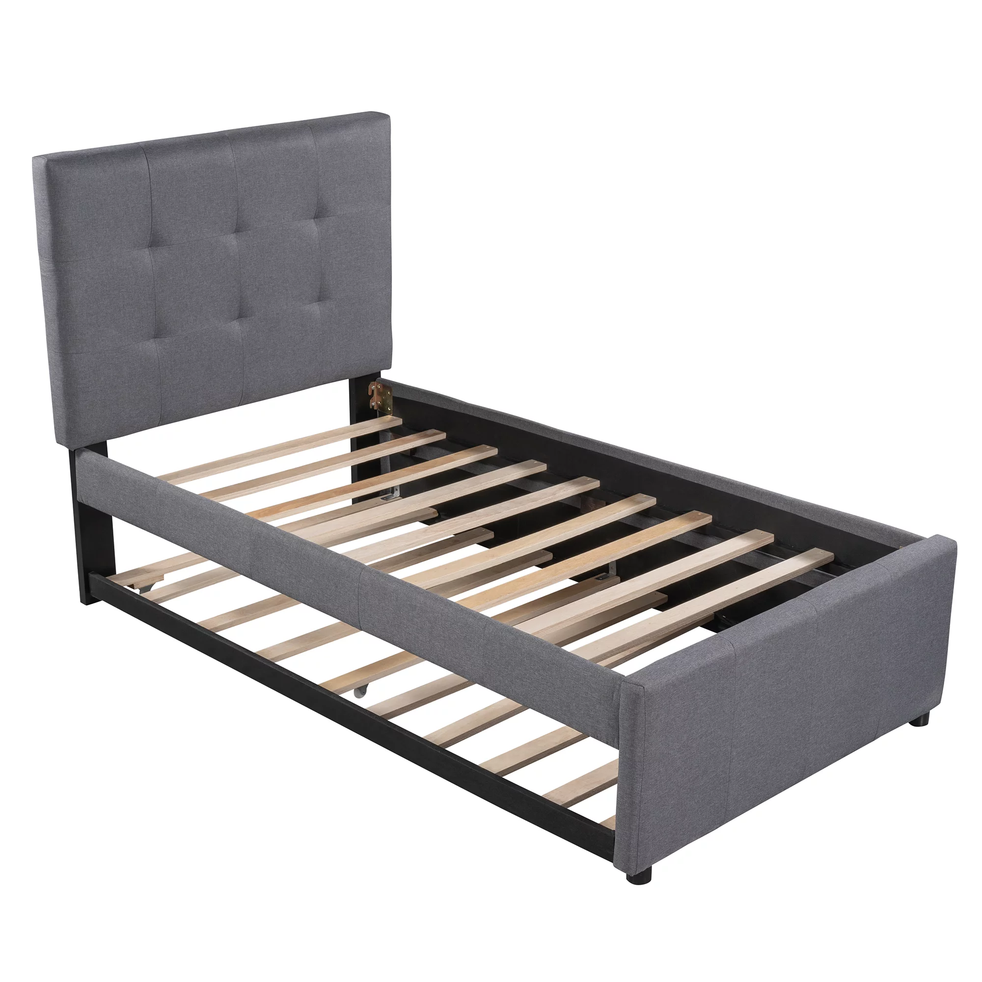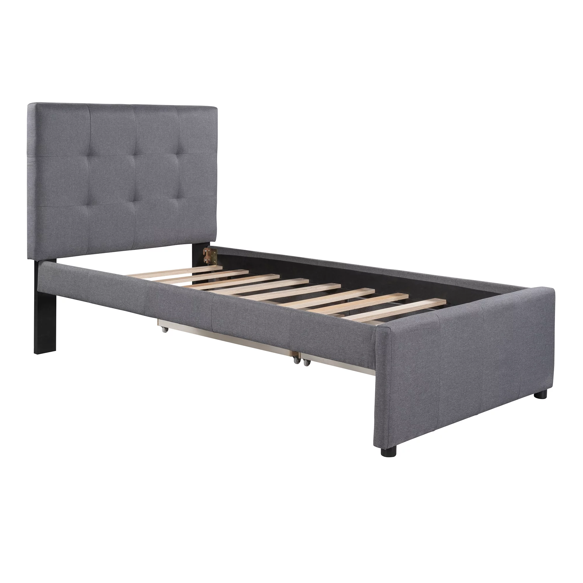 Euroco Upholstered Twin Size Platform Bed with 2 Storage Drawers for Kids, Gray