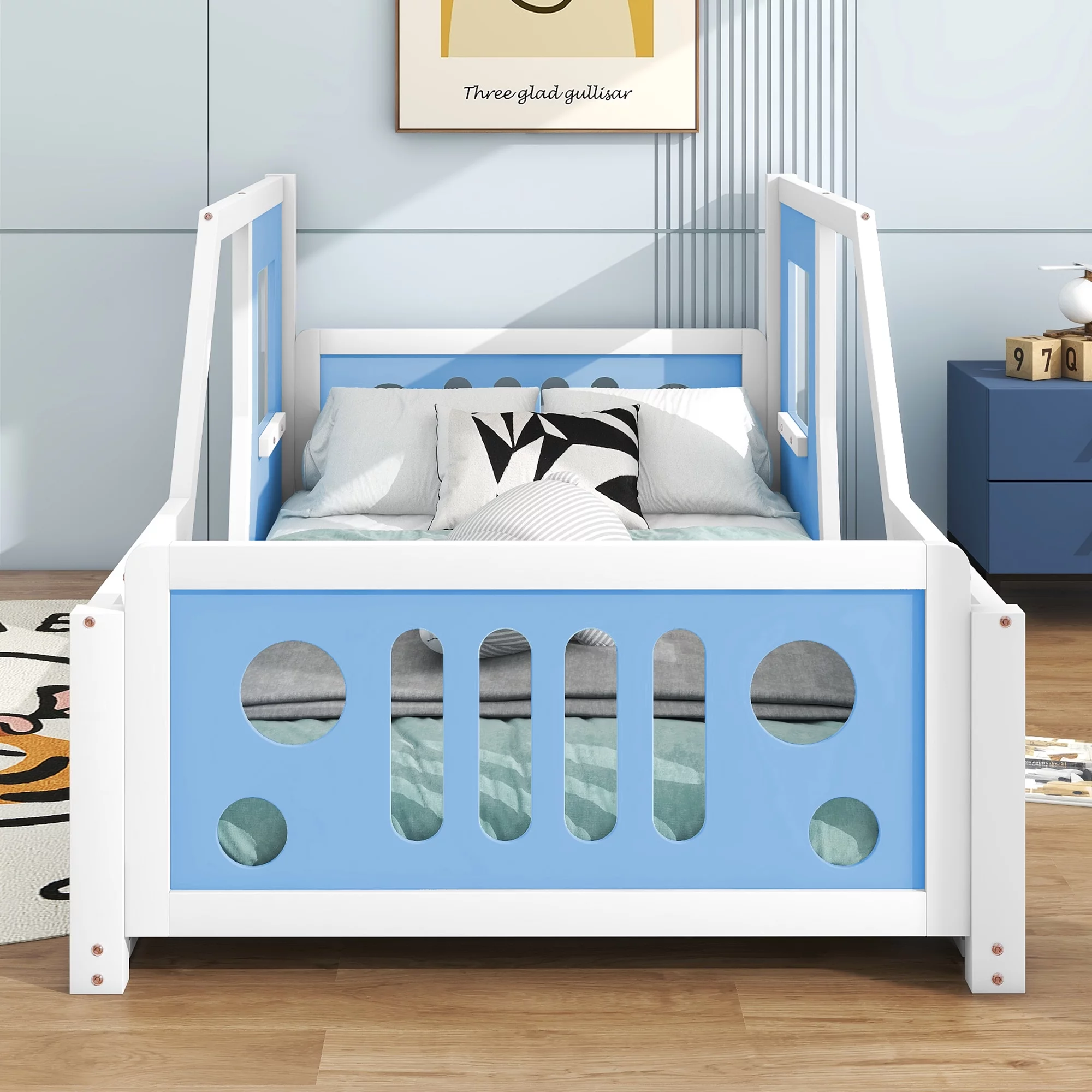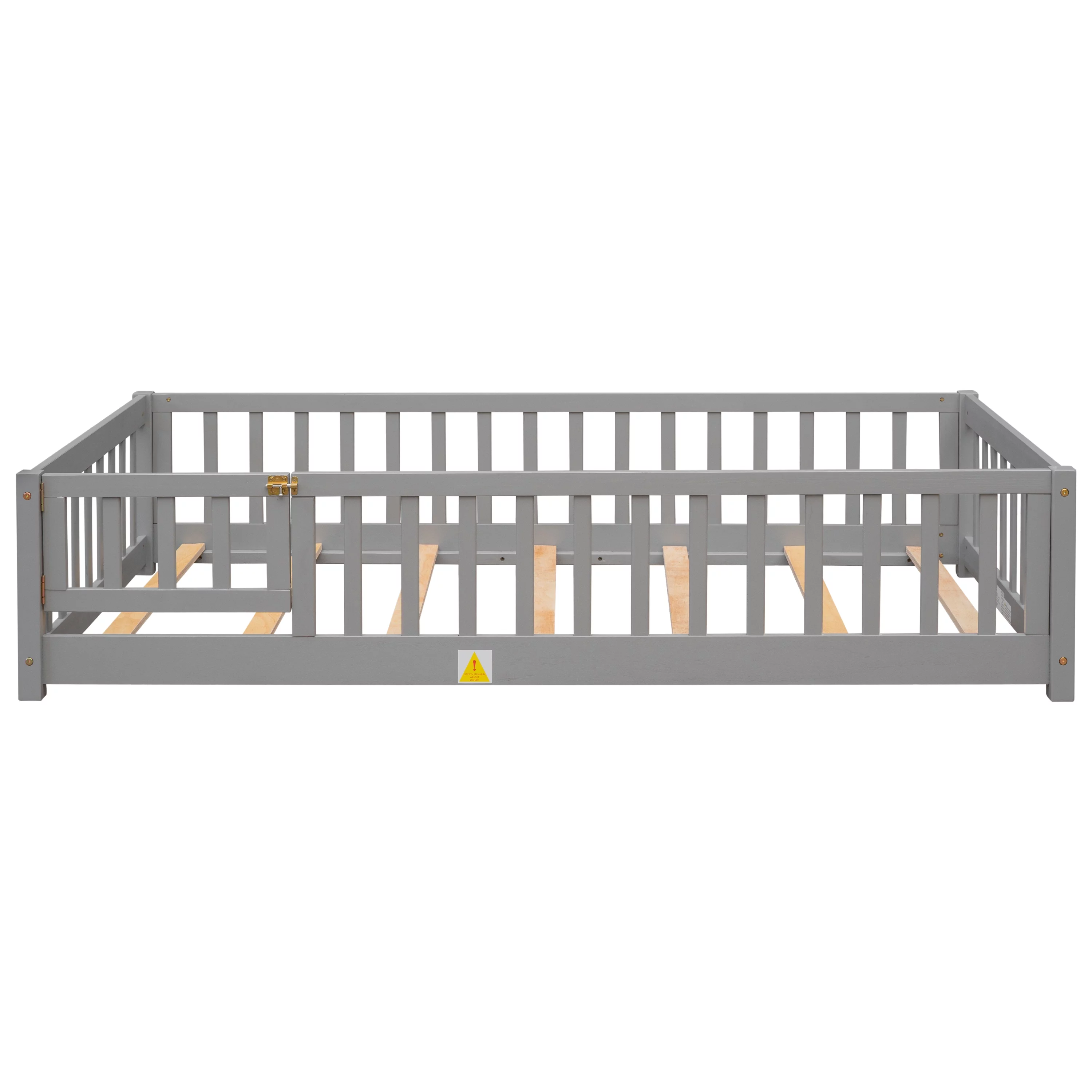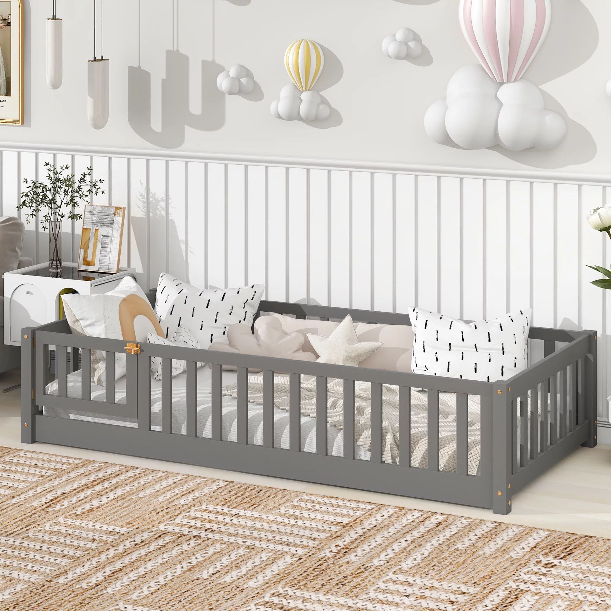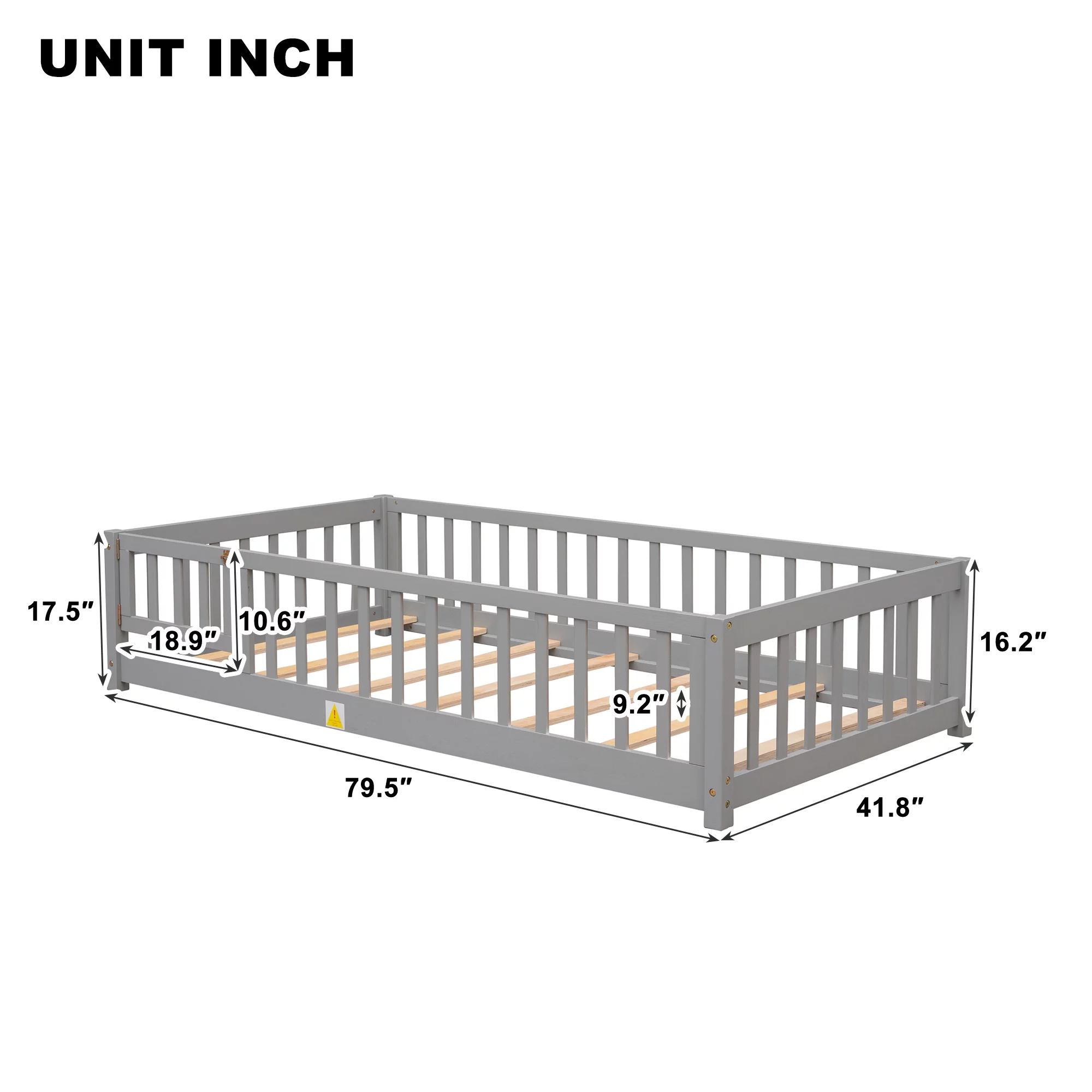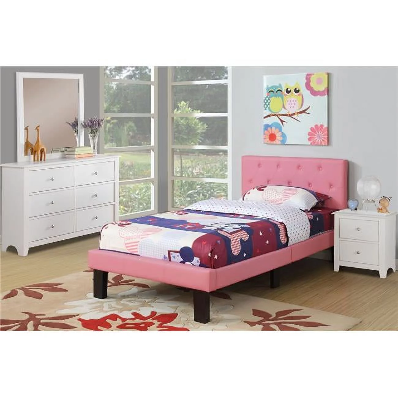 Euroco Upholstered Twin Size Platform Bed with 2 Storage Drawers for Kids, Gray