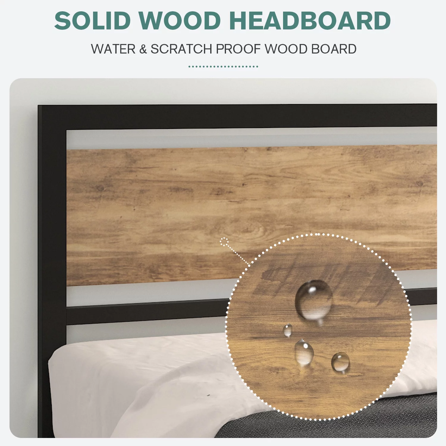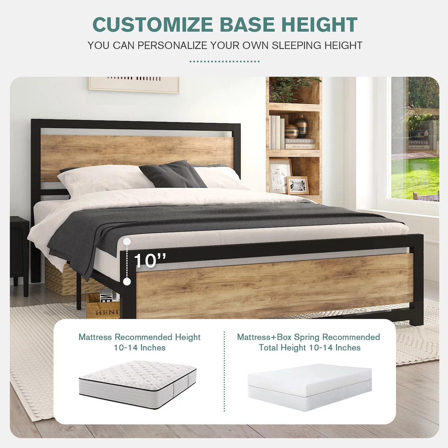 Allewie Queen Size Metal Platform Bed Frame with Square Frame Wooden Headboard&Footboard, Brown