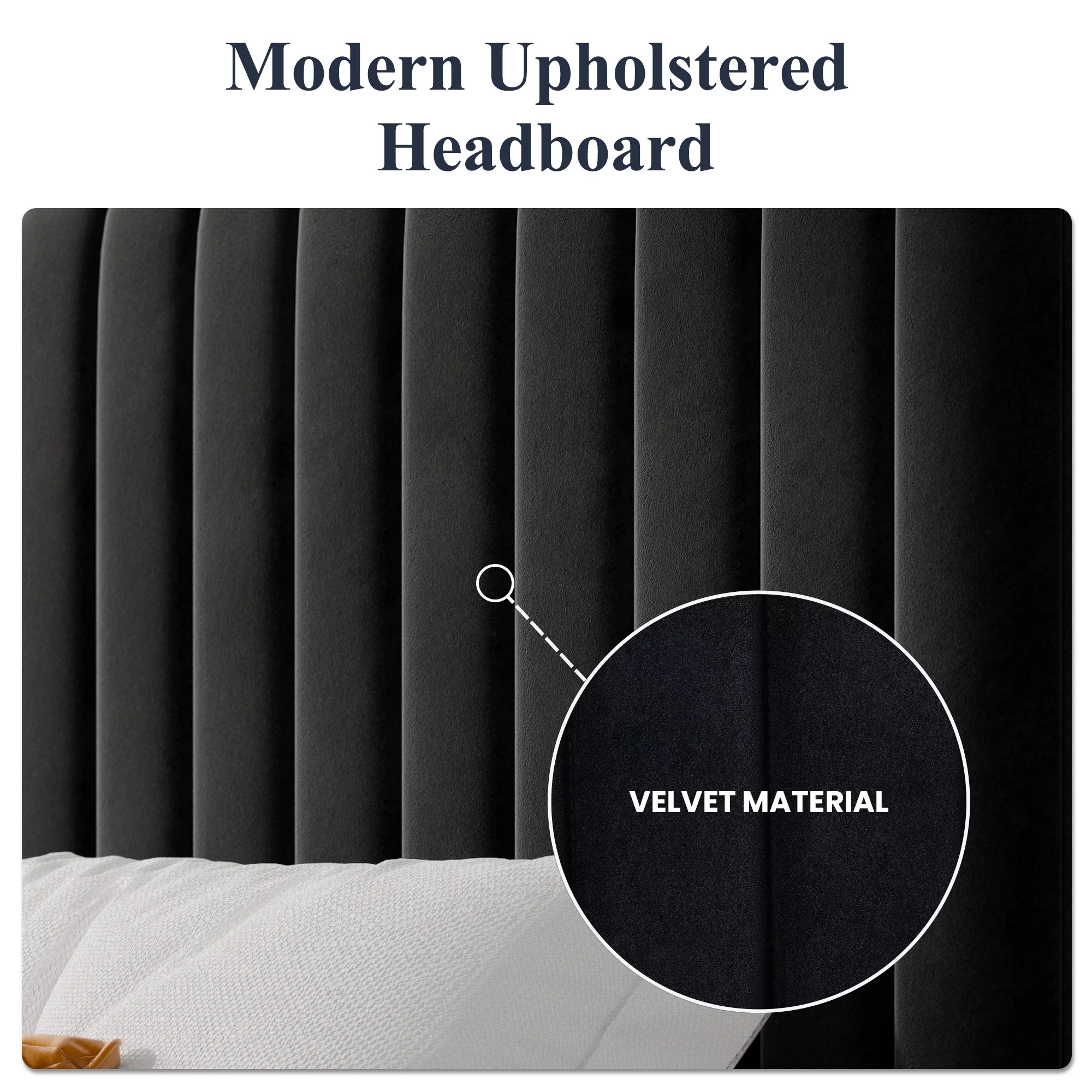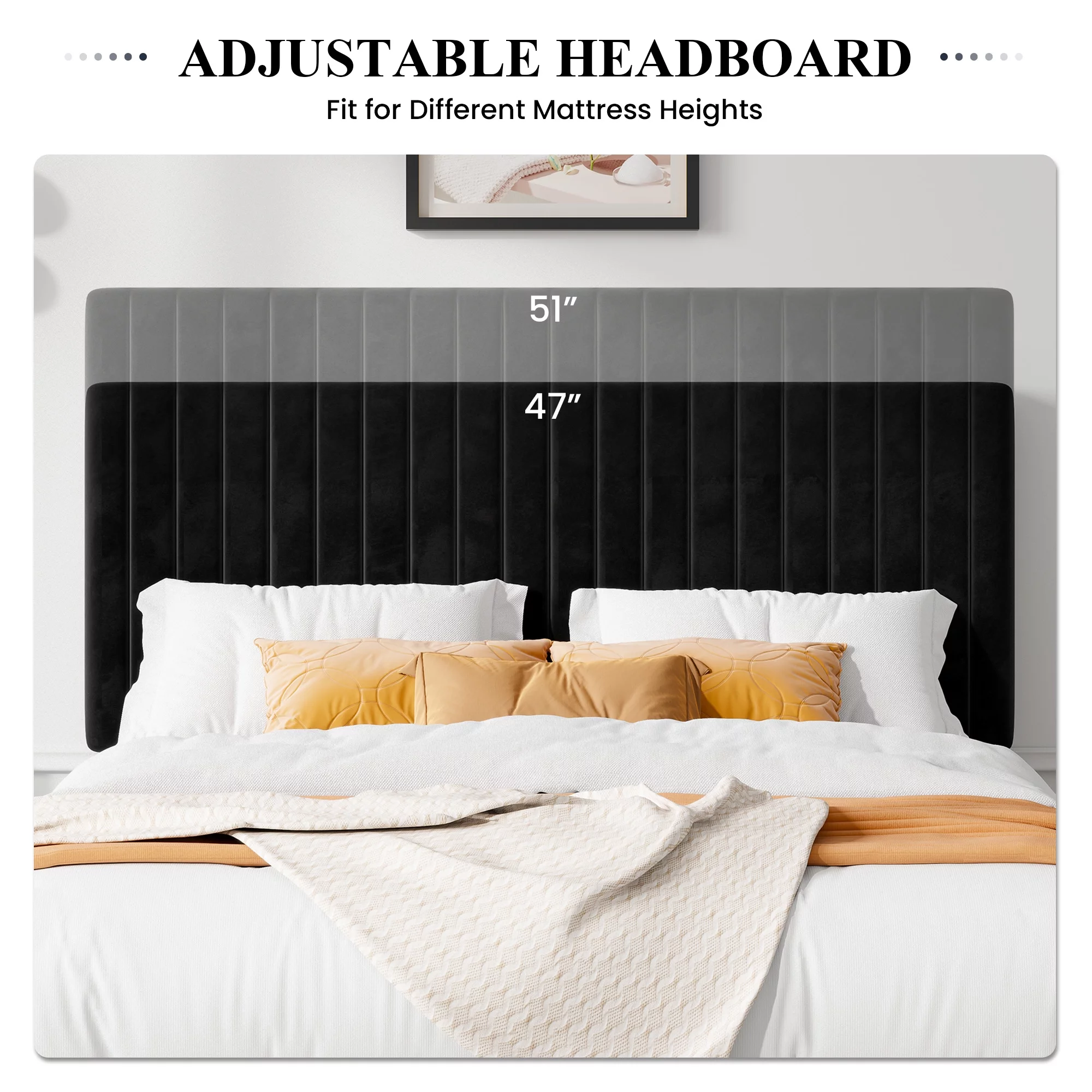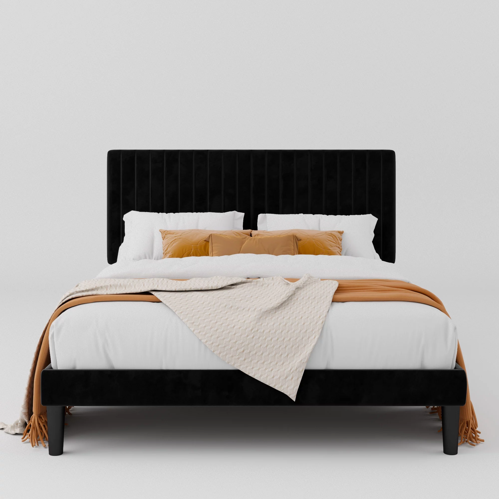 Allewie Queen Size Velvet Upholstered Platform Bed Frame with Adjustable Vertical Channel Tufted Headboard, Black