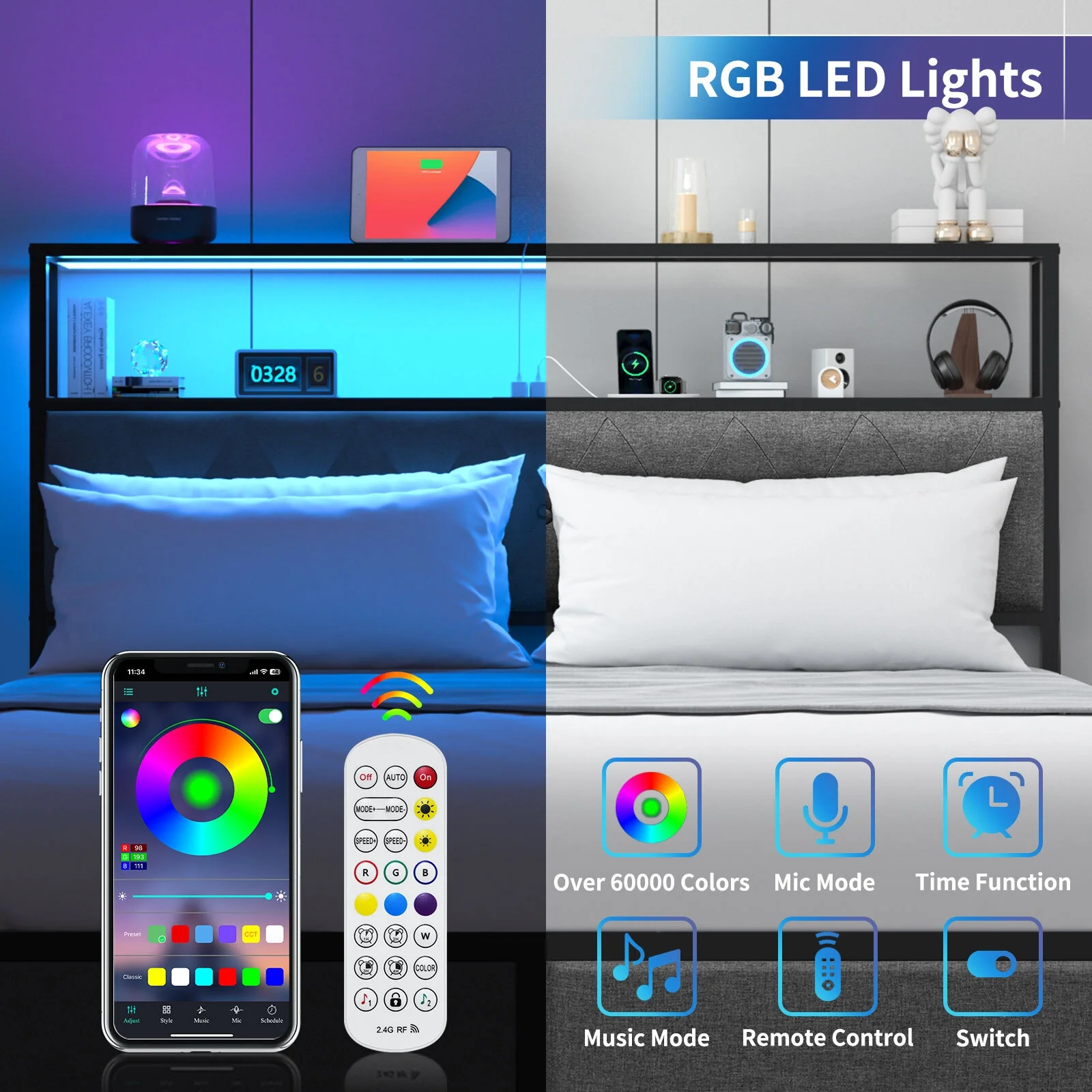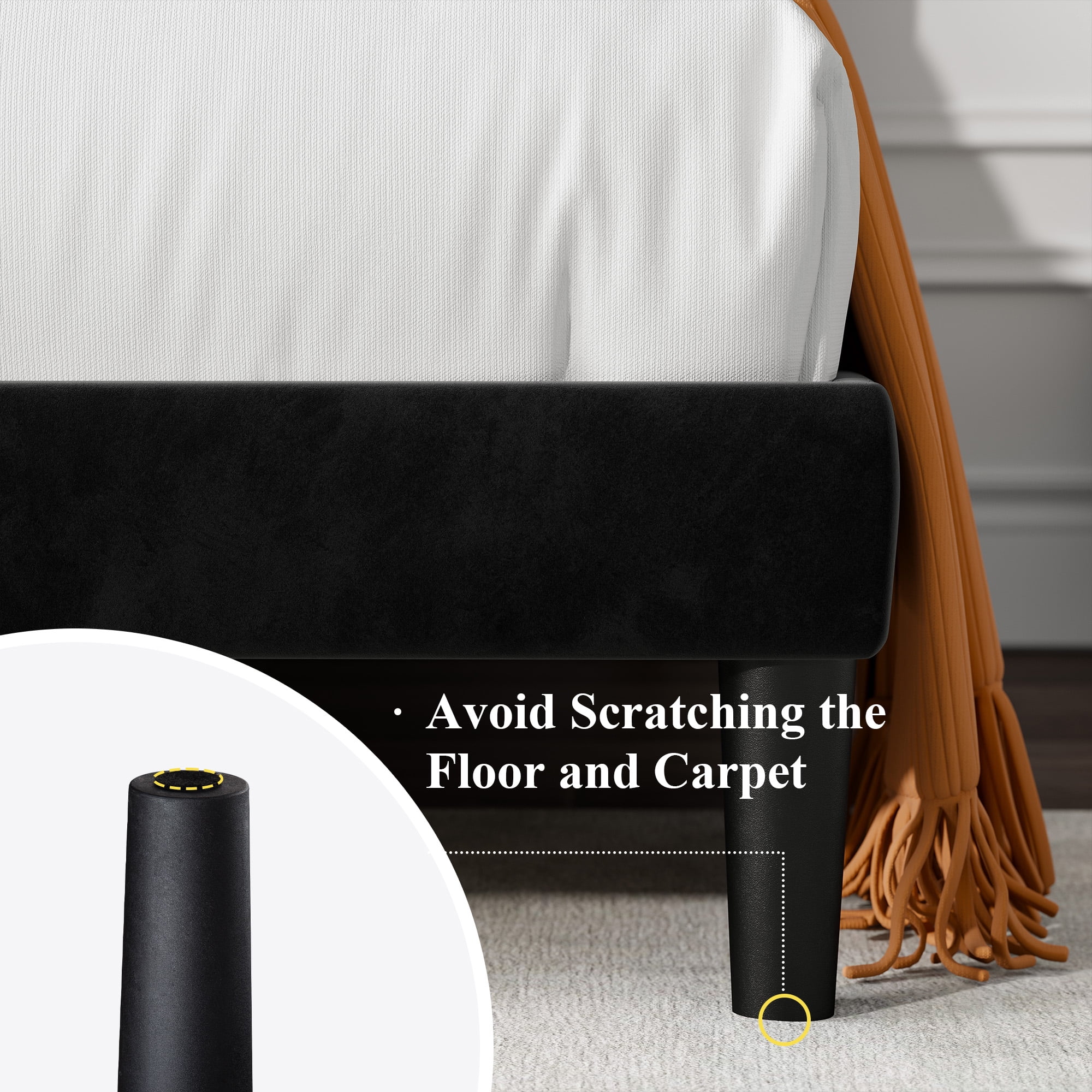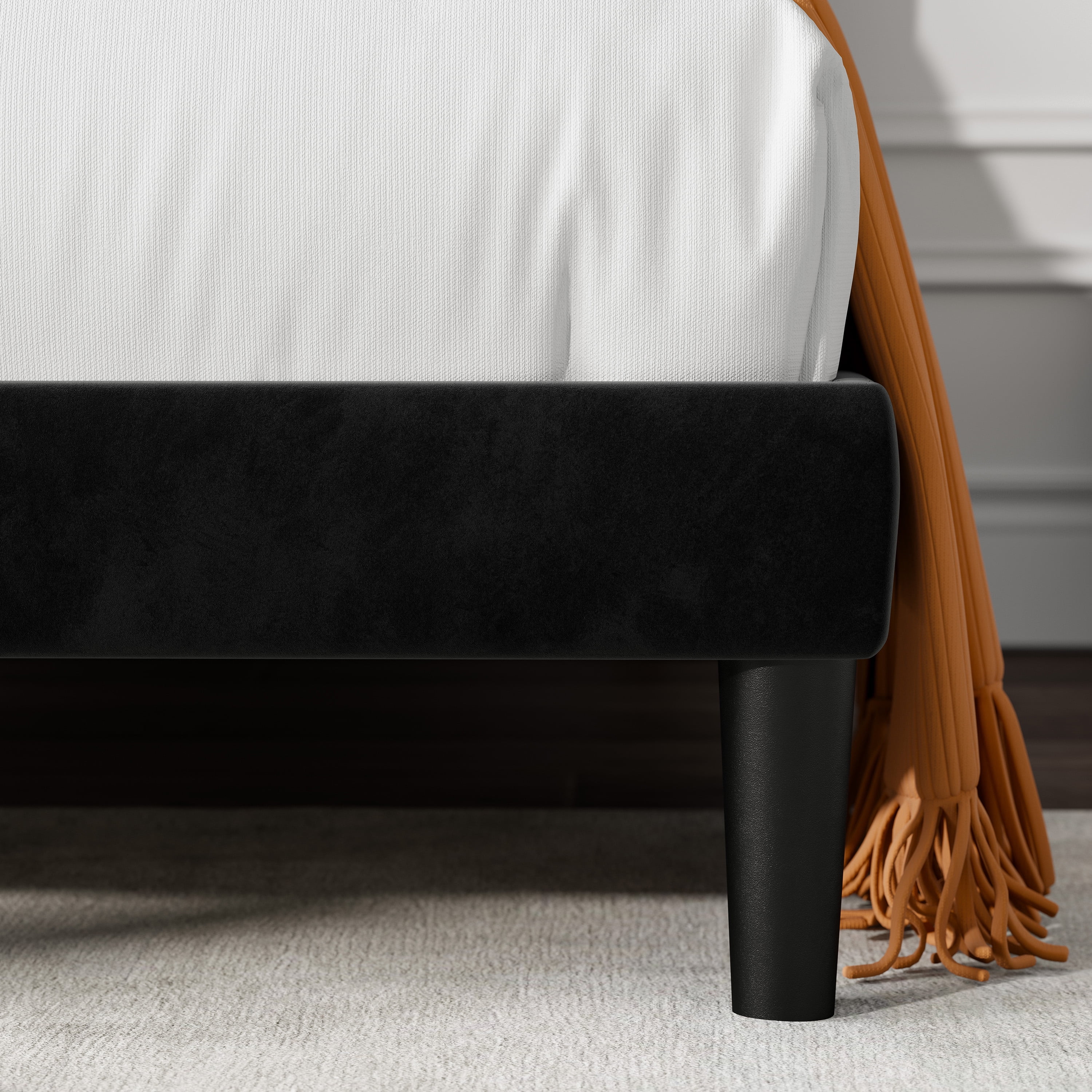 Allewie Queen Size Velvet Upholstered Platform Bed Frame with Adjustable Vertical Channel Tufted Headboard, Black