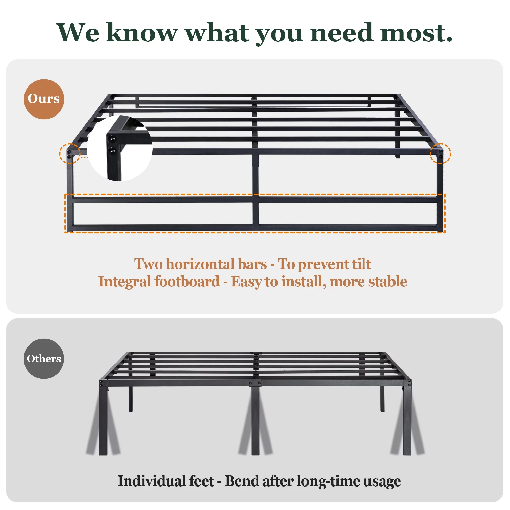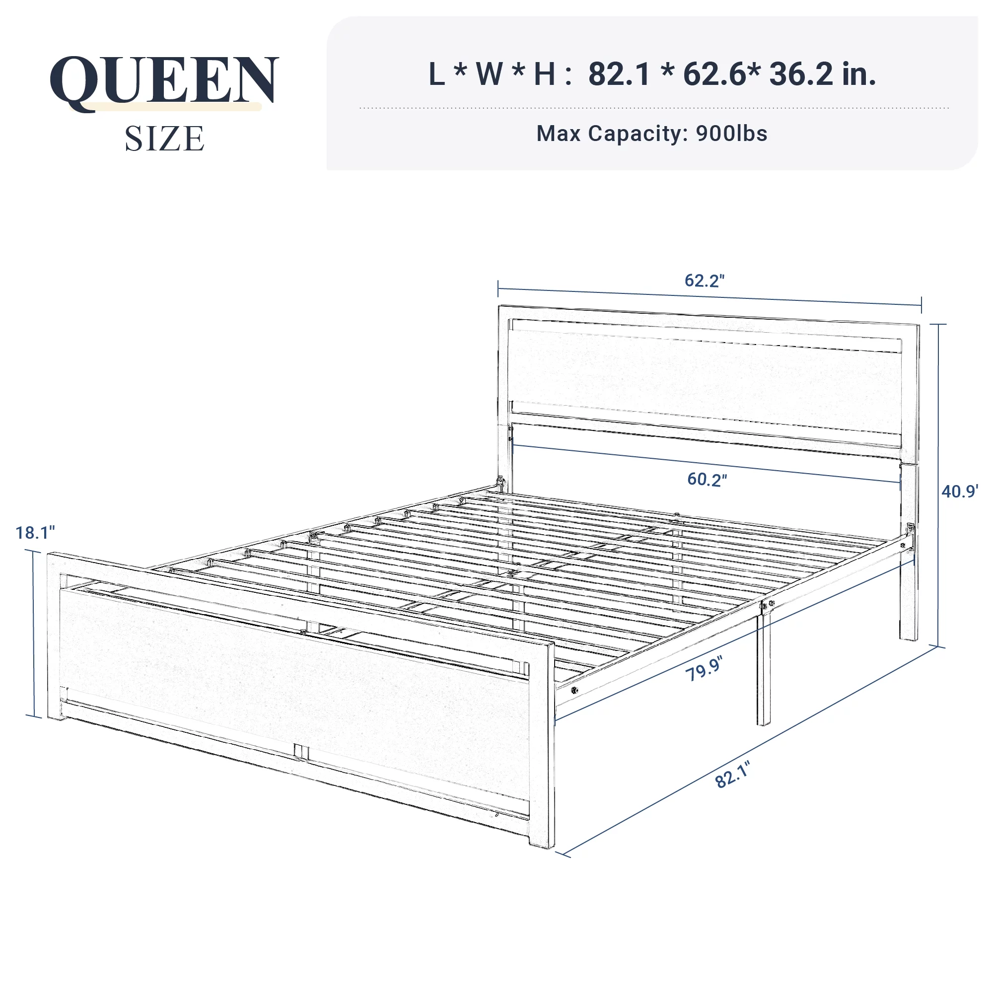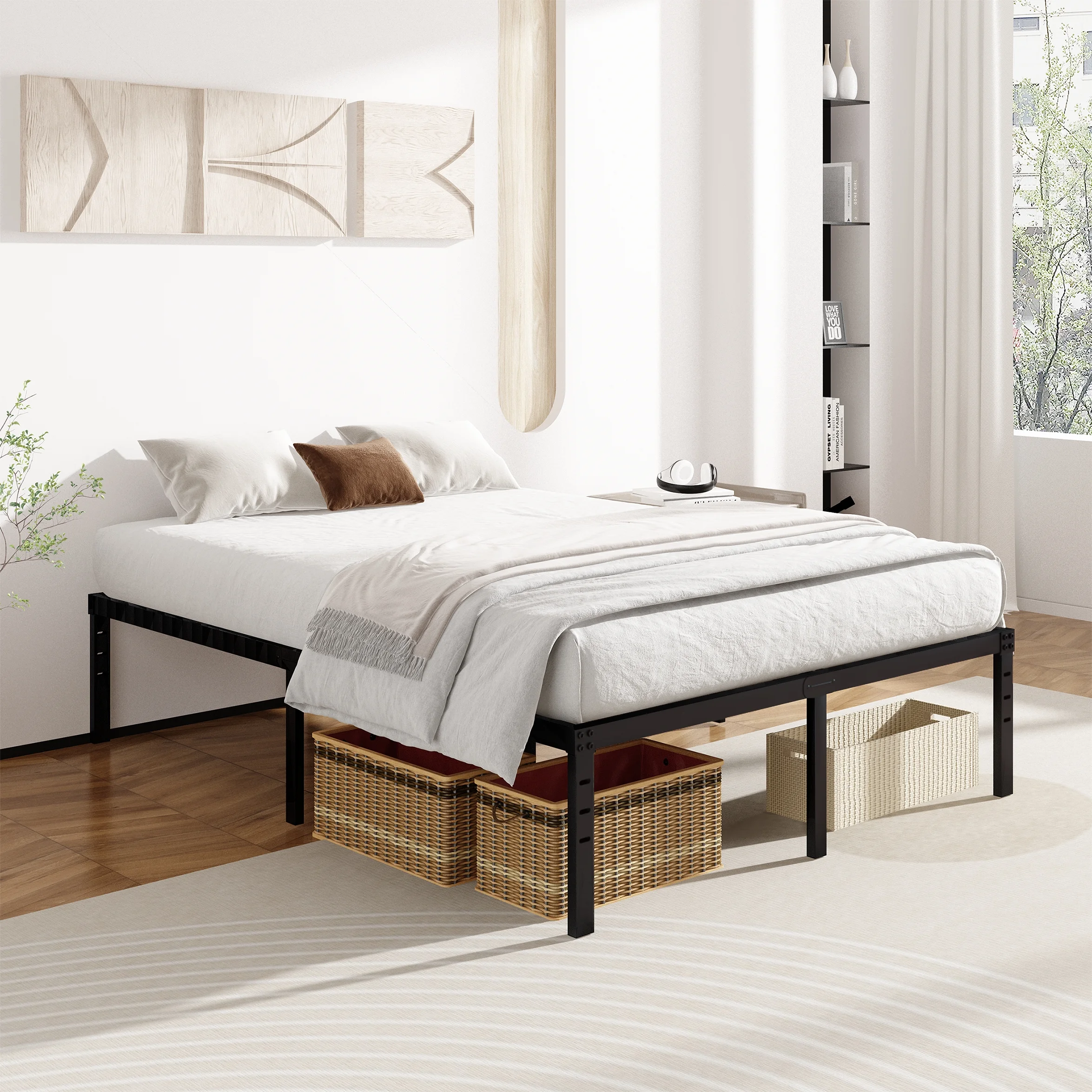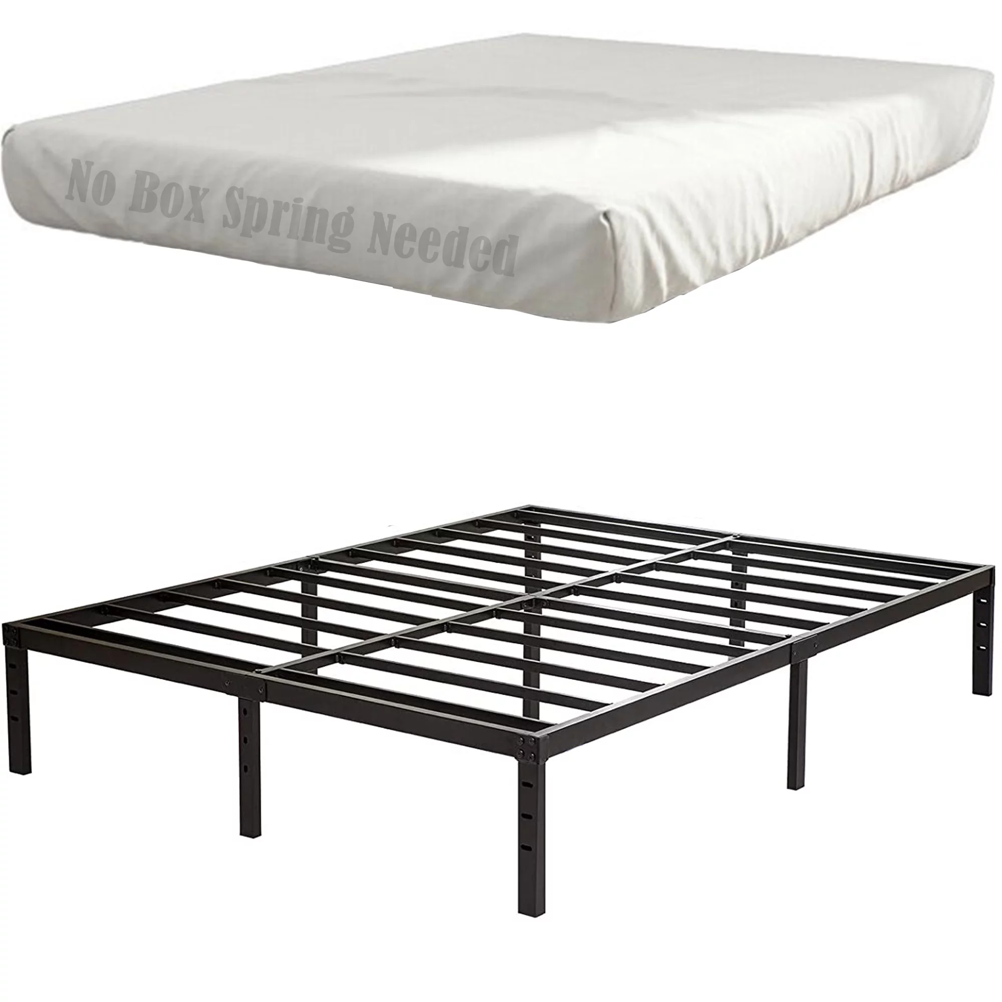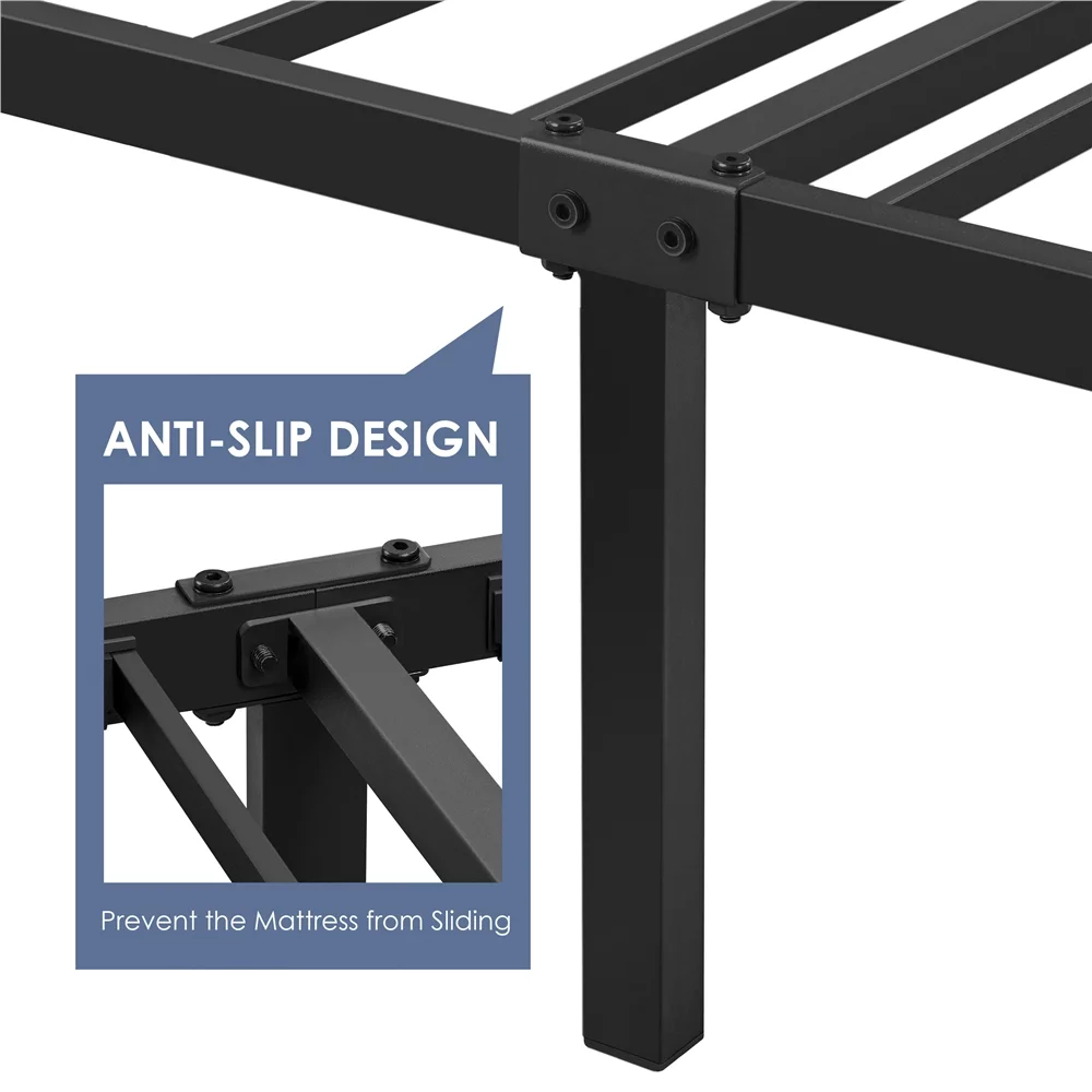 OmiNight 18 inches Tall Heavy Duty Steel Slat Queen Size Metal Bed Framenoiseless No Box Spring Needed