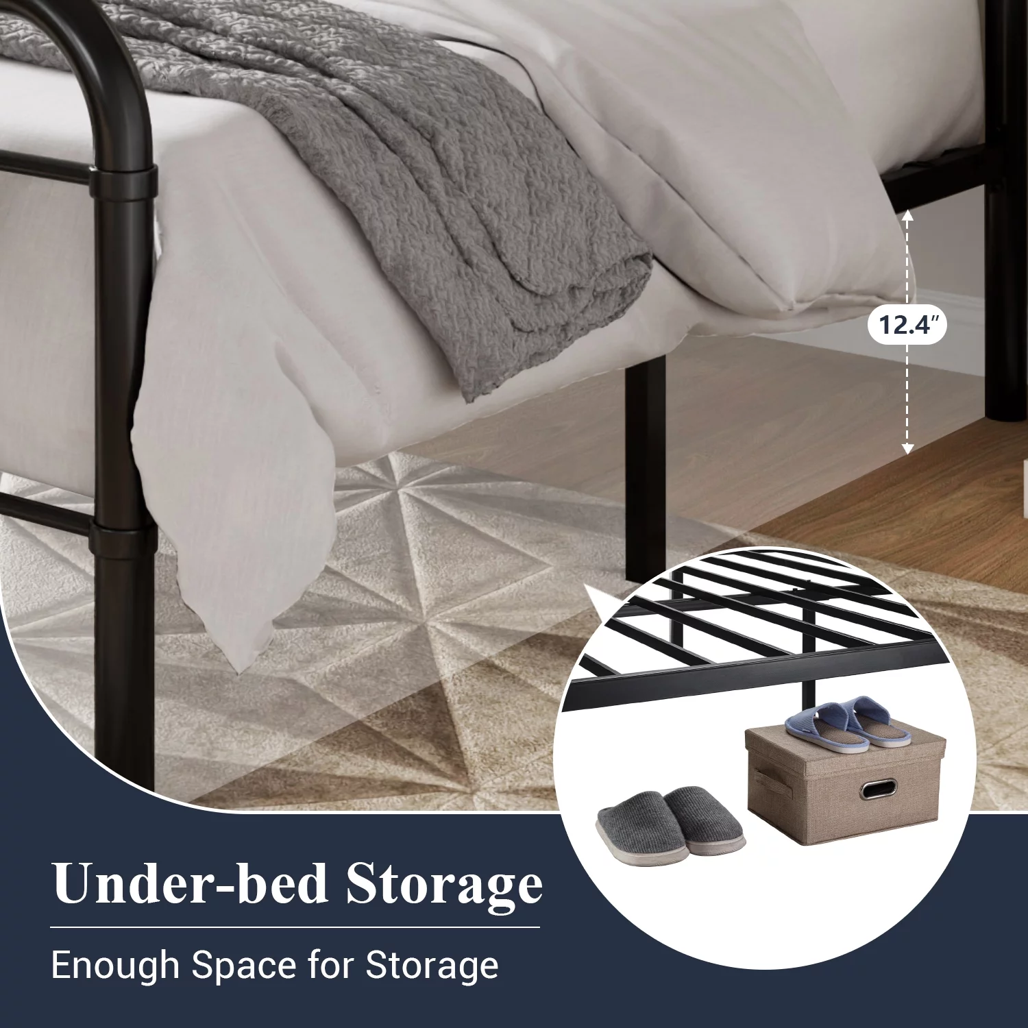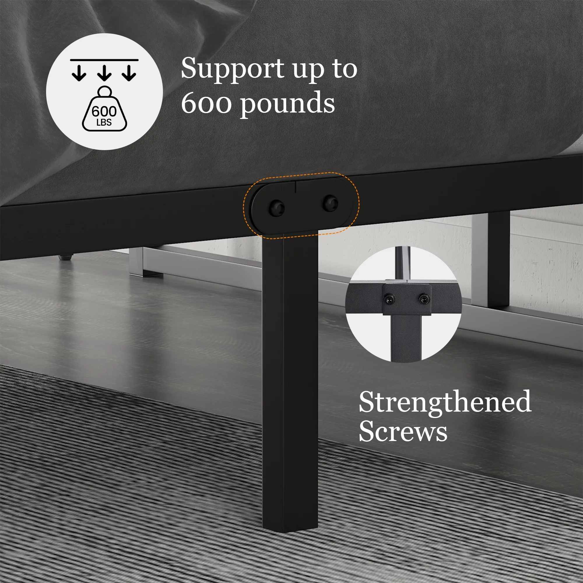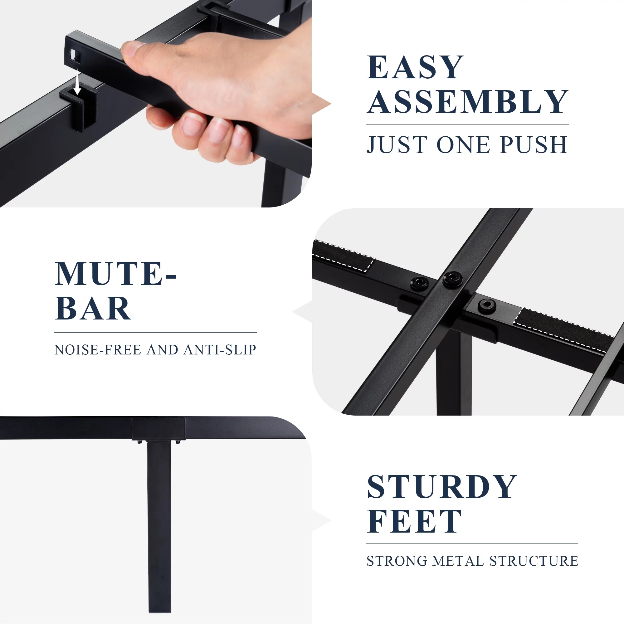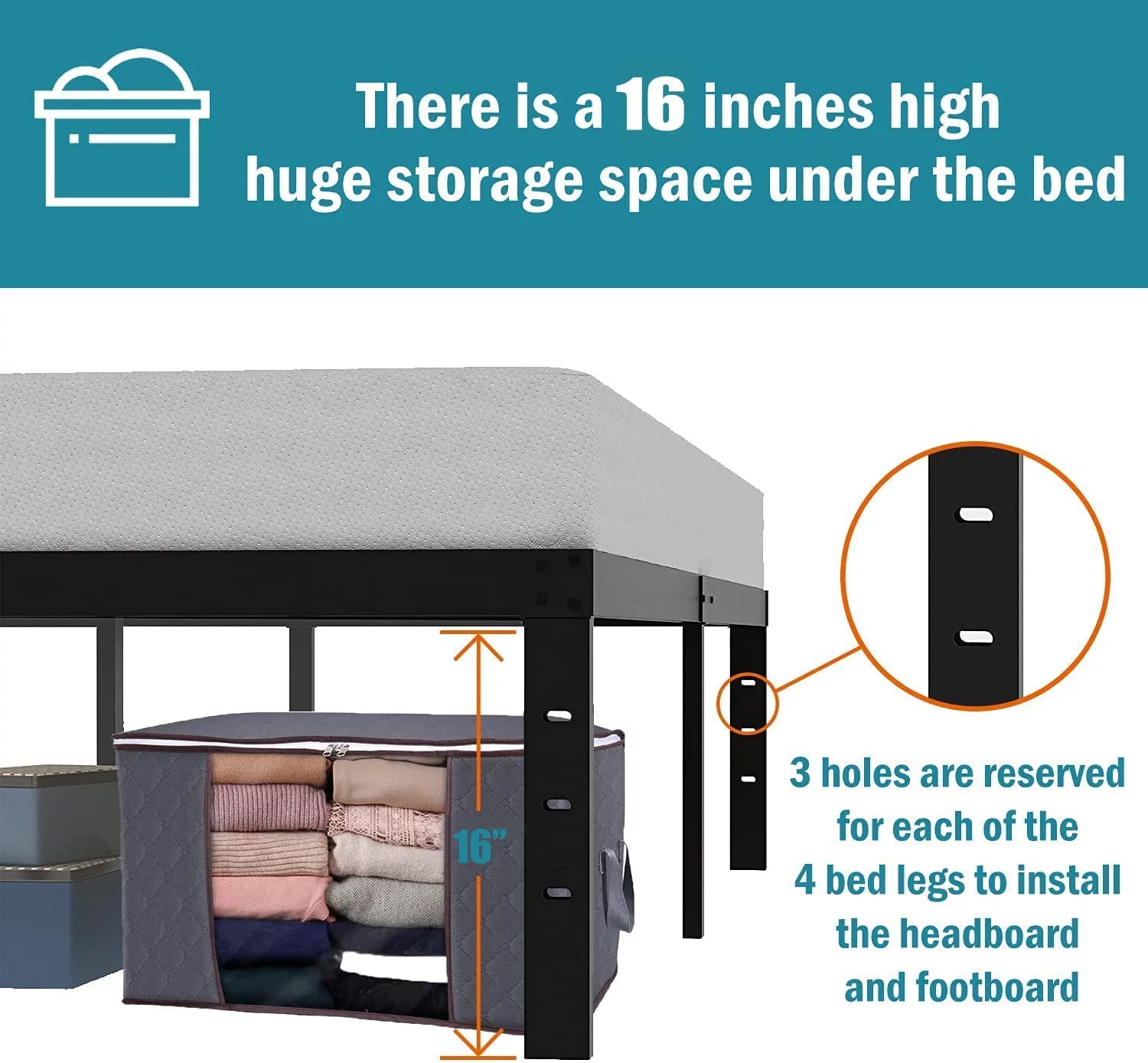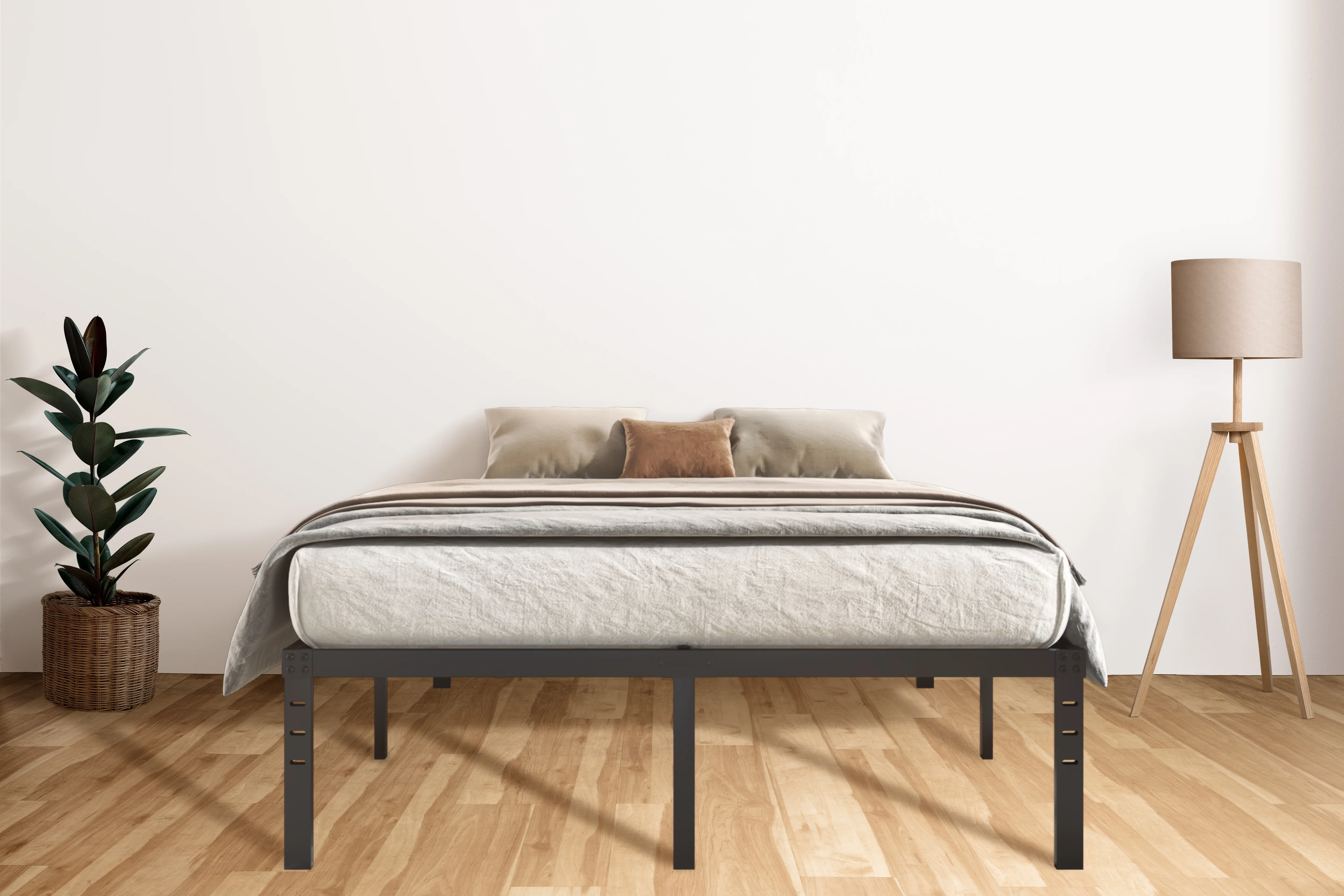 OmiNight 18 inches Tall Heavy Duty Steel Slat Queen Size Metal Bed Framenoiseless No Box Spring Needed