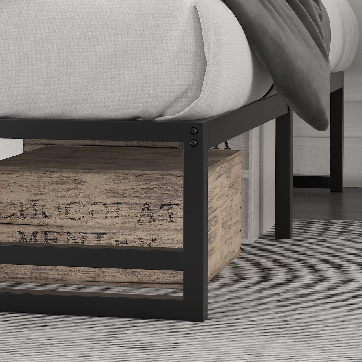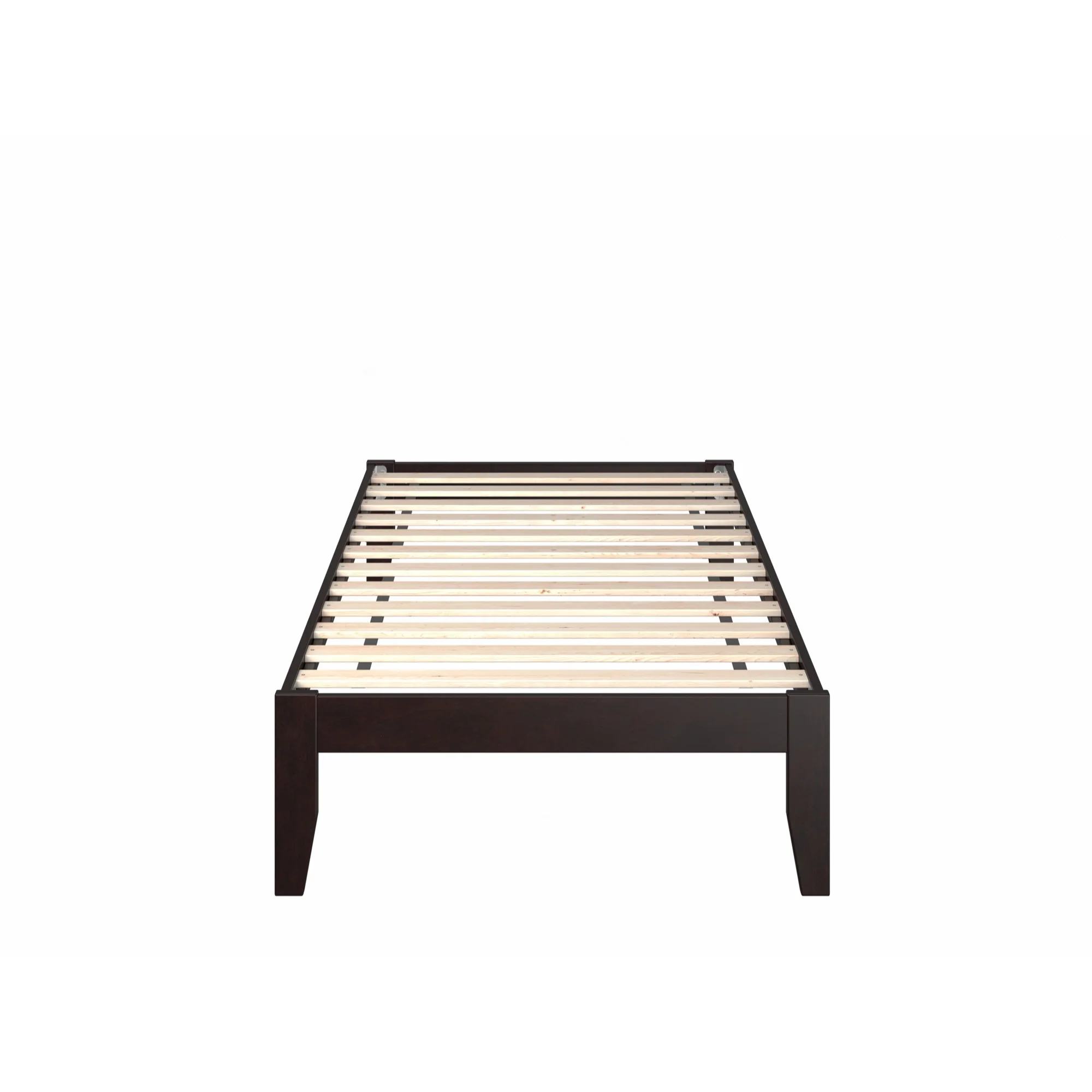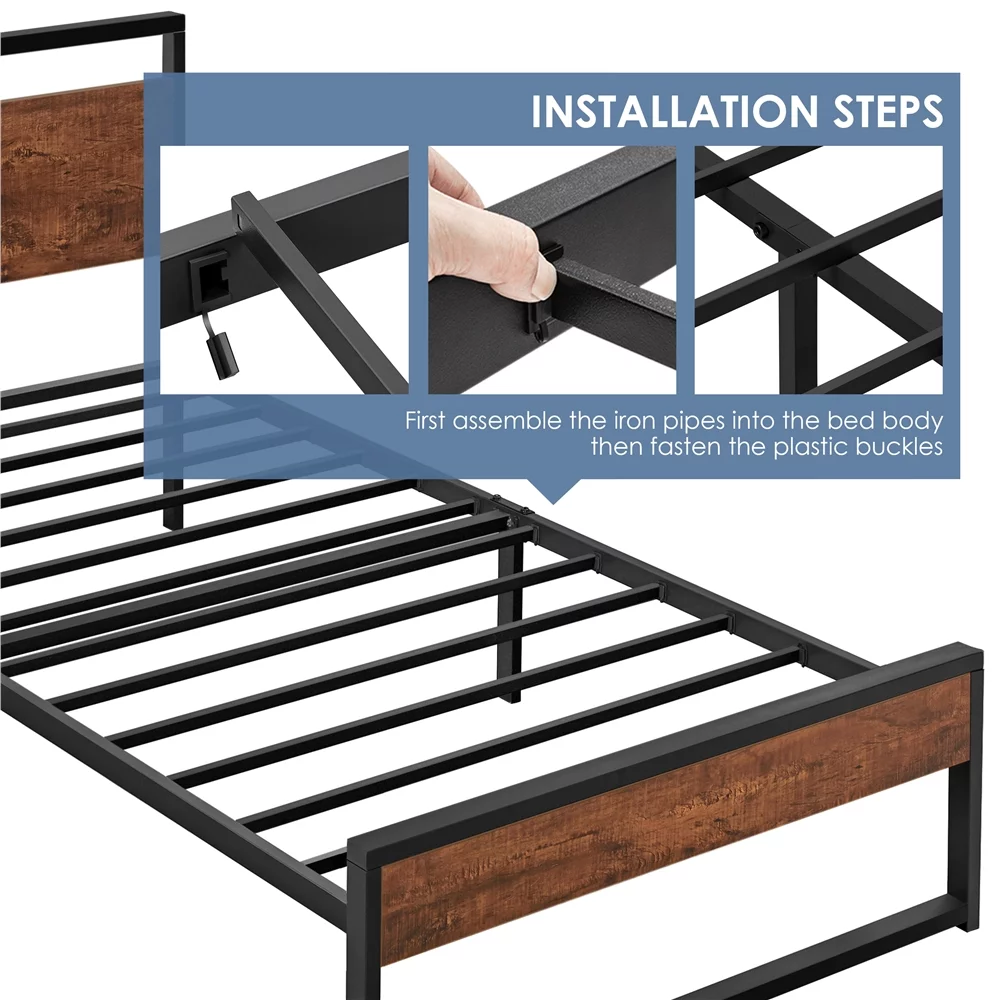 Easyfashion Rustic Metal Frame Base Platform Bed with Slat Support, Rustic Brown, Twin