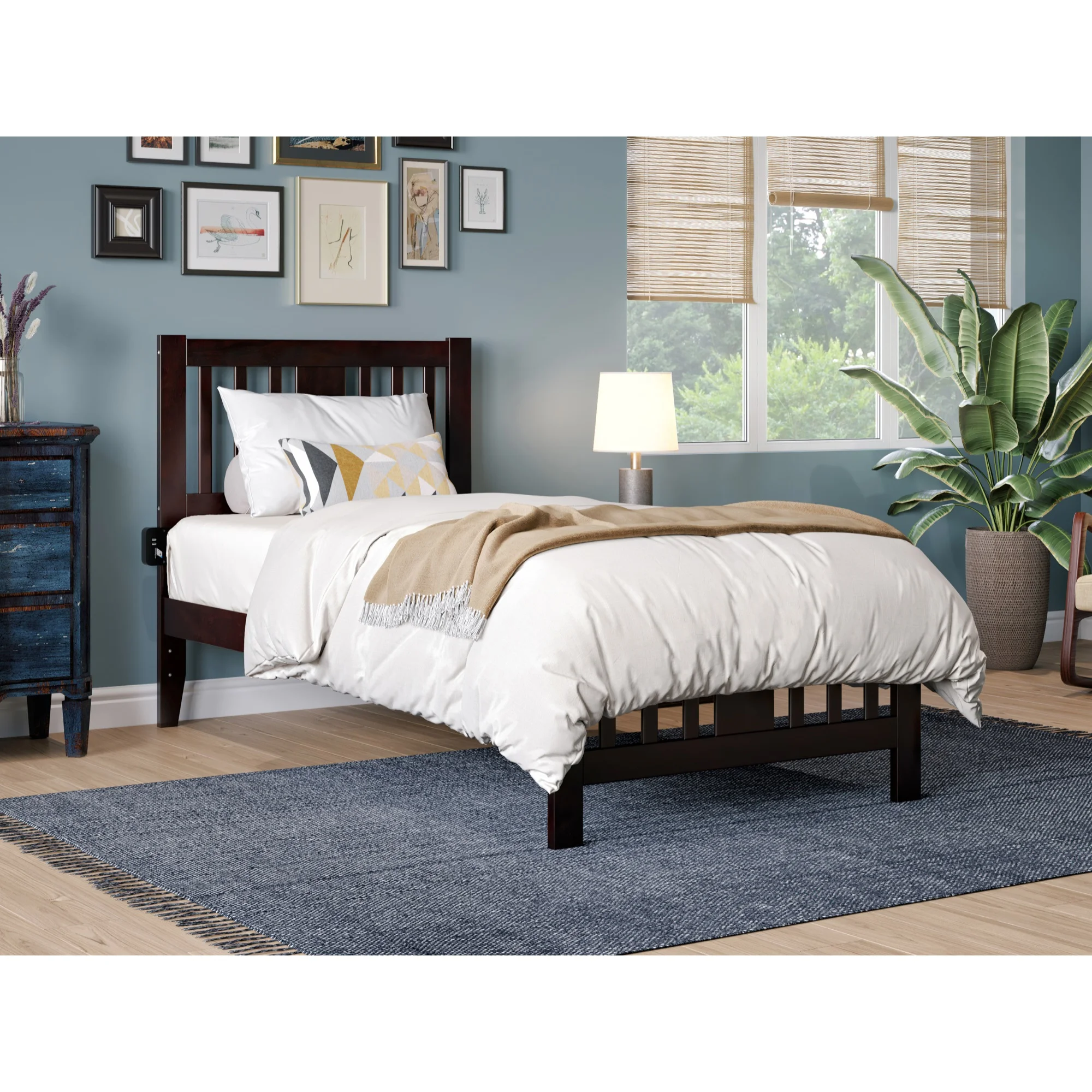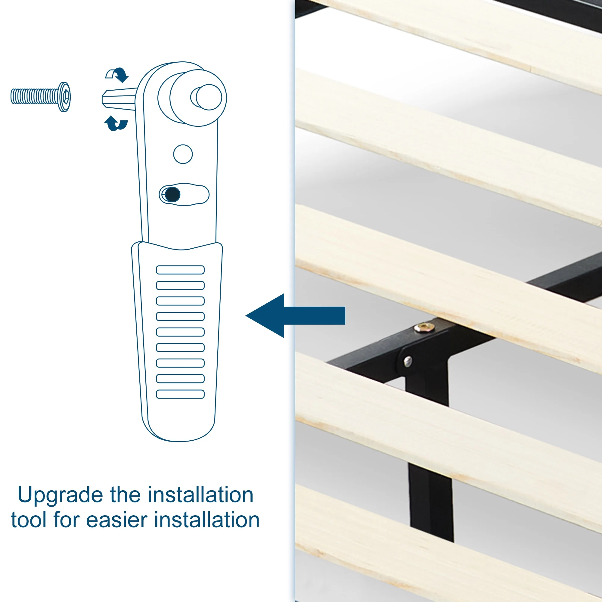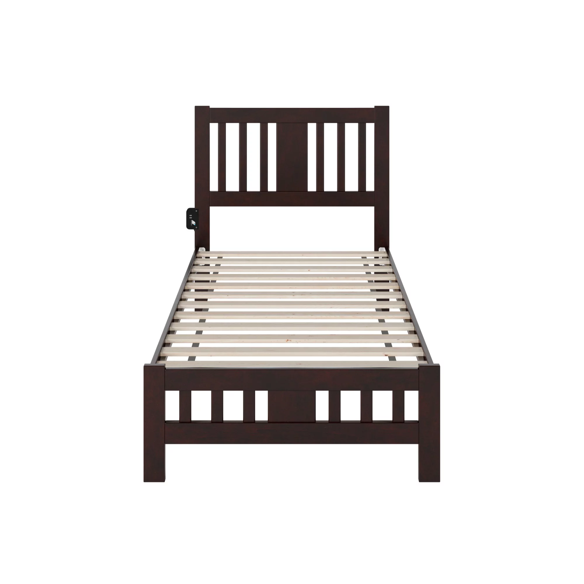 Easyfashion Rustic Metal Frame Base Platform Bed with Slat Support, Rustic Brown, Twin