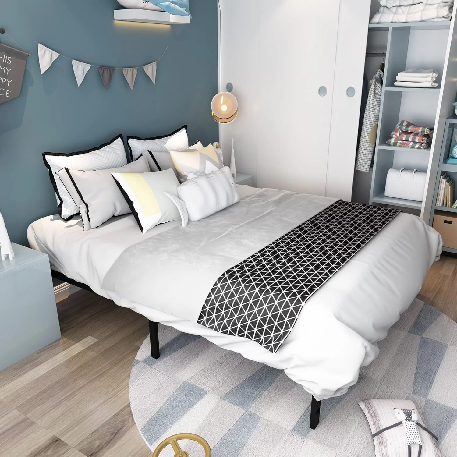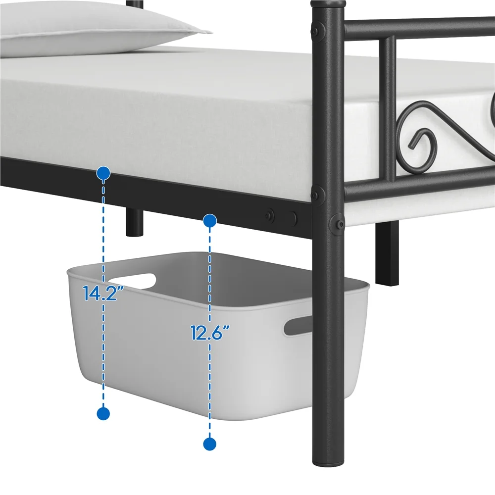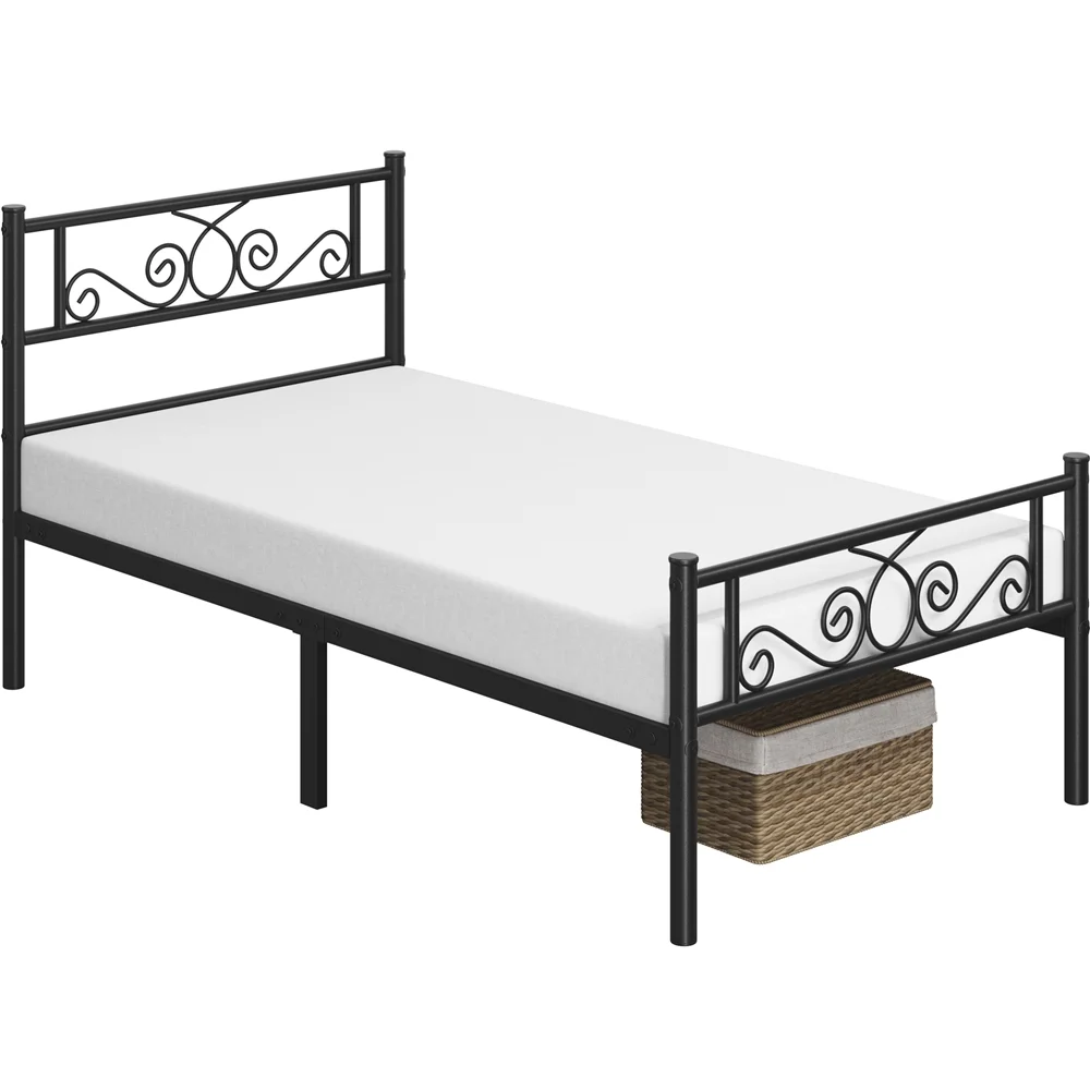 Yaheetech Graceful Scroll Platform Bed with Headboard and Footboard, Twin, Black