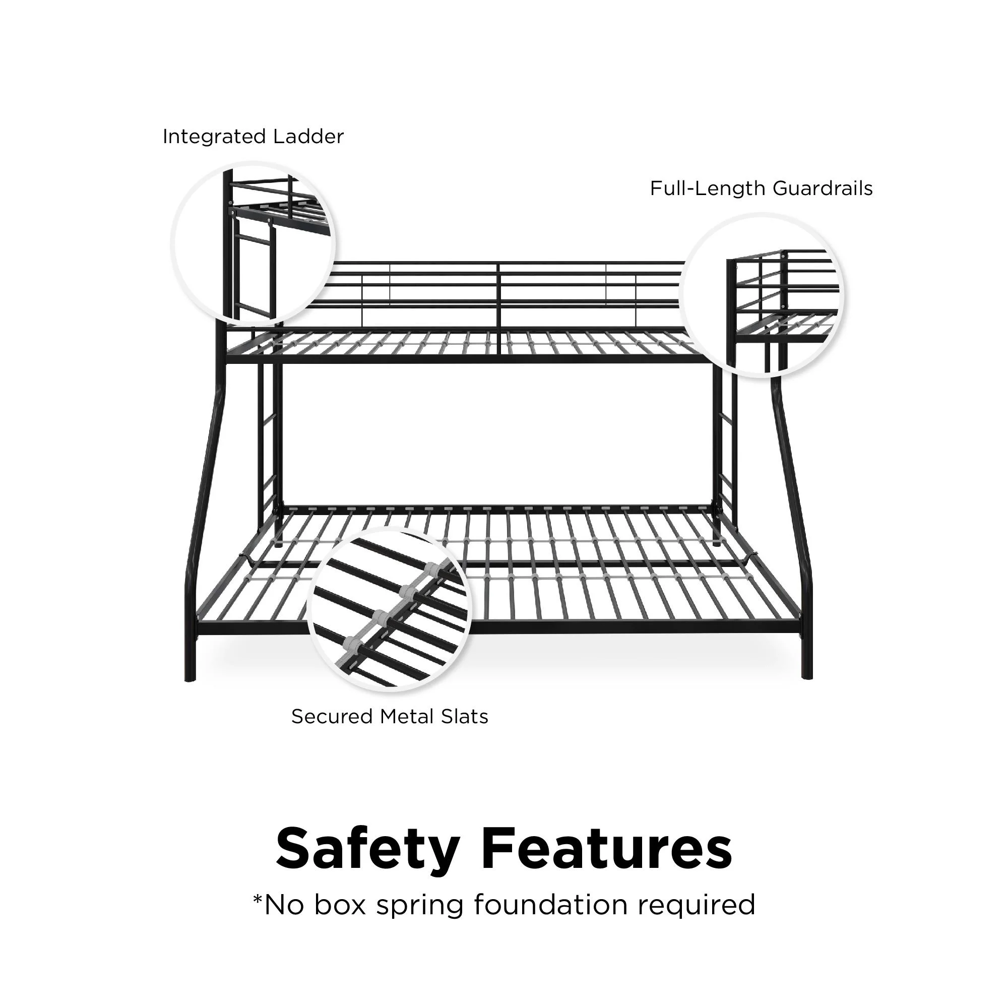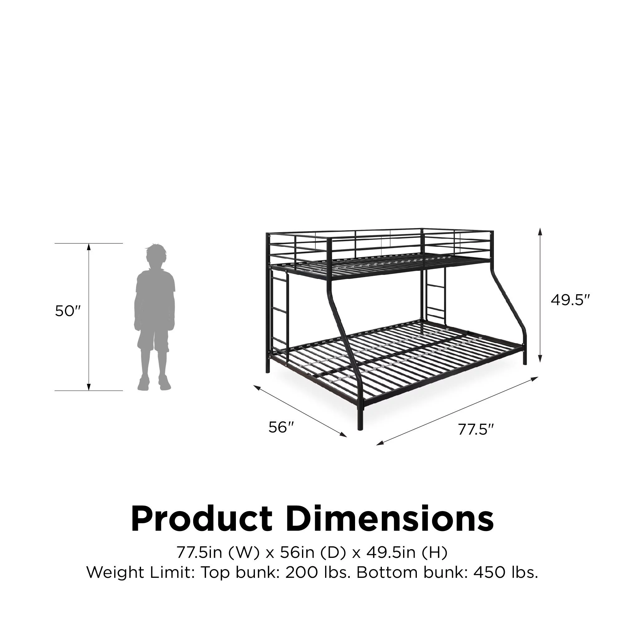 Mainstays Small Space Junior Twin over Full Low Profile Metal Bunk Bed, Black