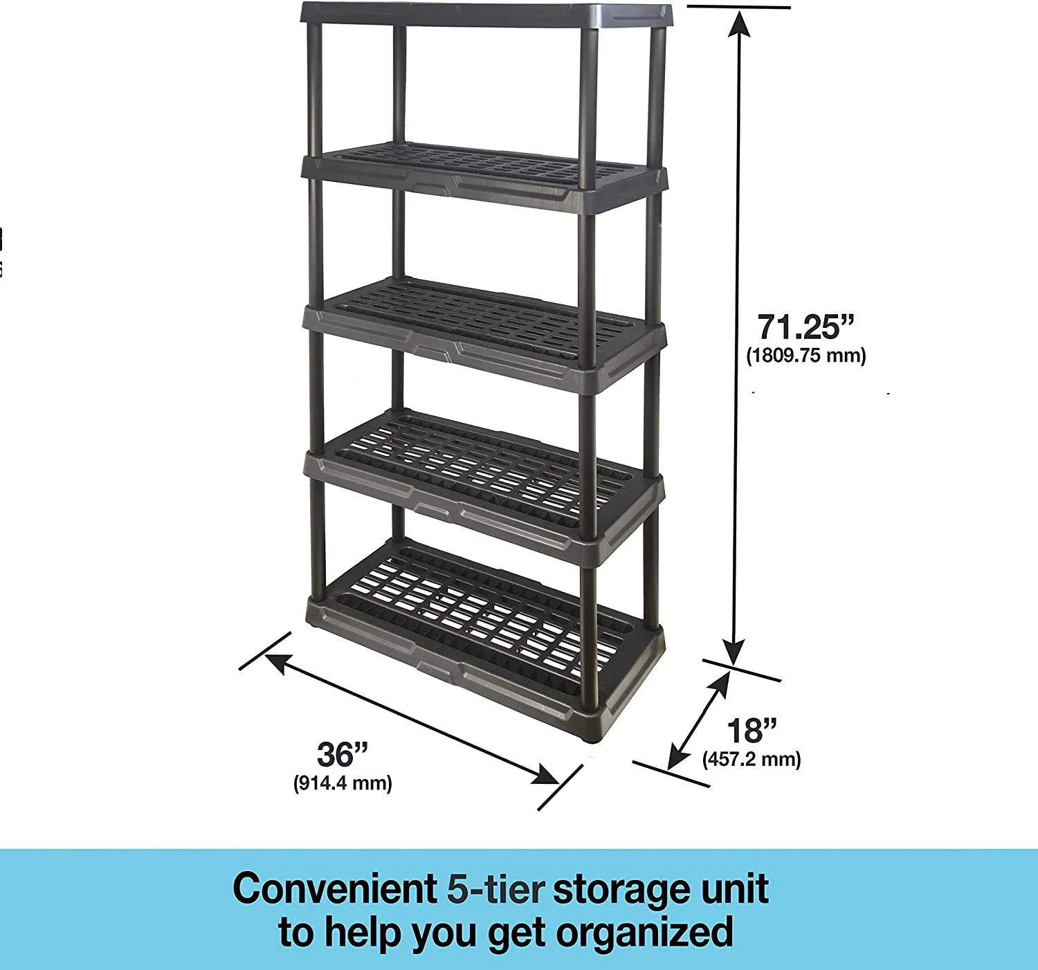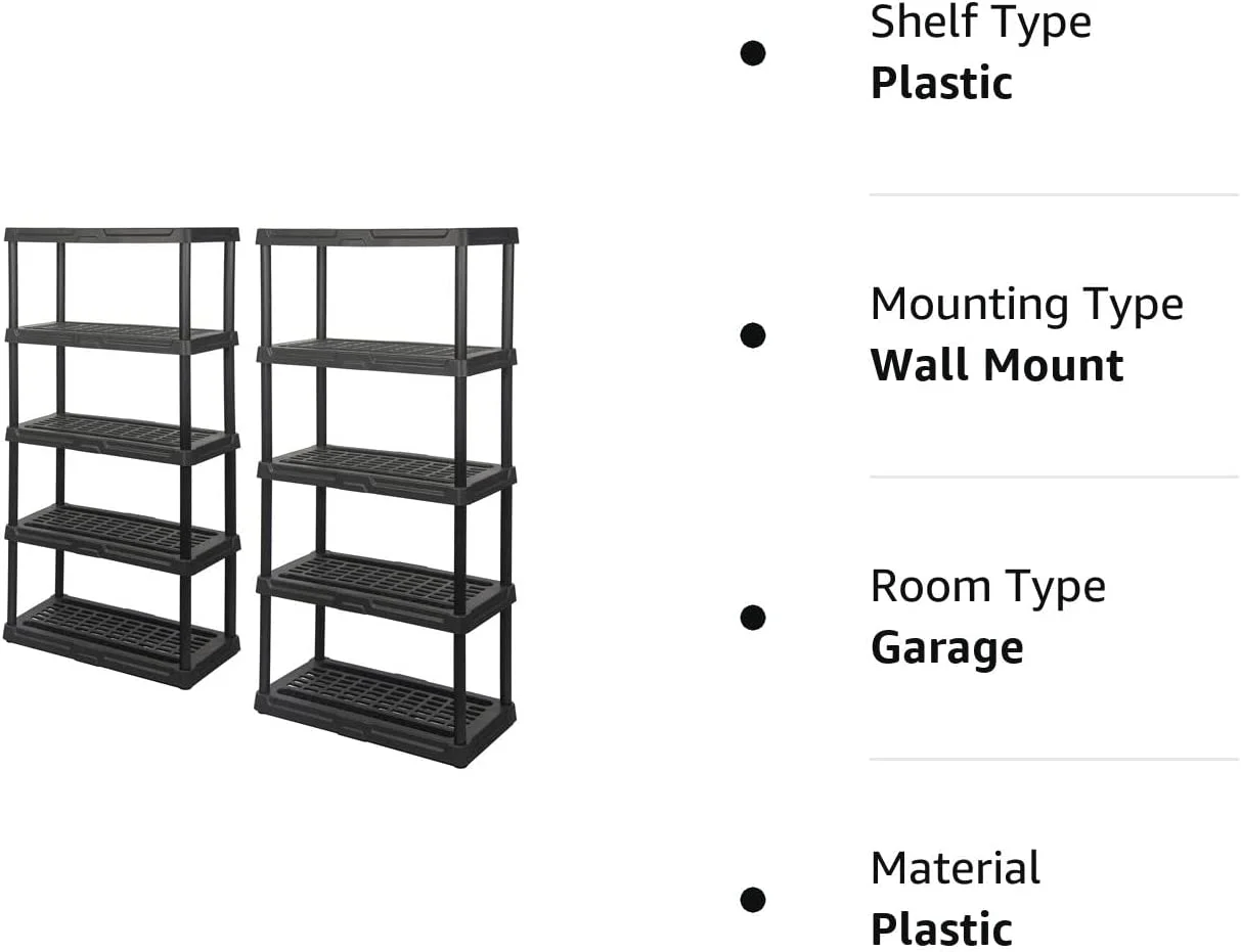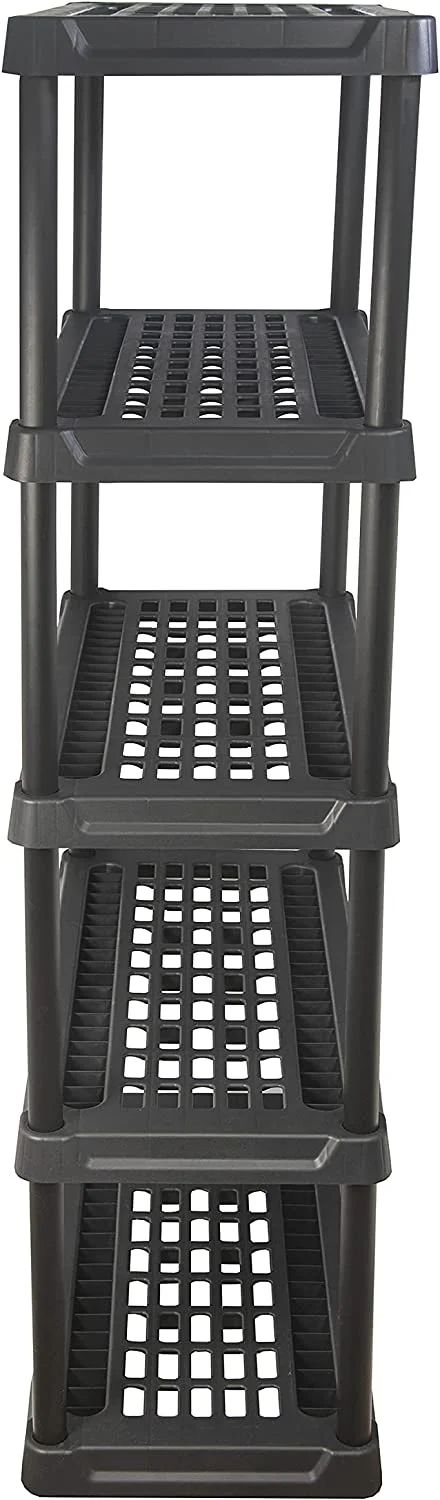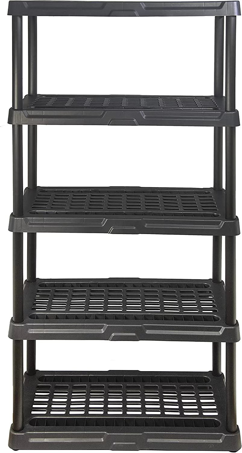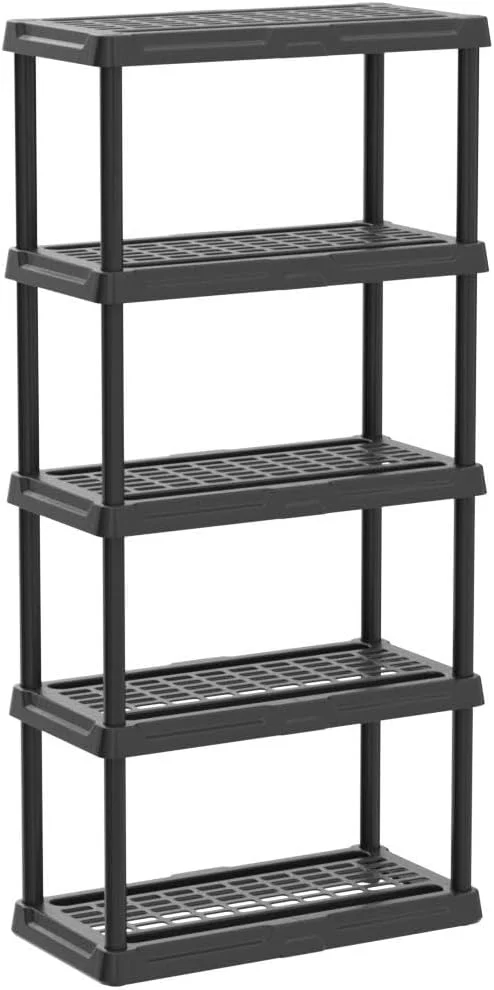 Plano 36"W x 18"D x 74"H 5 Shelf Heavy Duty Plastic Garage Shelving Unit, Dark Grey, 750 lb Capacity