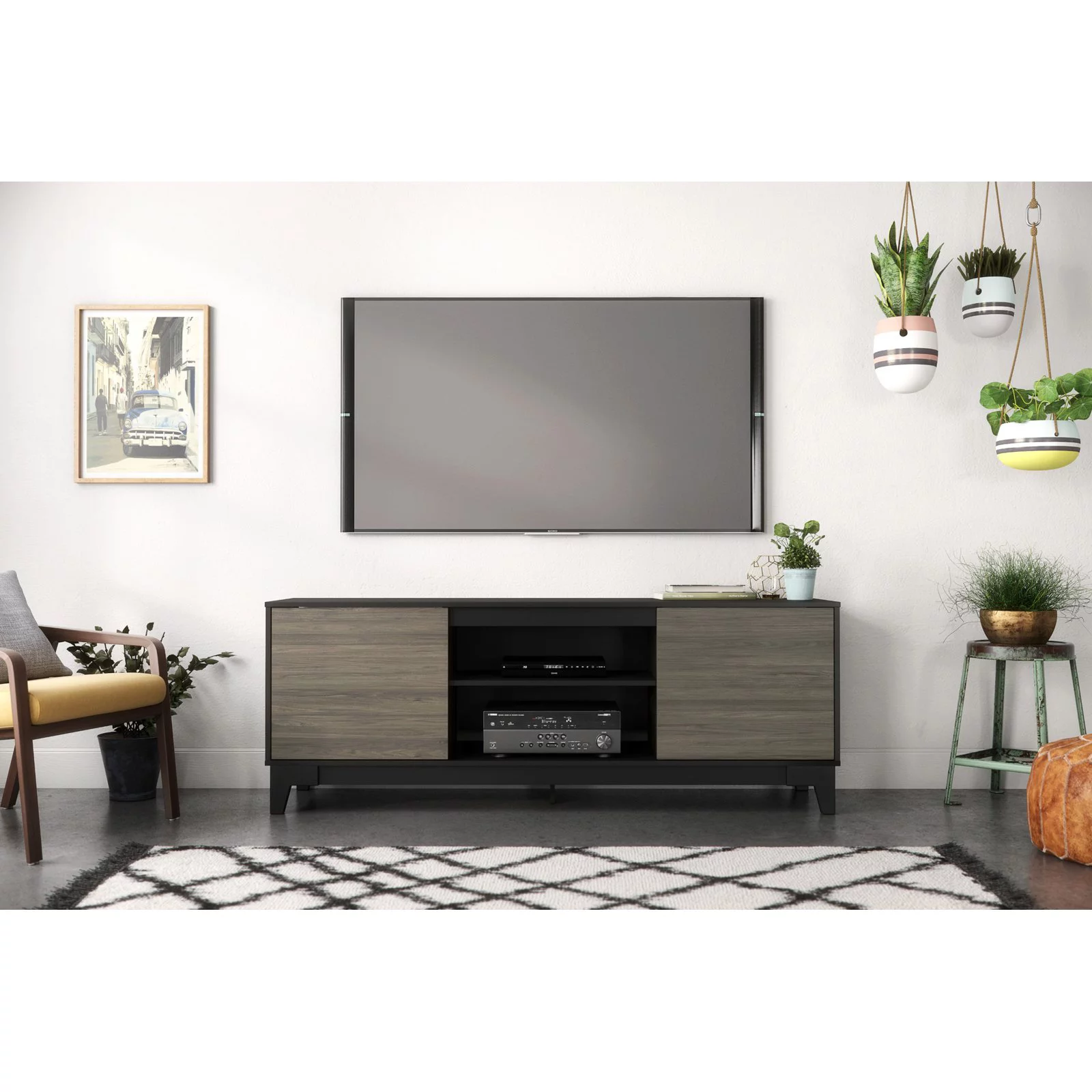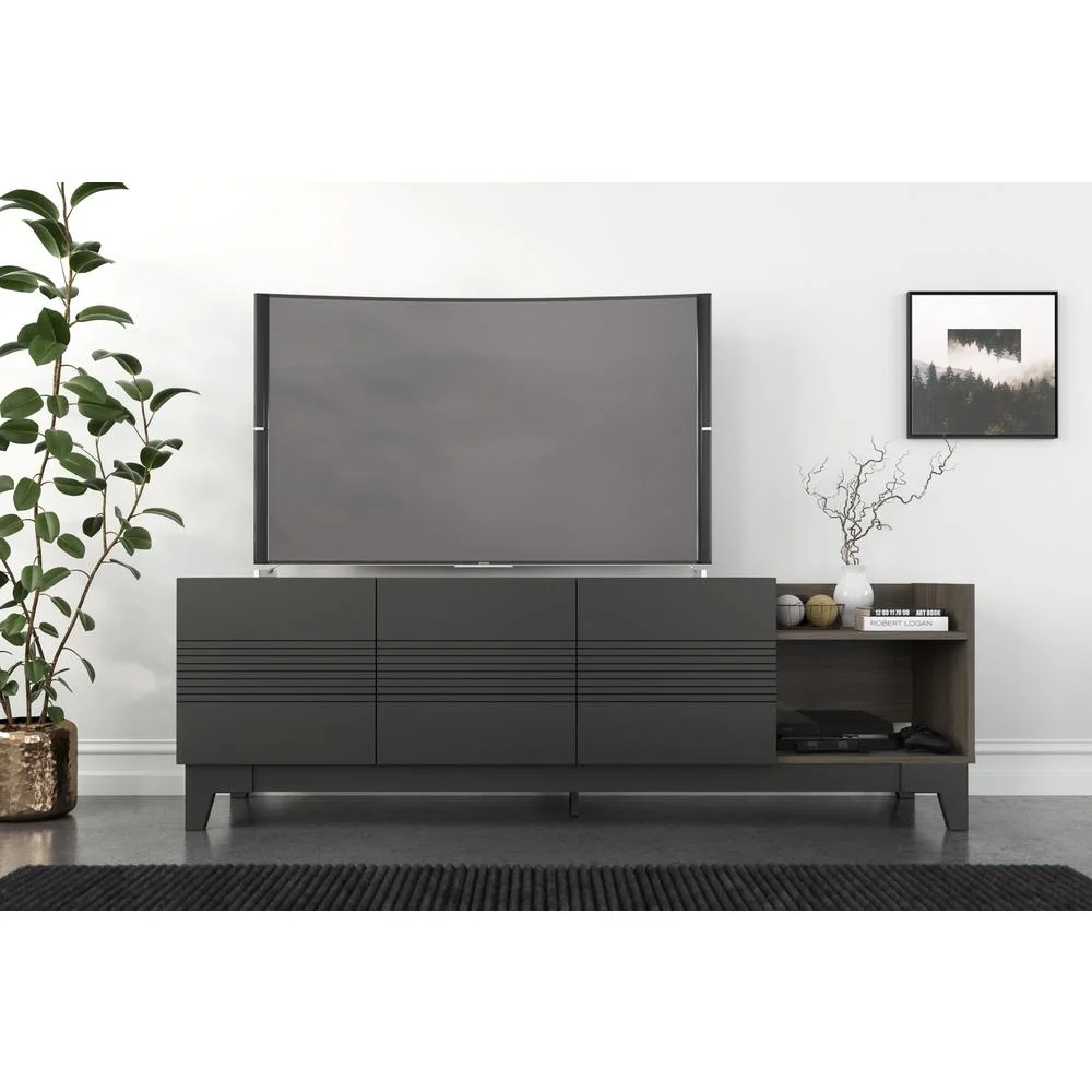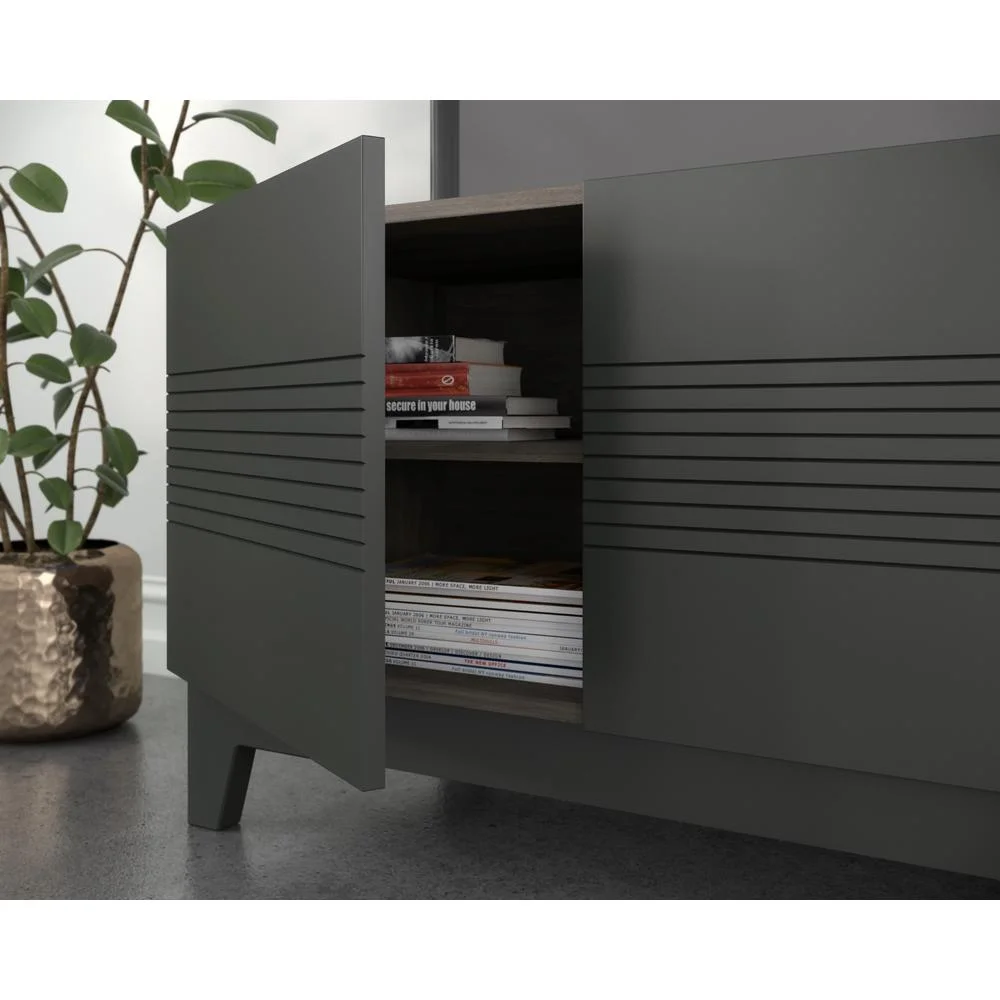 Nexera Influence Modern Wood TV Stand for TVs up to 80 in., Bark Gray and Charcoal Gray
