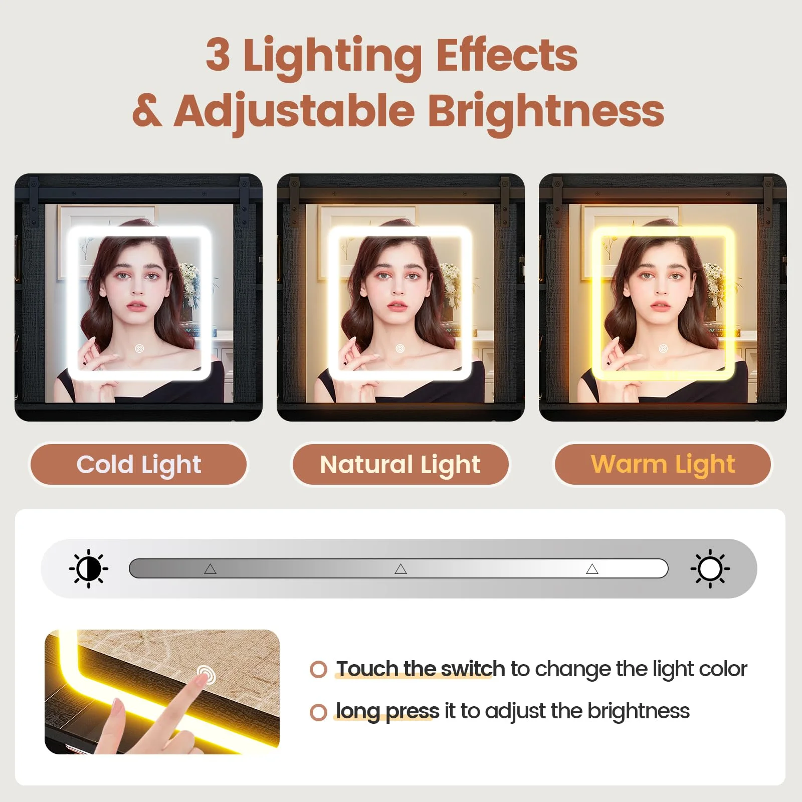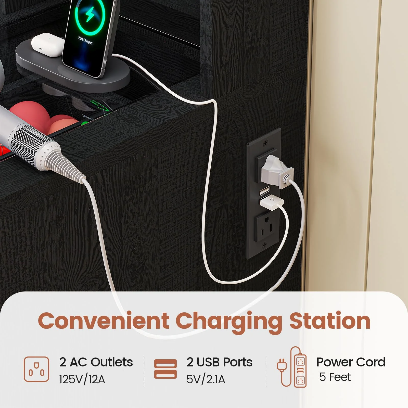 Makeup Vanity Desk with Sliding Mirror and Lights,Farmhouse Vanity Table with Charging Station&5 Drawers&Cabinets, Black