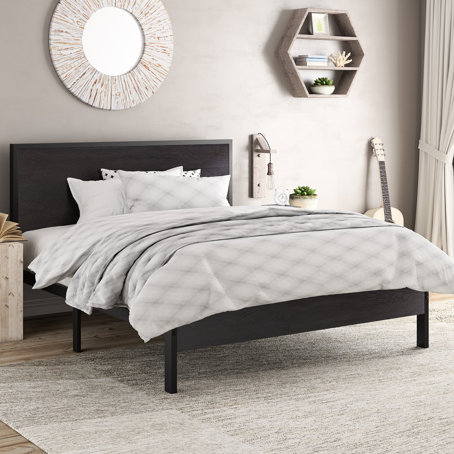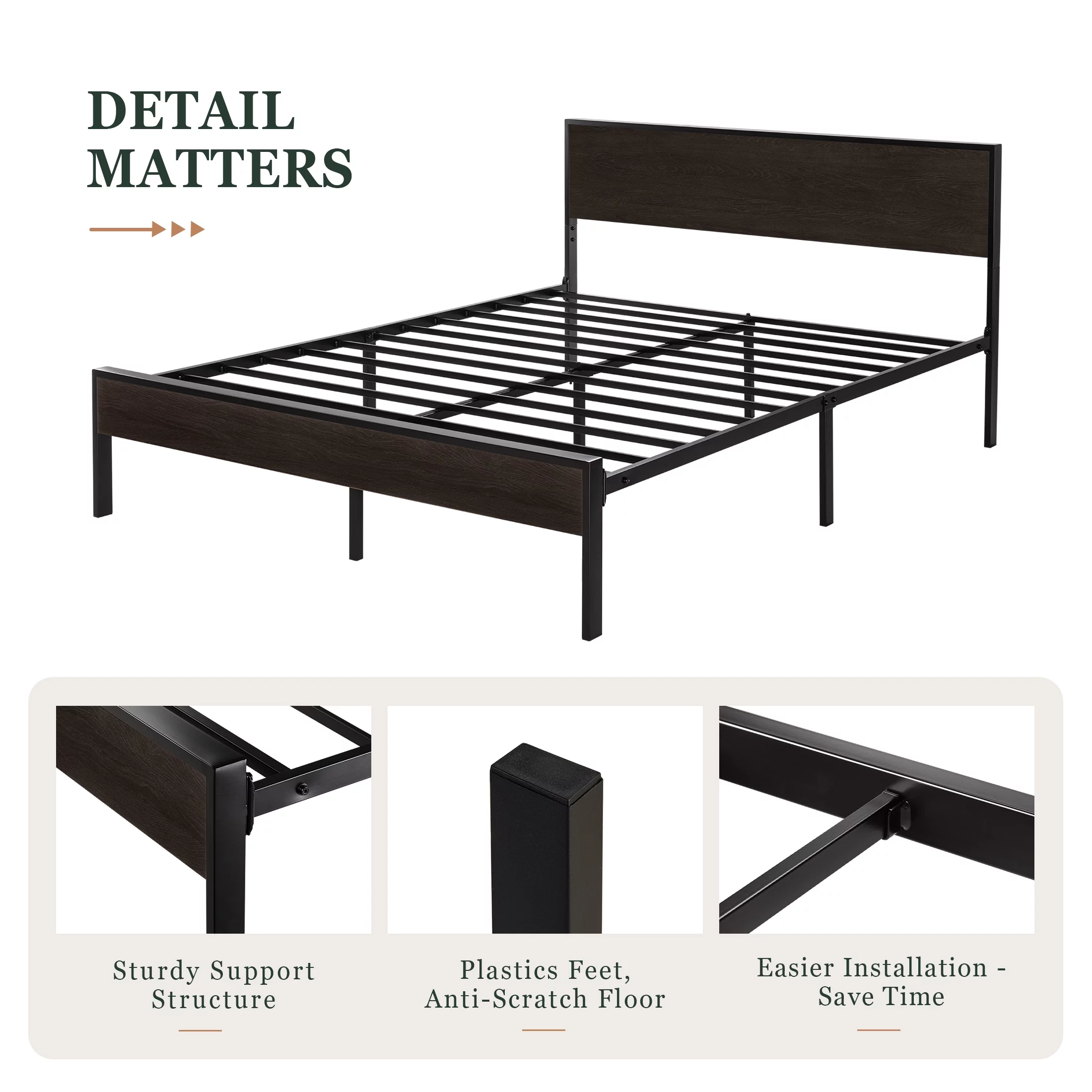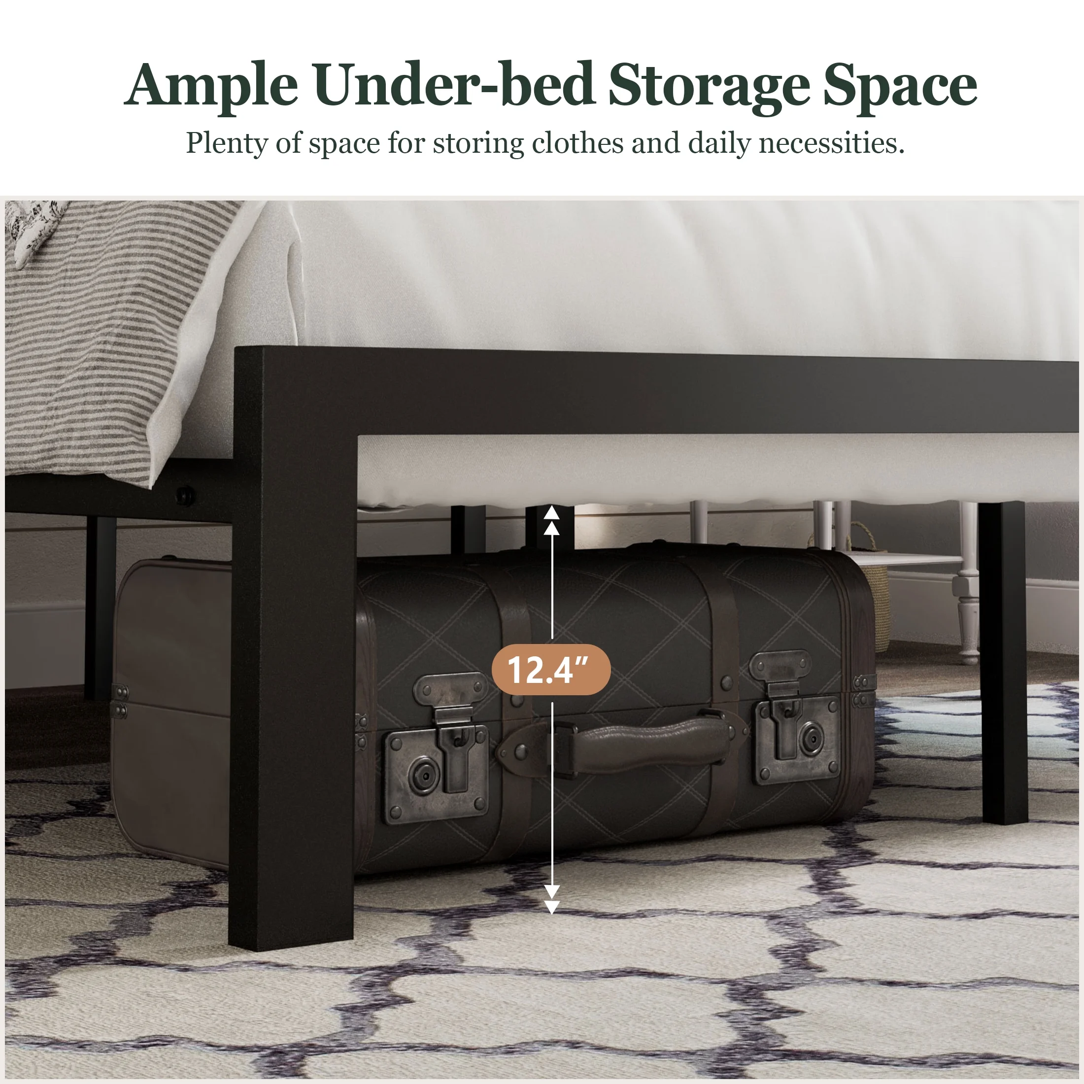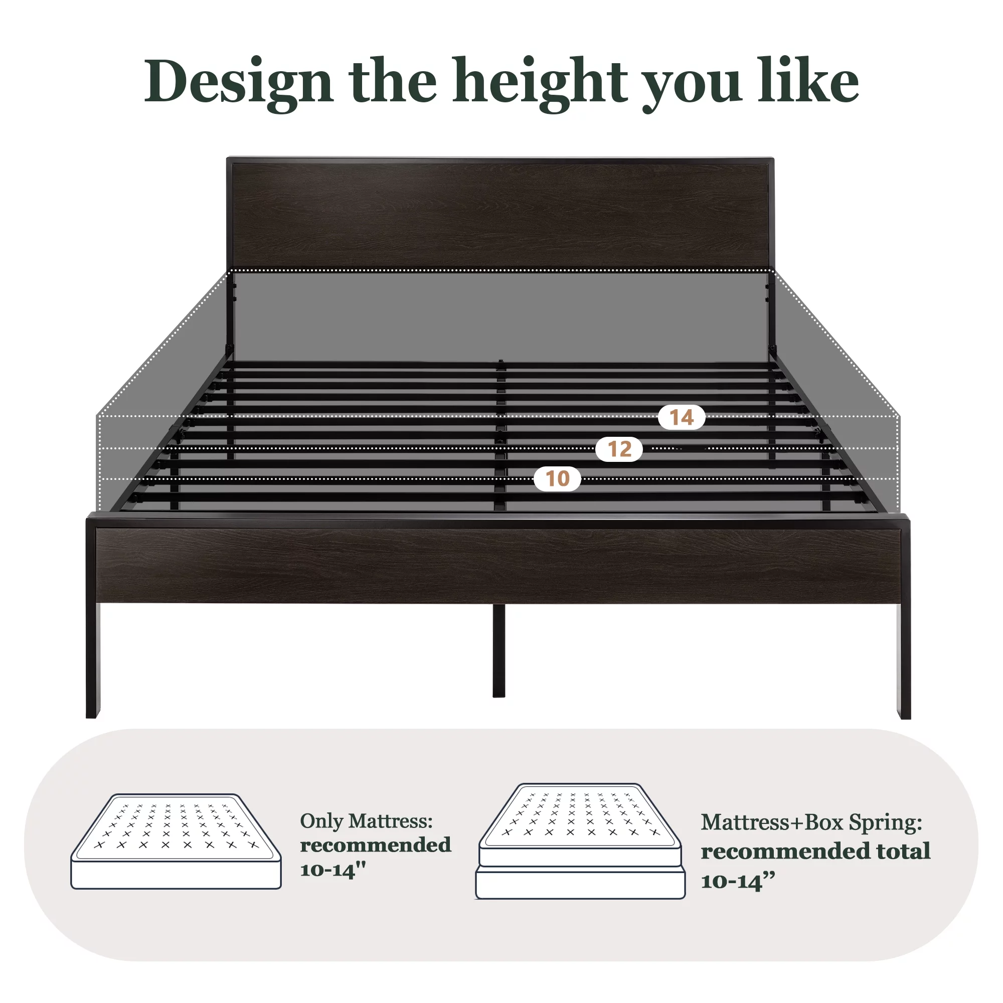 Amolife Heavy Duty Full Size Platform Bed Frame with Wood Headboard, 12" Under Bed Storage, Black Oak