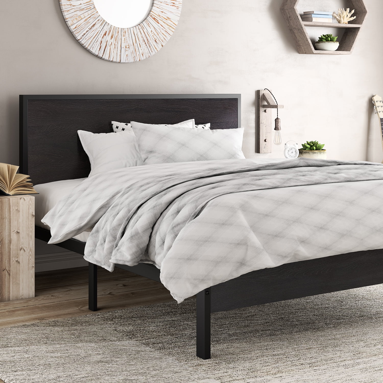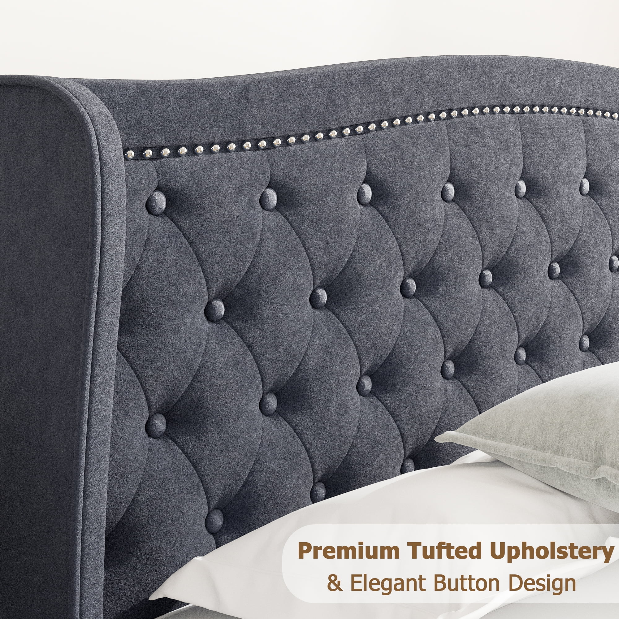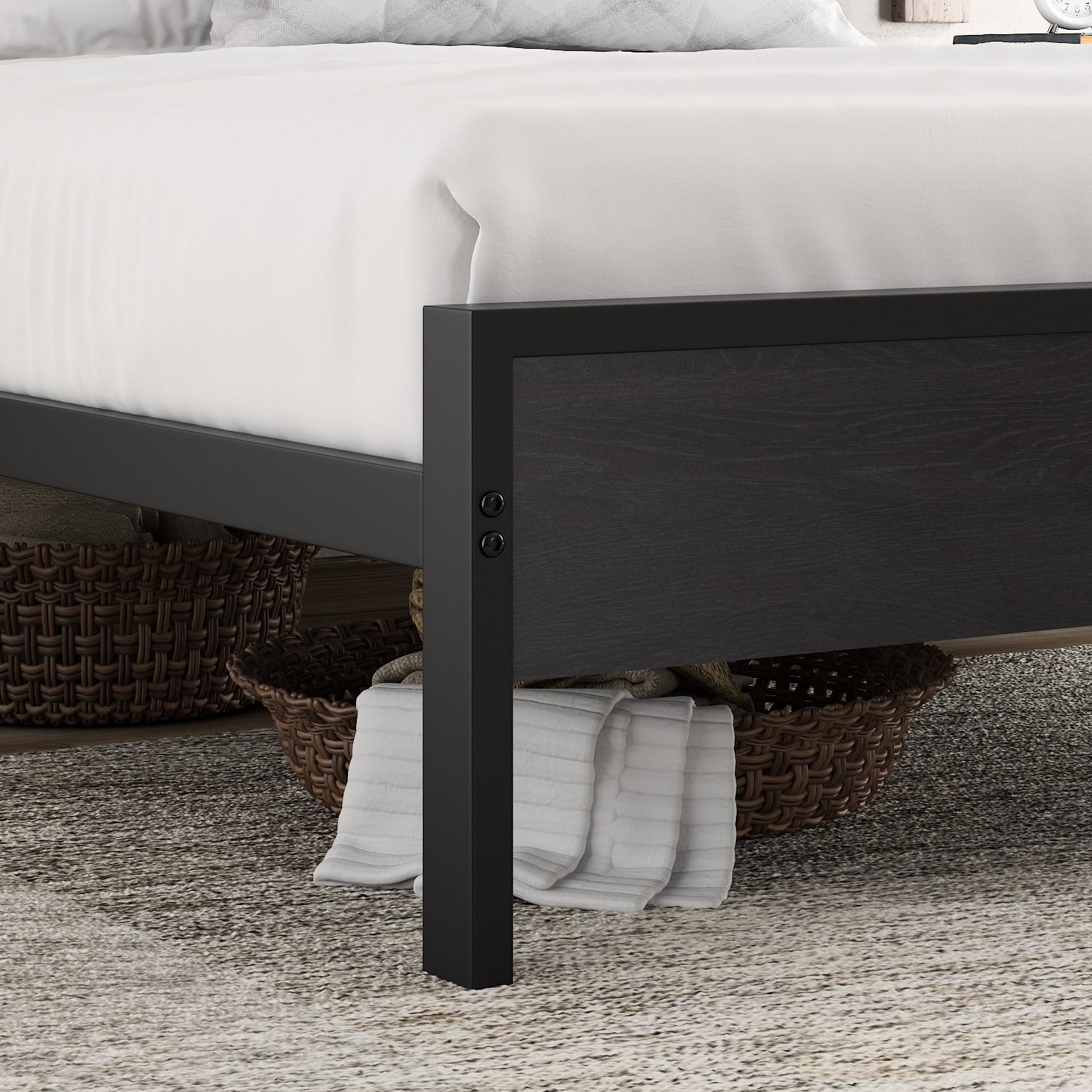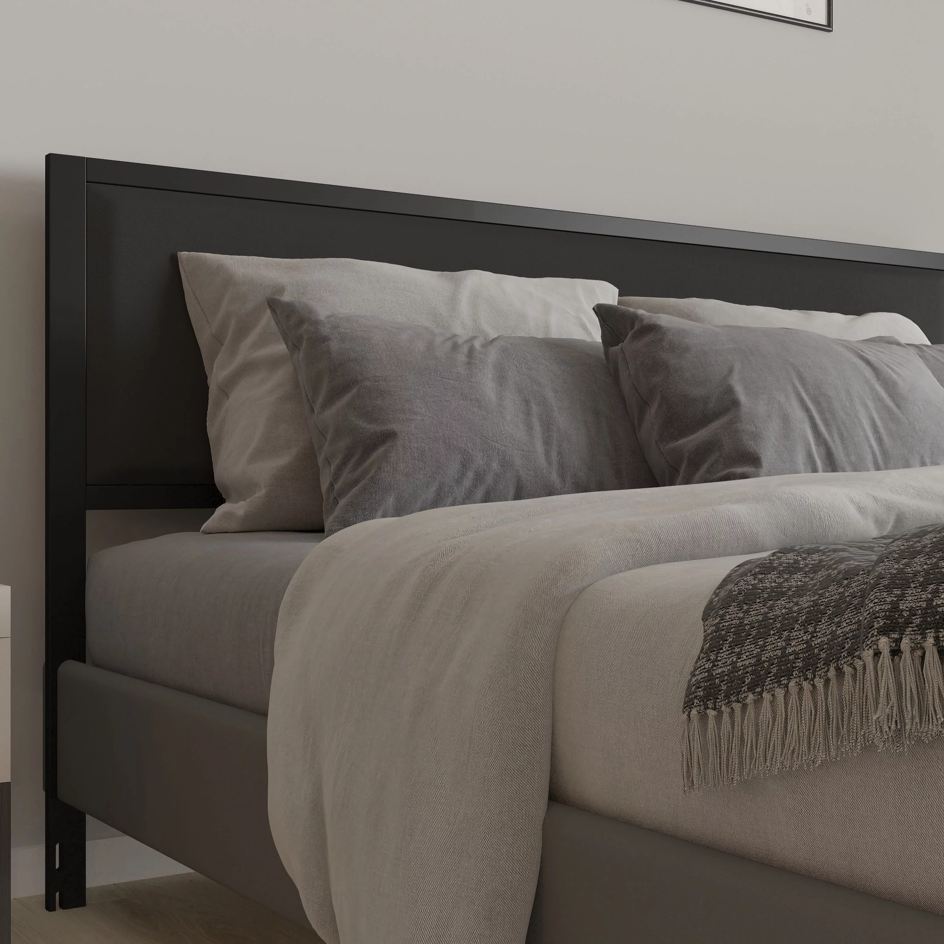 Amolife King Size Metal Bed Frame with Upholstered Headboard, Dark Grey