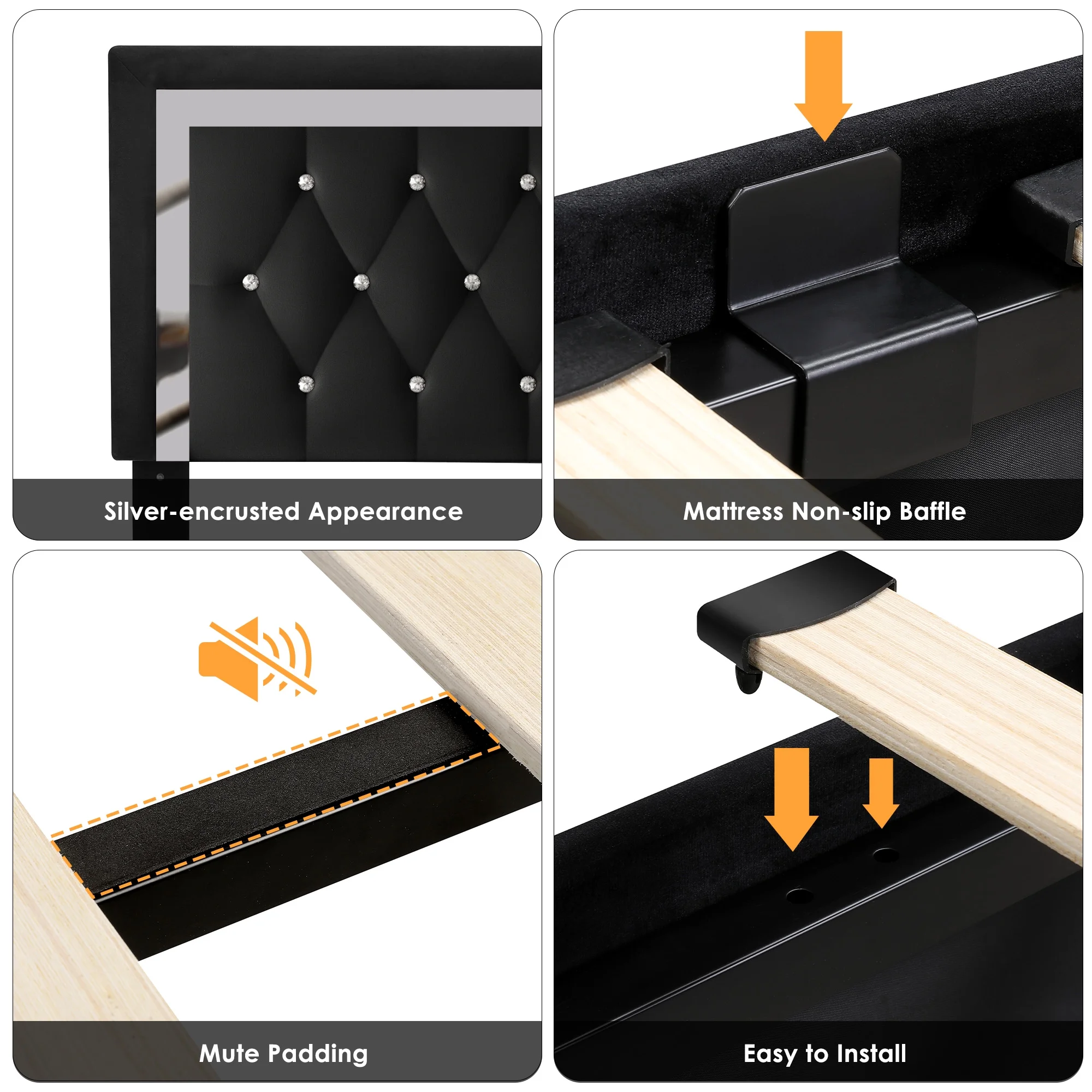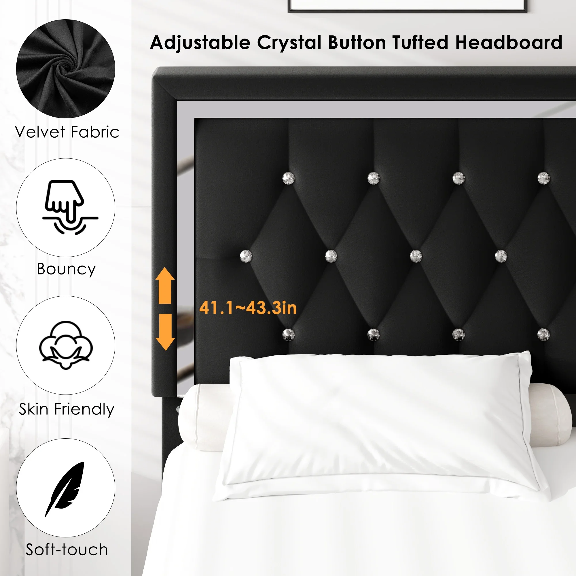 Rest Haven Tufted Velvet Upholstered Headboard, California King, Black
