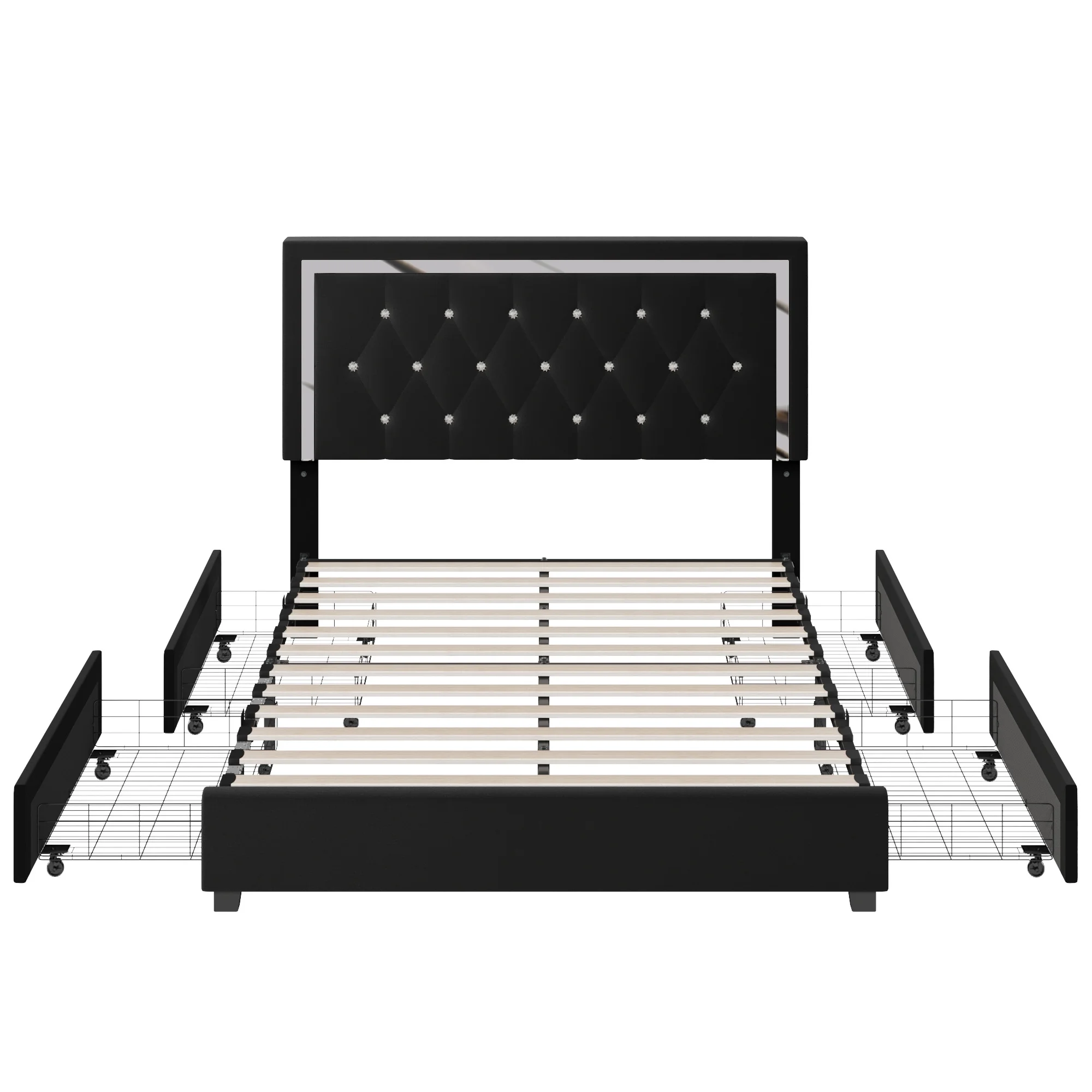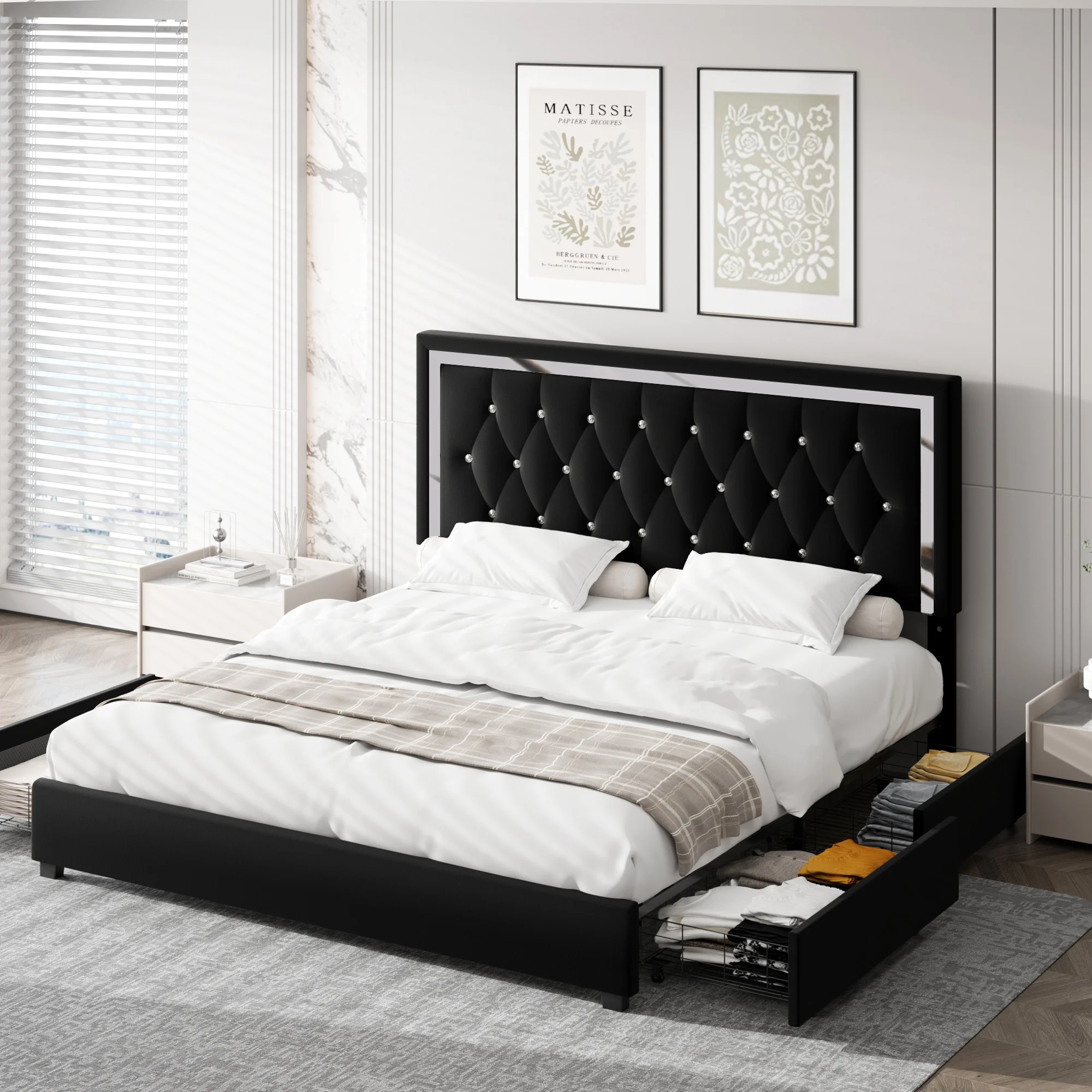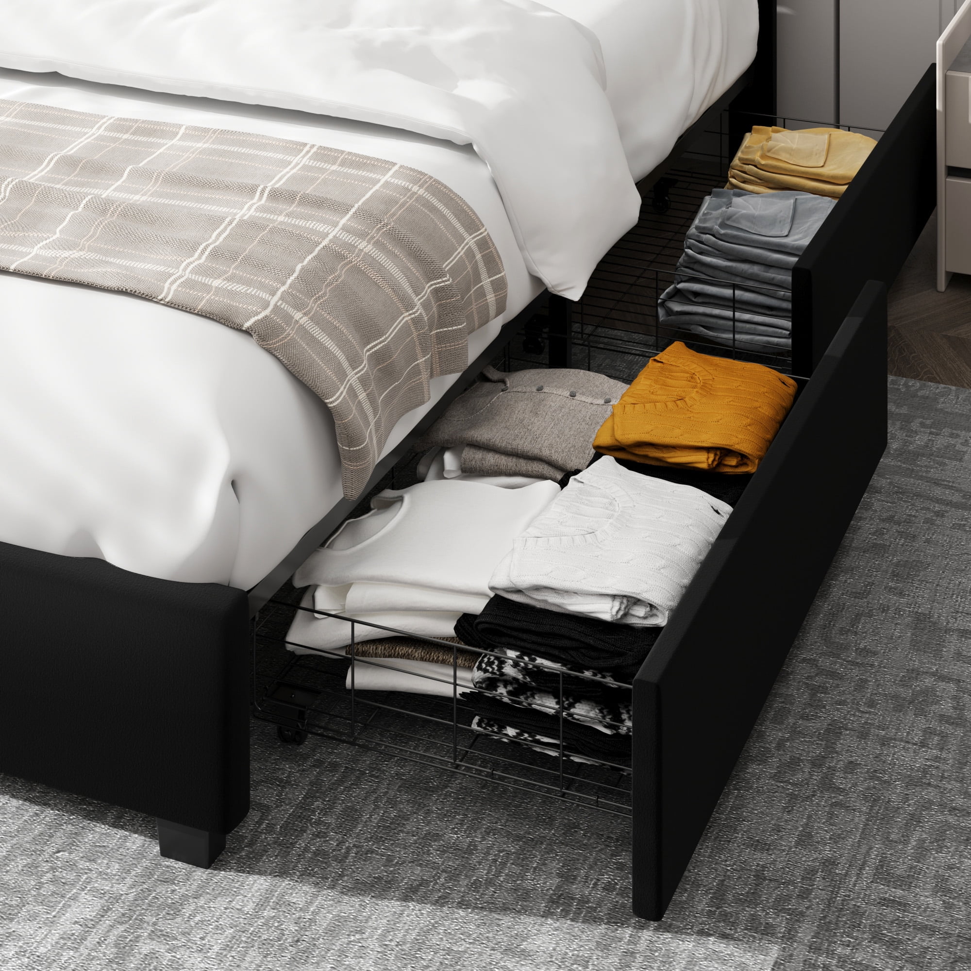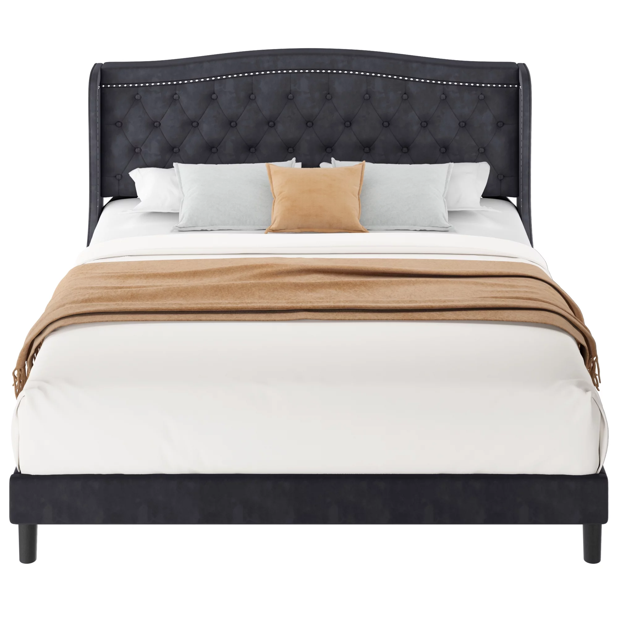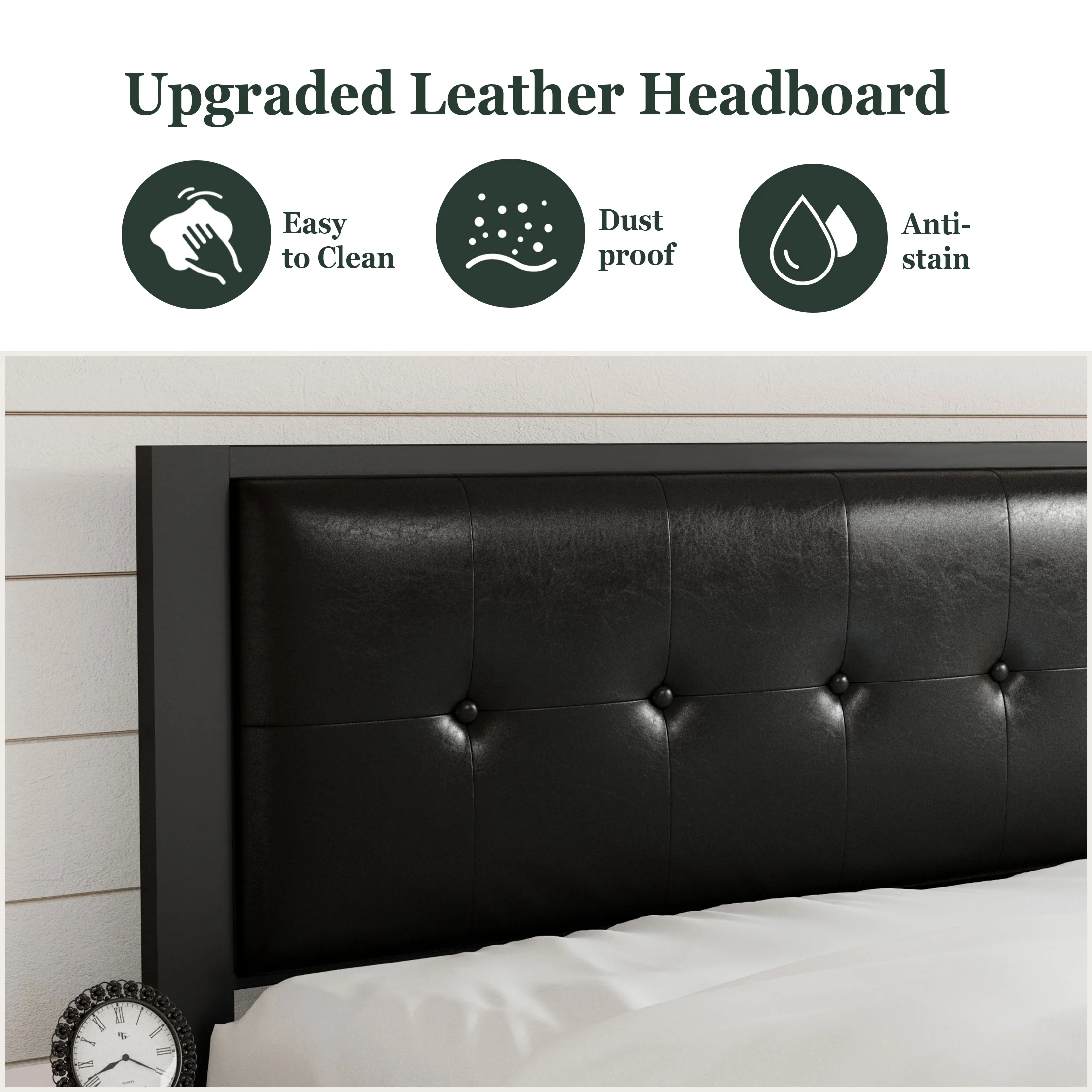 Amolife Full Faux Leather Platform Bed with Button Tufted Headboard and 17 Strong Steel Slats, Black
