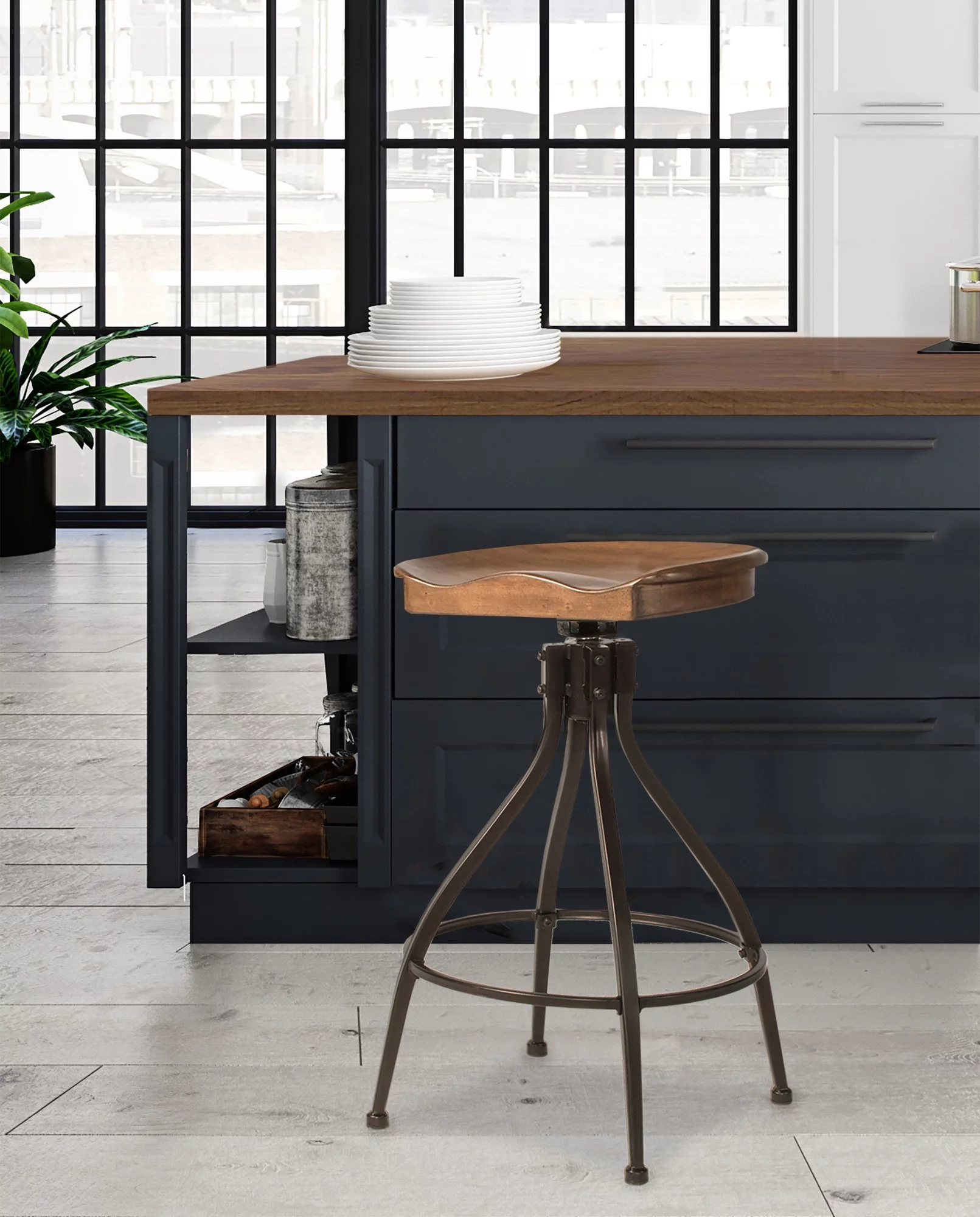 Hillsdale Furniture Worland Wood Tractor Seat Adjustable Height Metal Swivel Bar Stool