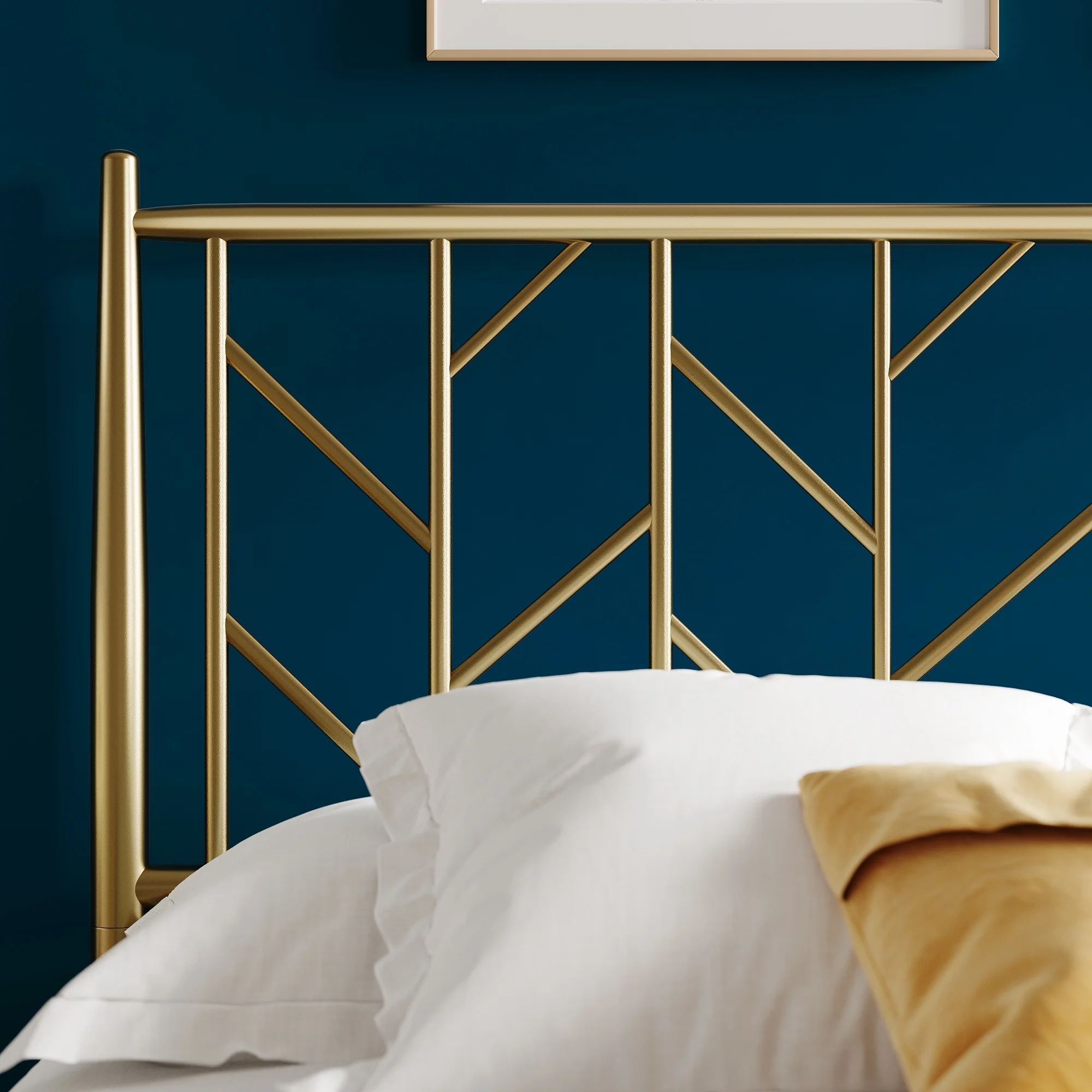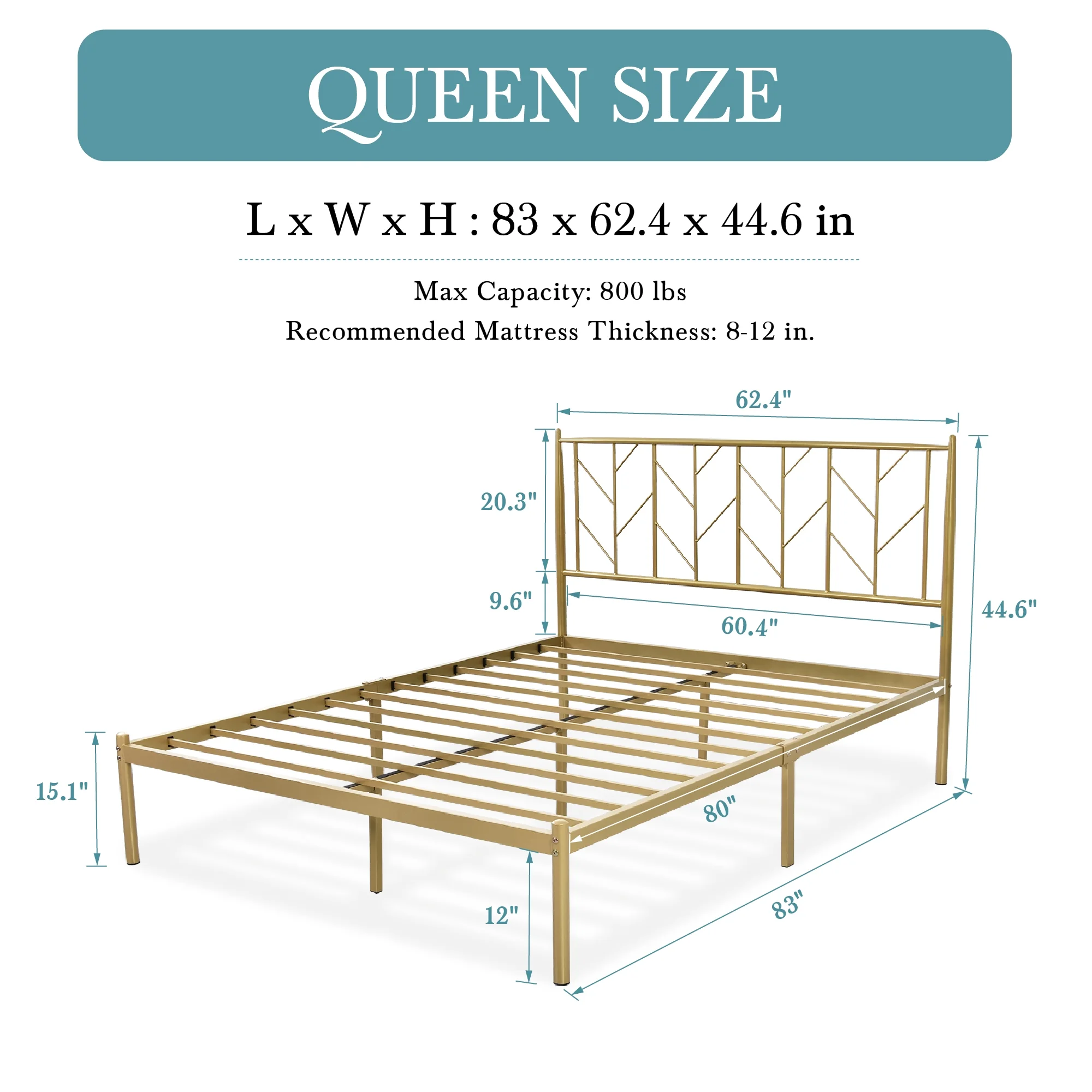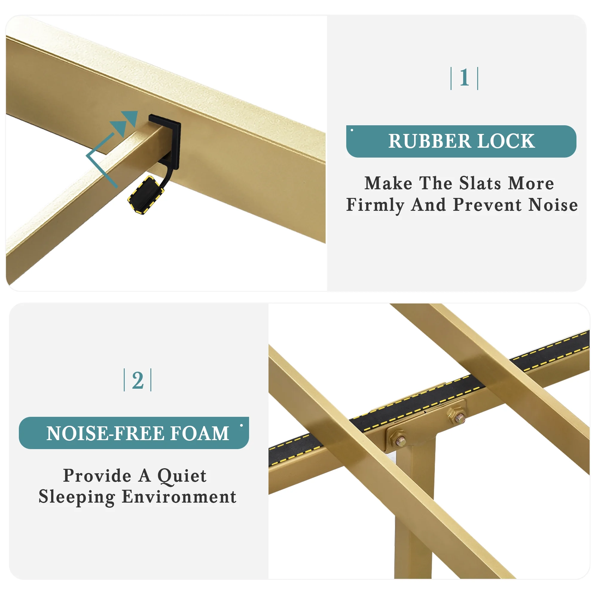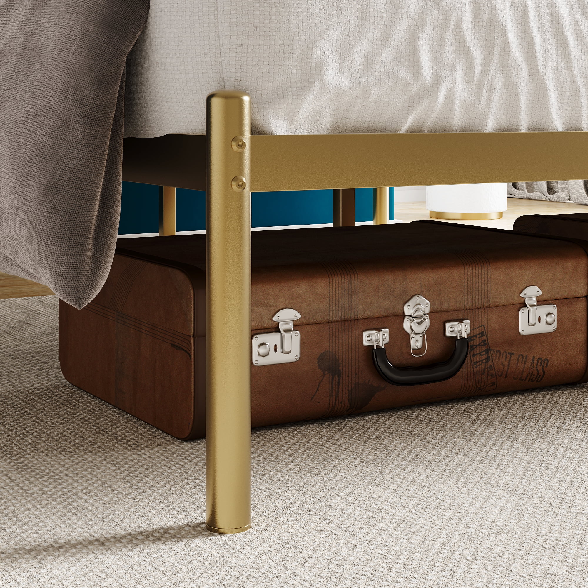 Sha Cerlin Gold Queen Size Metal Platform Bed Frame with Victorian Vintage Headboard & Underbed Storage, Adult
