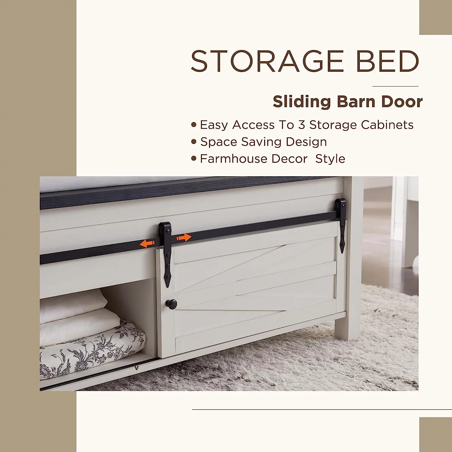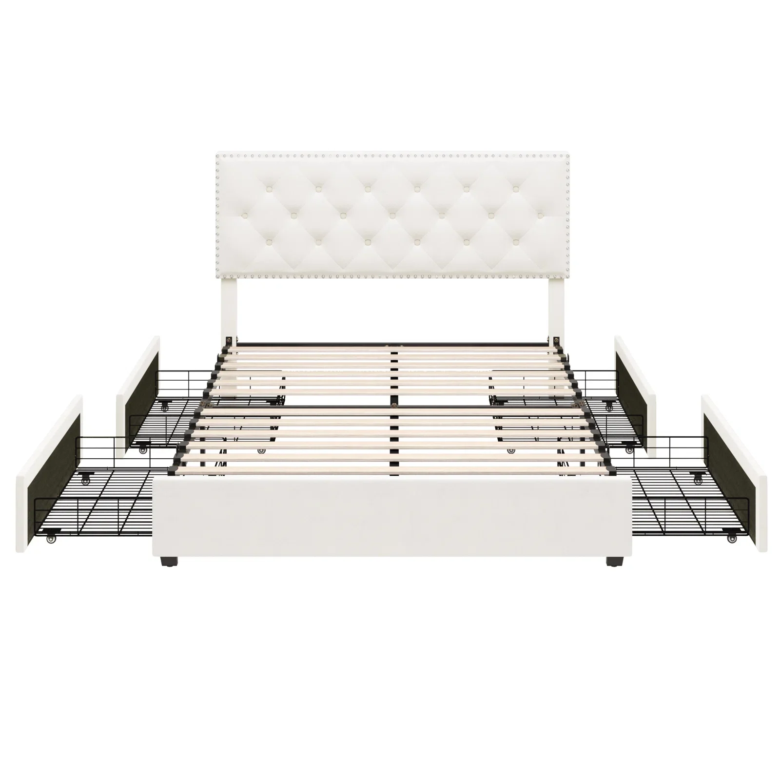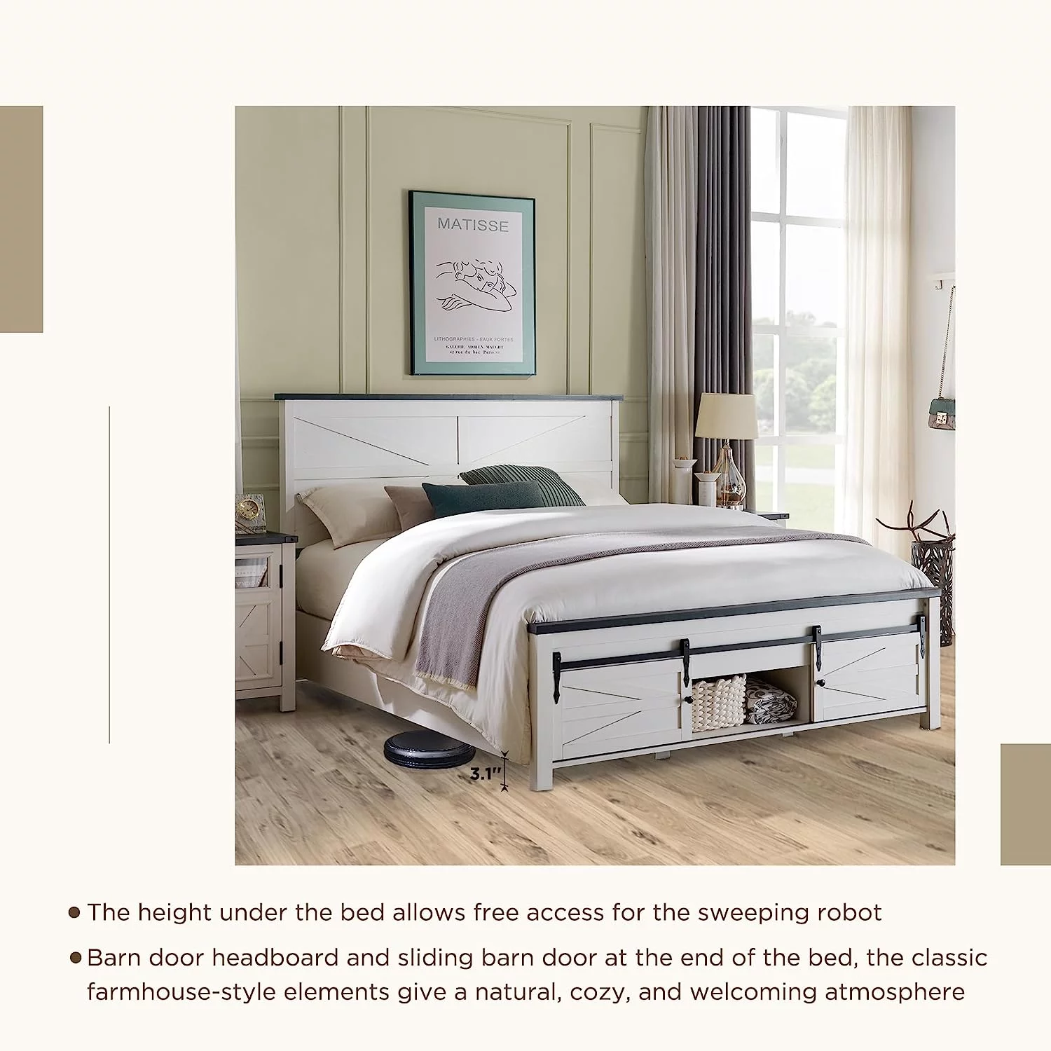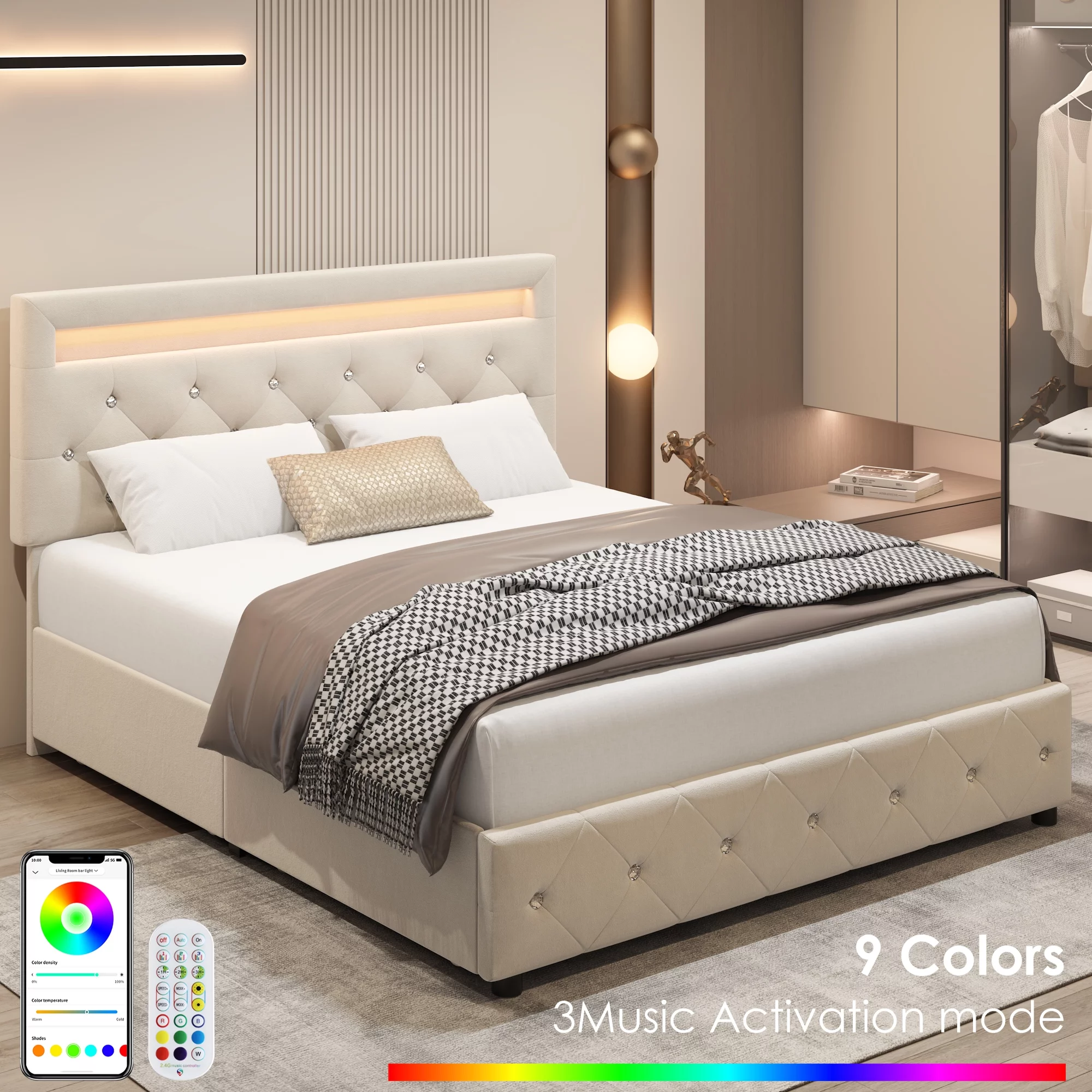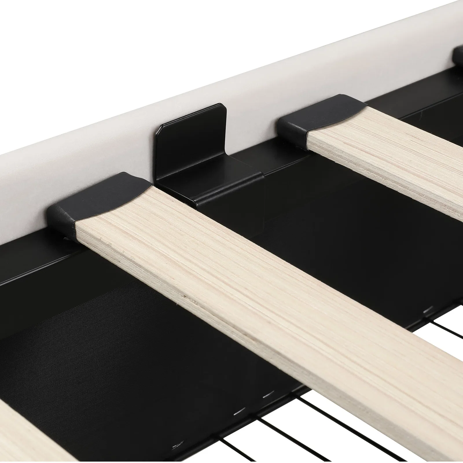 Dextrus Queen Size Bed Frame with Charging Station Footboard Metal Slats, and Storage Headboard, Beige