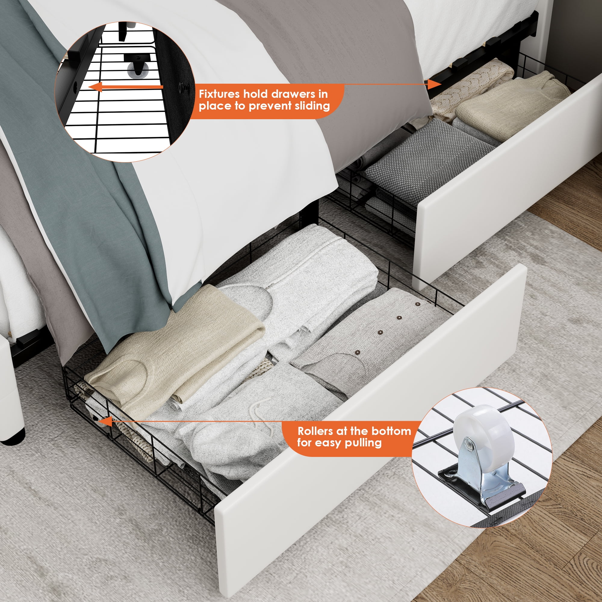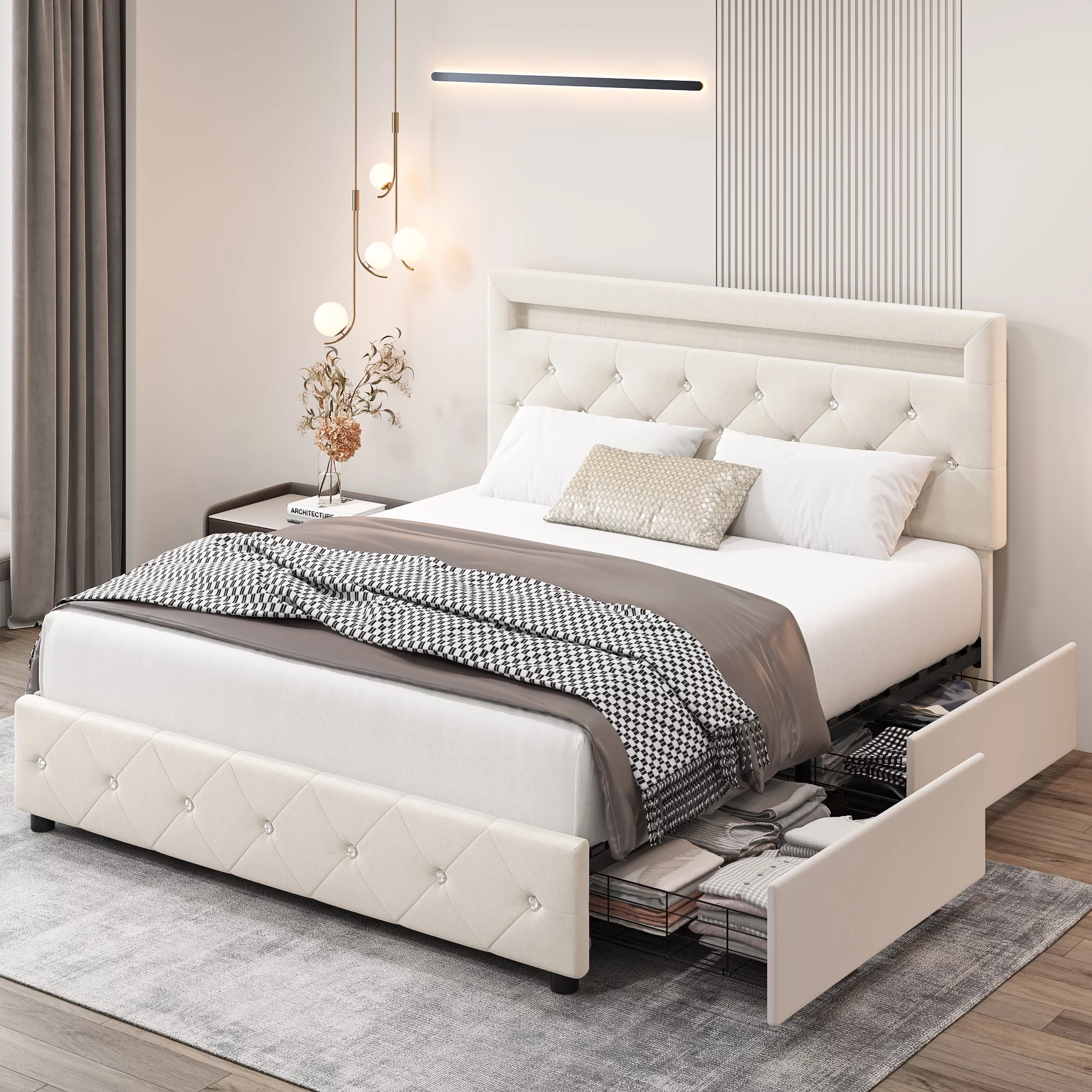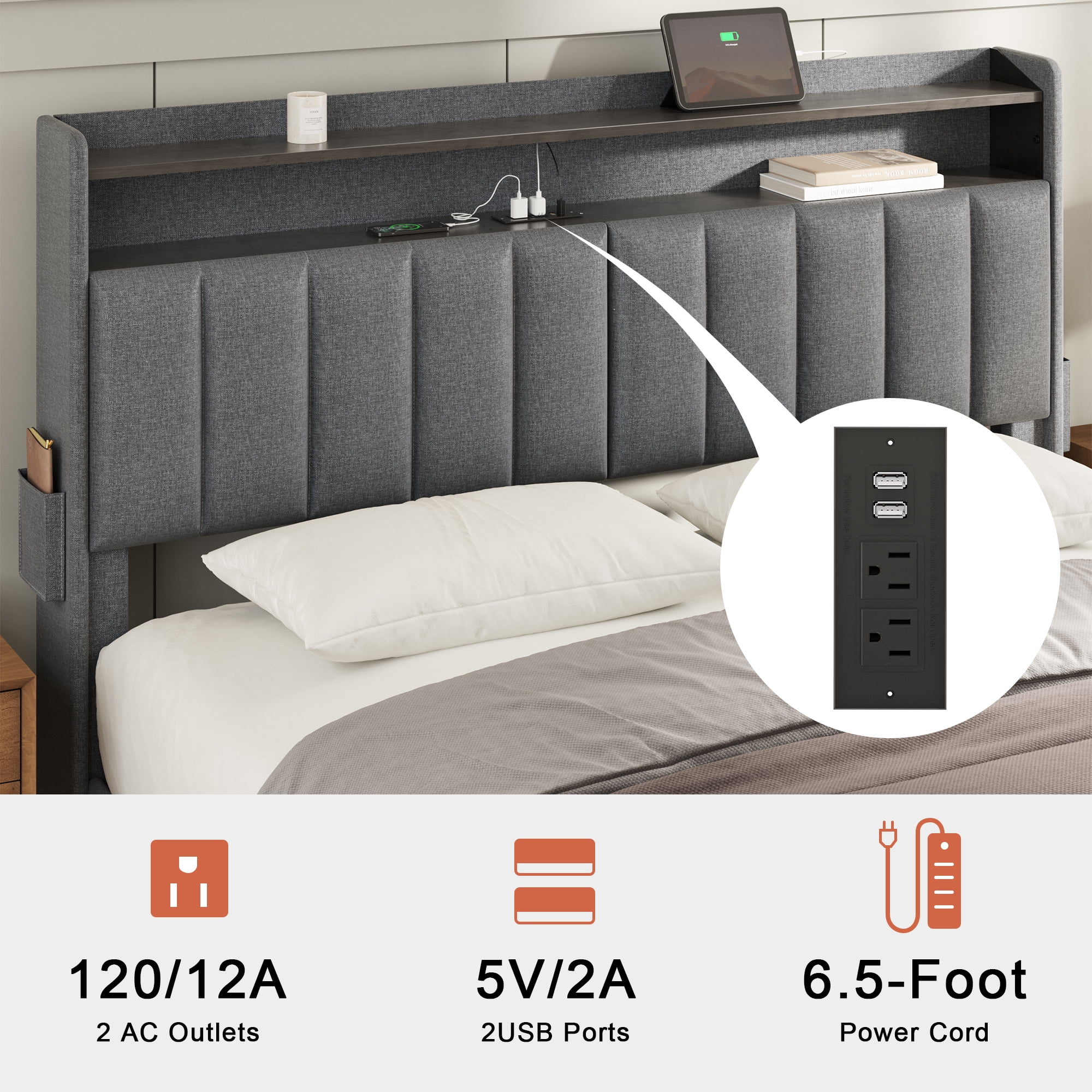 ANCTOR Queen Bed Frame with Upholstered Storage Headboard for Adult, 3 Drawers, Charging Station