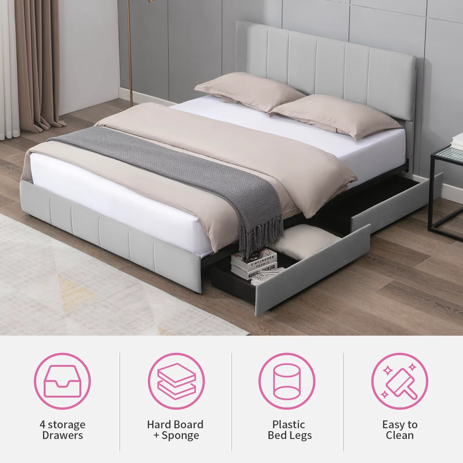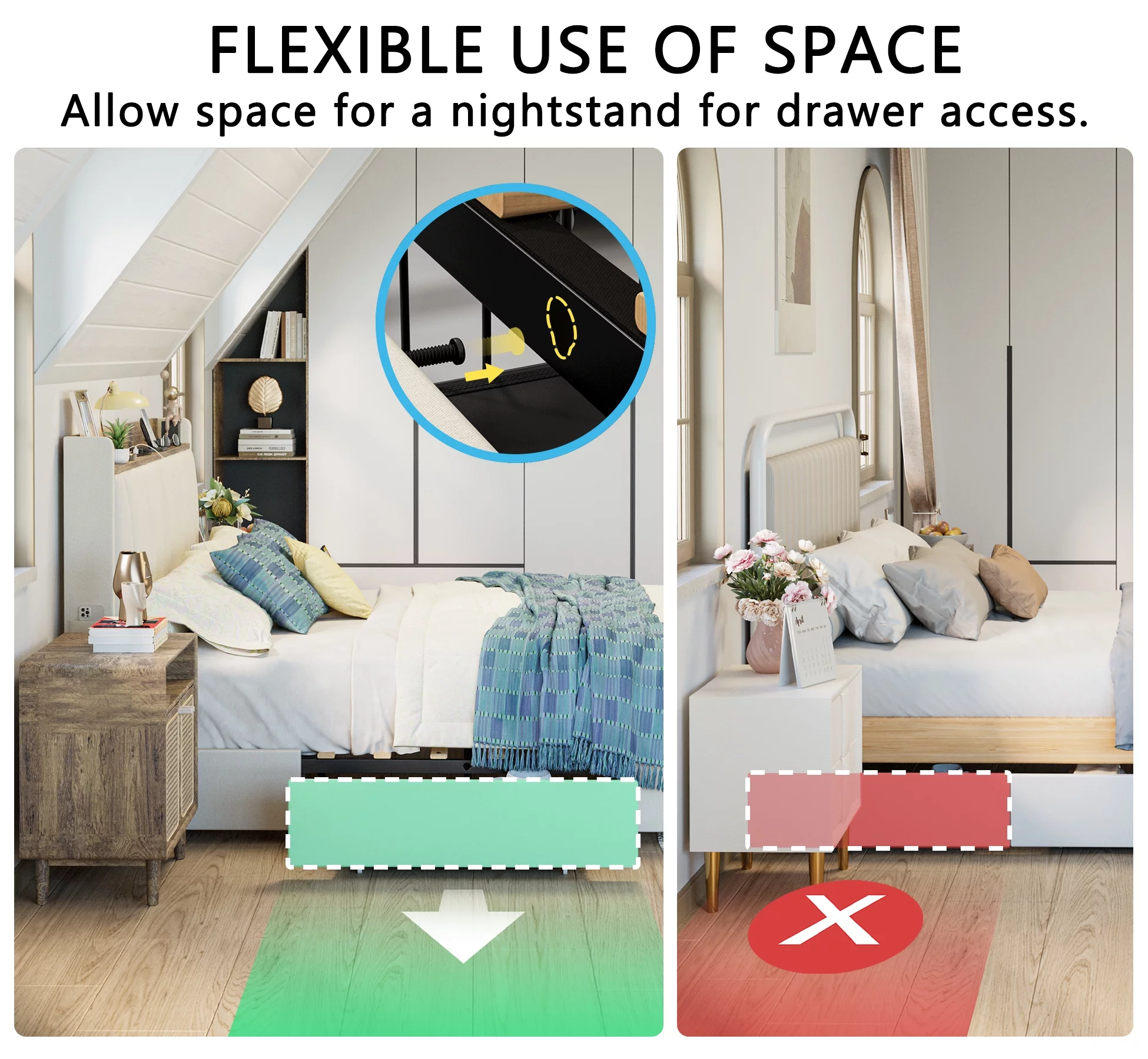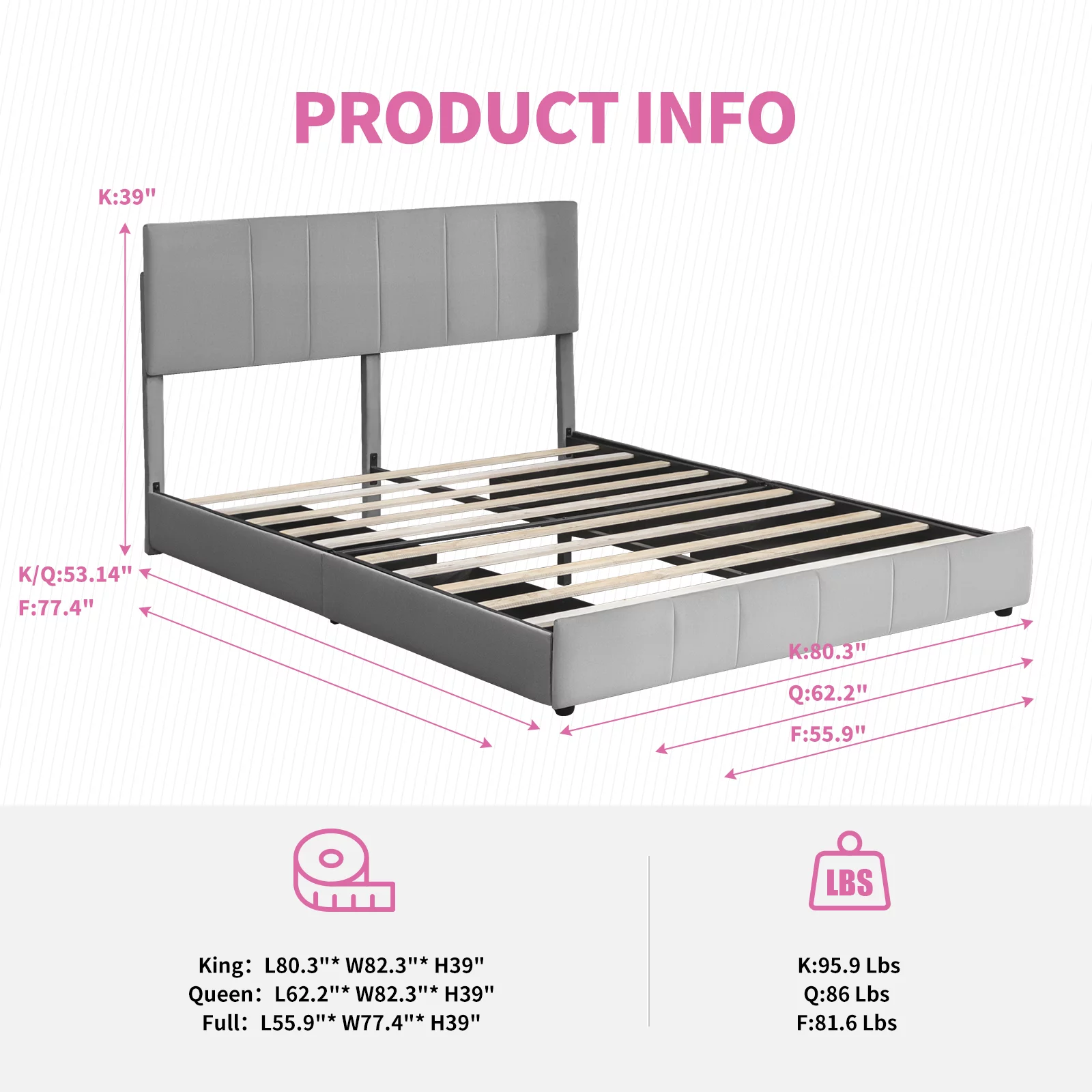 ANCTOR Queen Bed Frame with Upholstered Storage Headboard for Adult, 3 Drawers, Charging Station