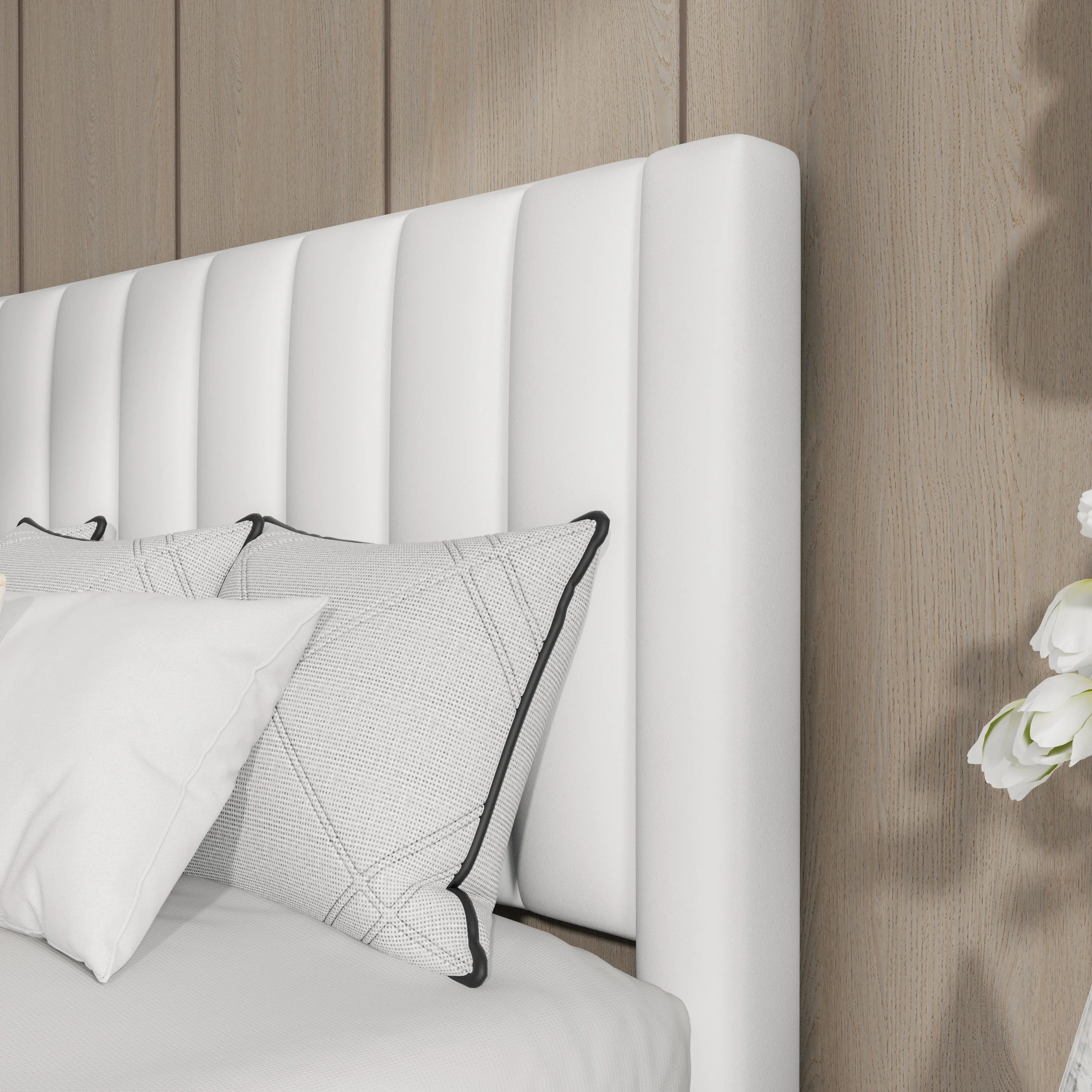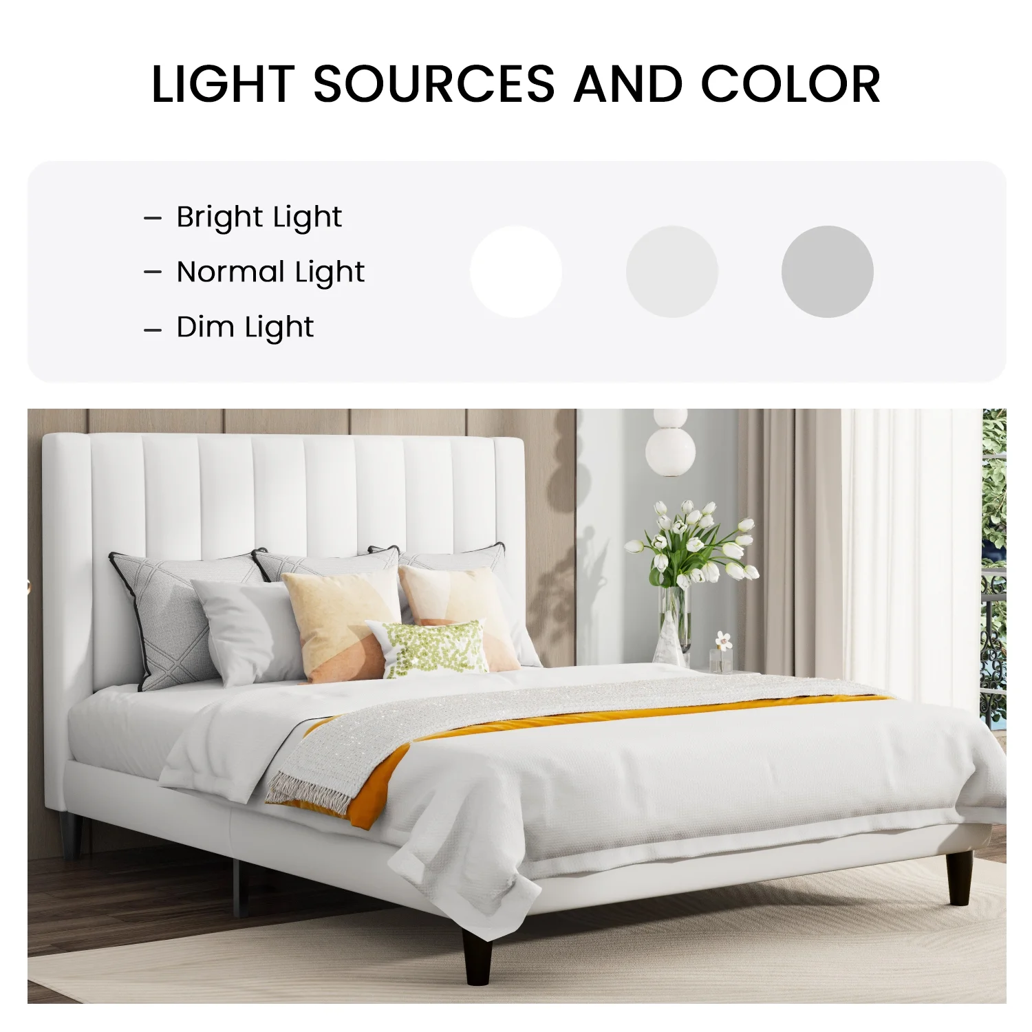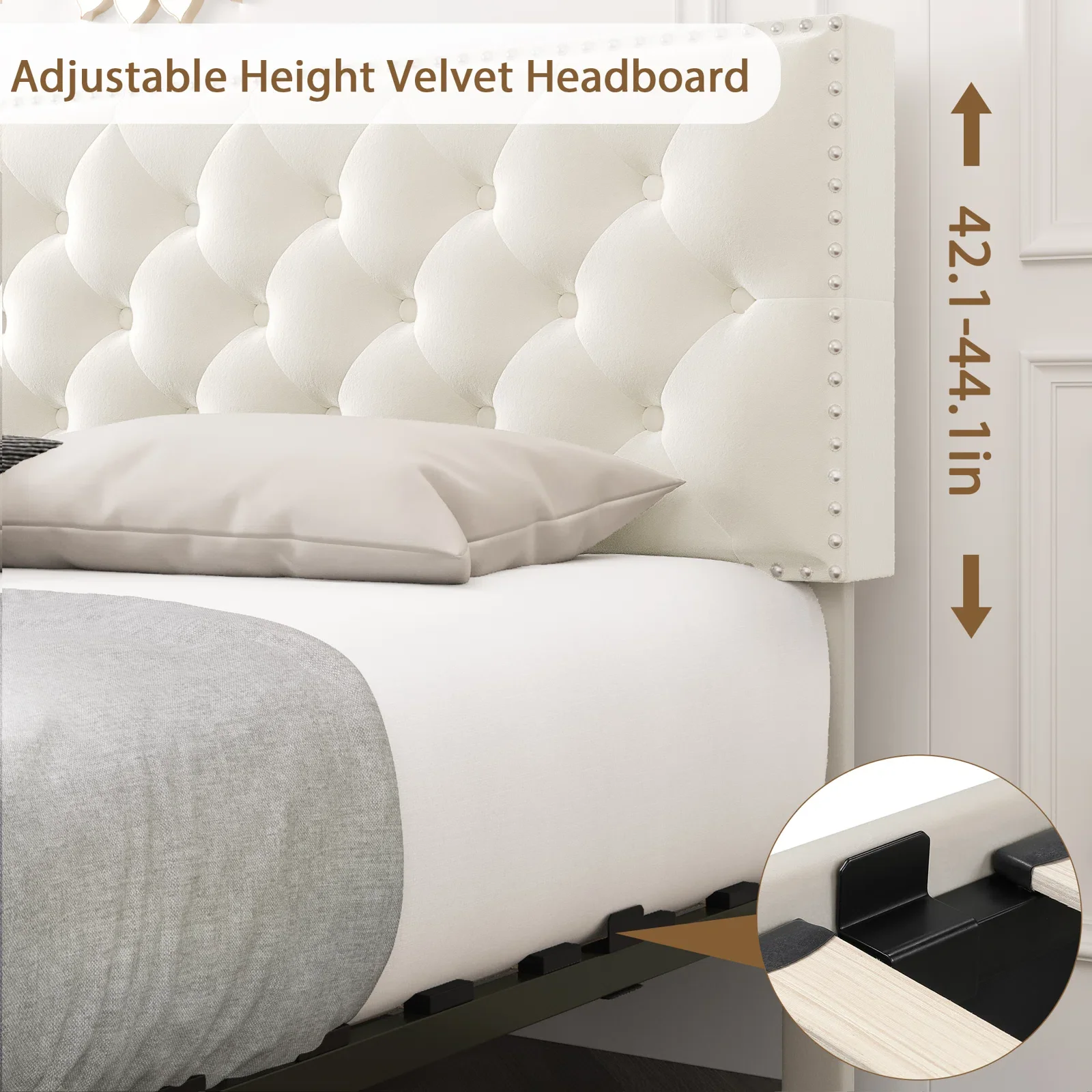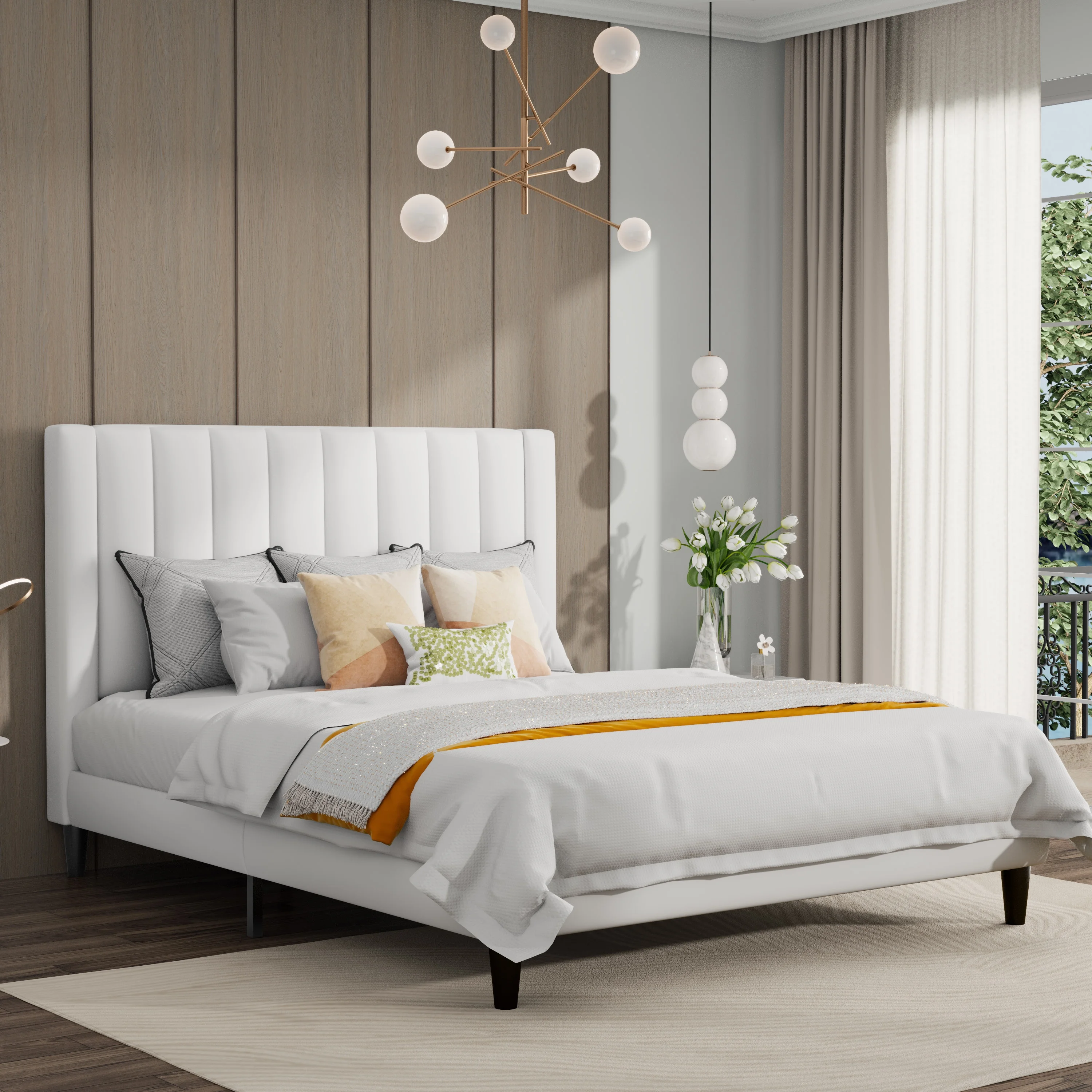 SHA CERLIN White Full Size Platform Bed Frame with Velvet Channel Headboard, Adult