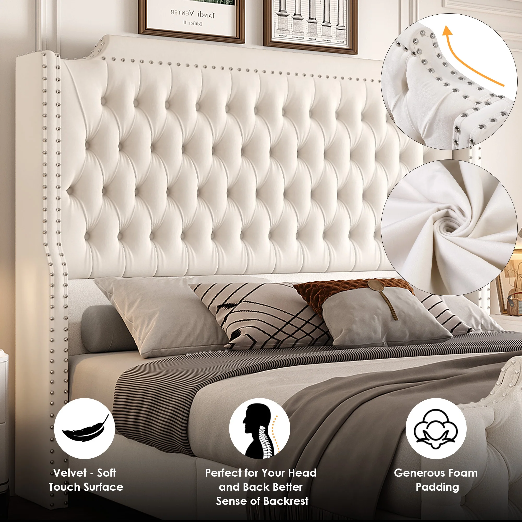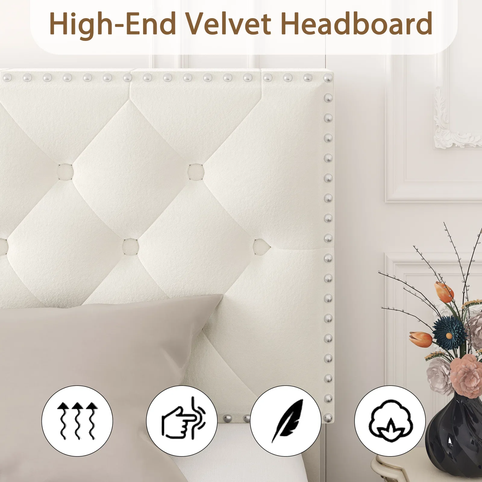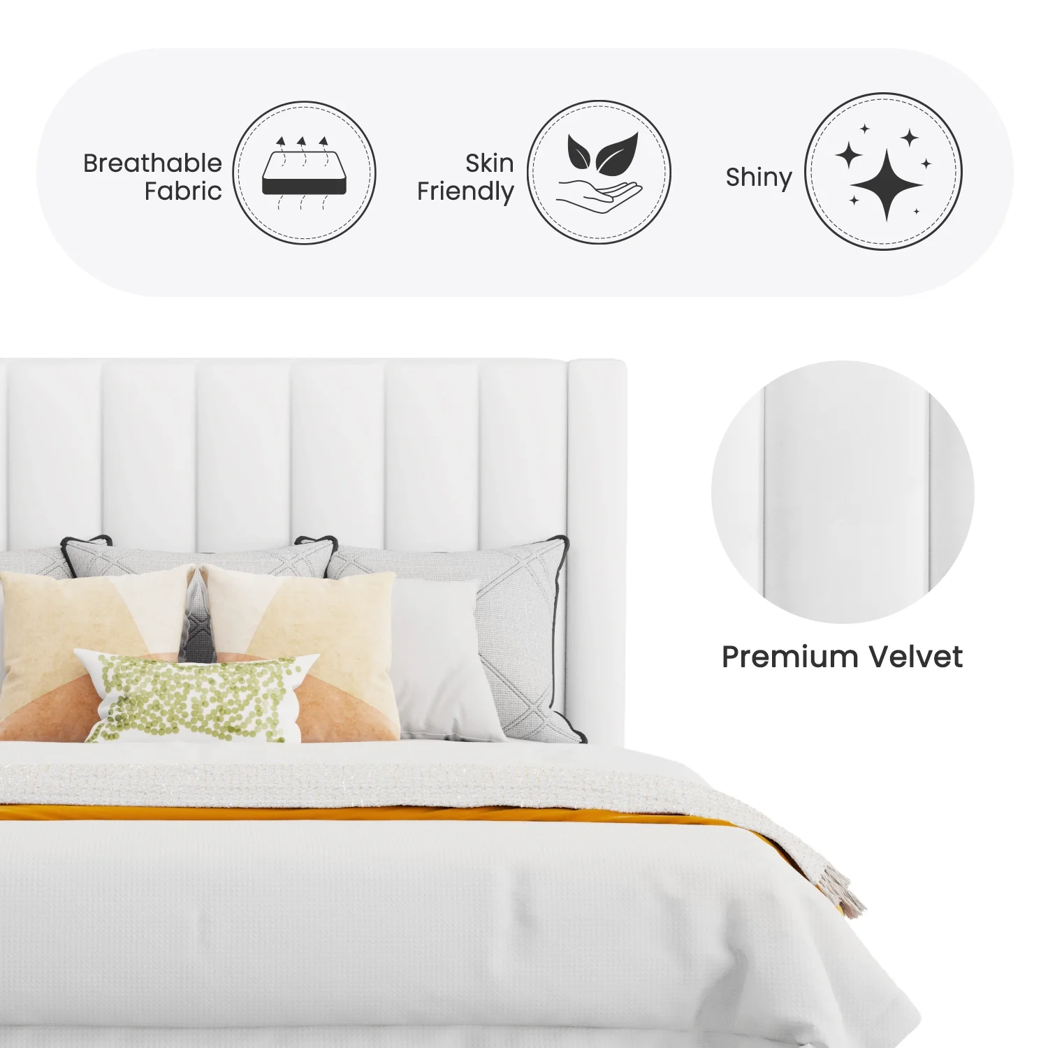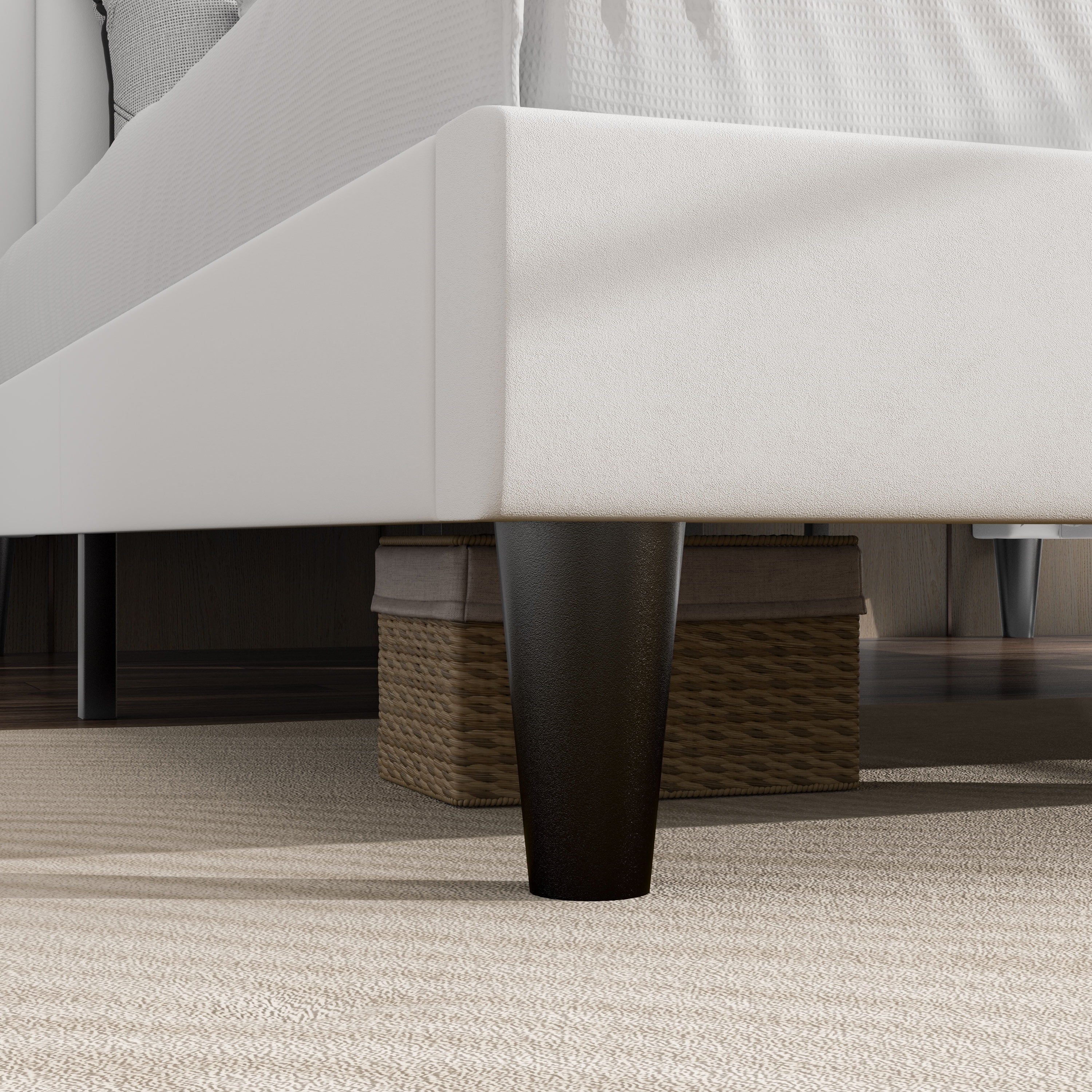 SHA CERLIN White Full Size Platform Bed Frame with Velvet Channel Headboard, Adult