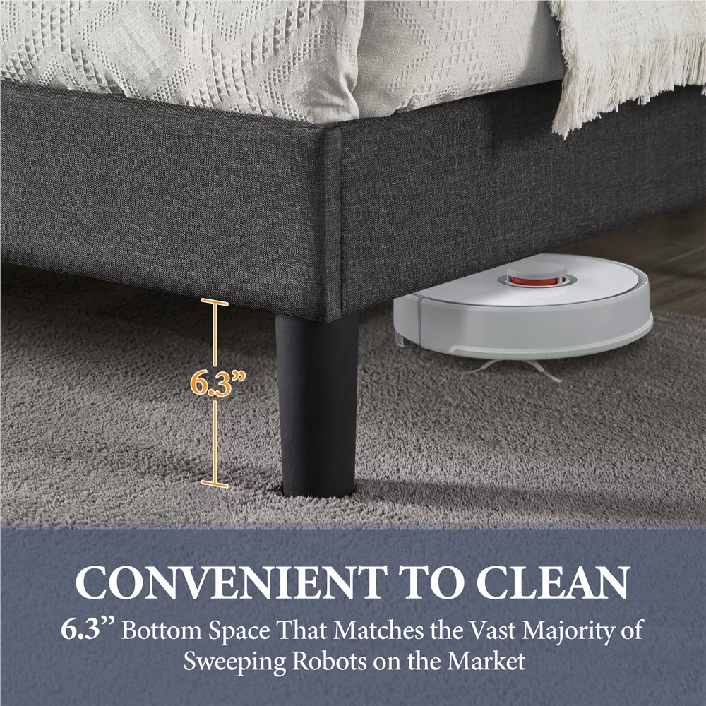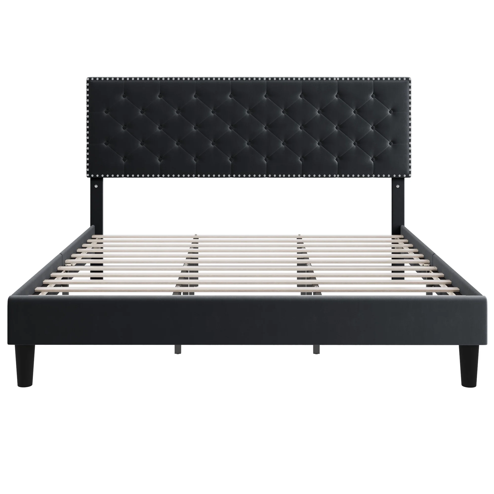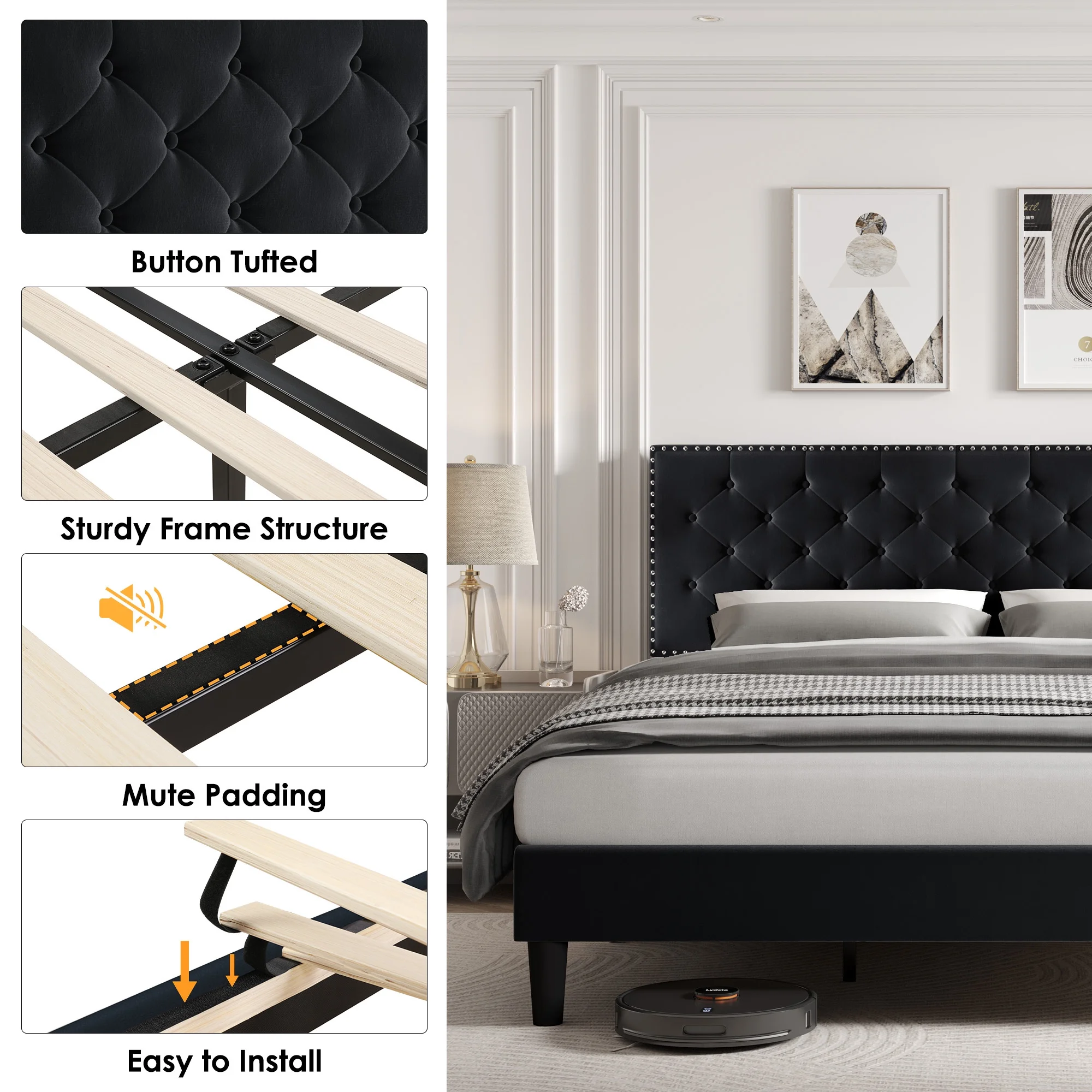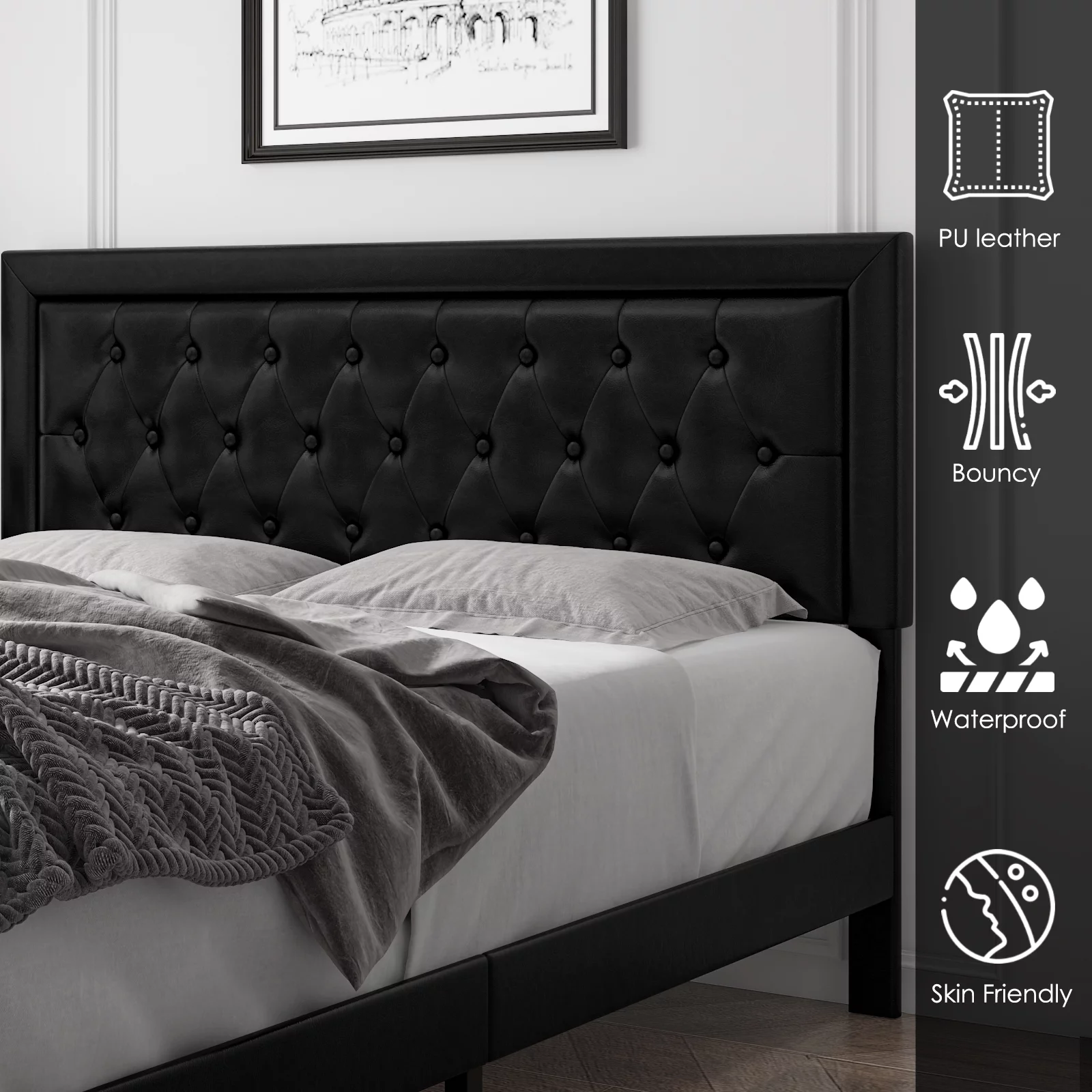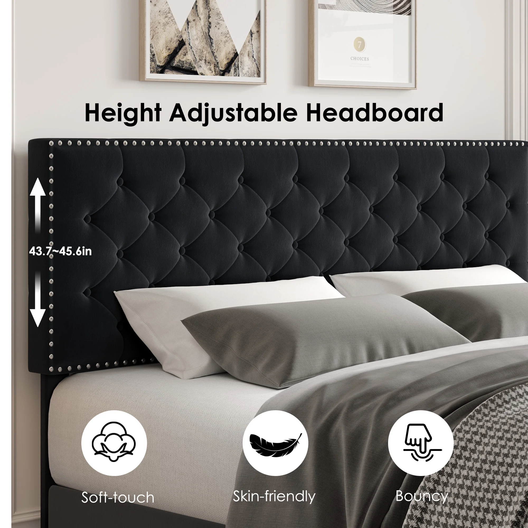 Homfa King Size Bed, Modern Upholstered Platform Bed Frame with Adjustable Headboard for Bedroom, Black