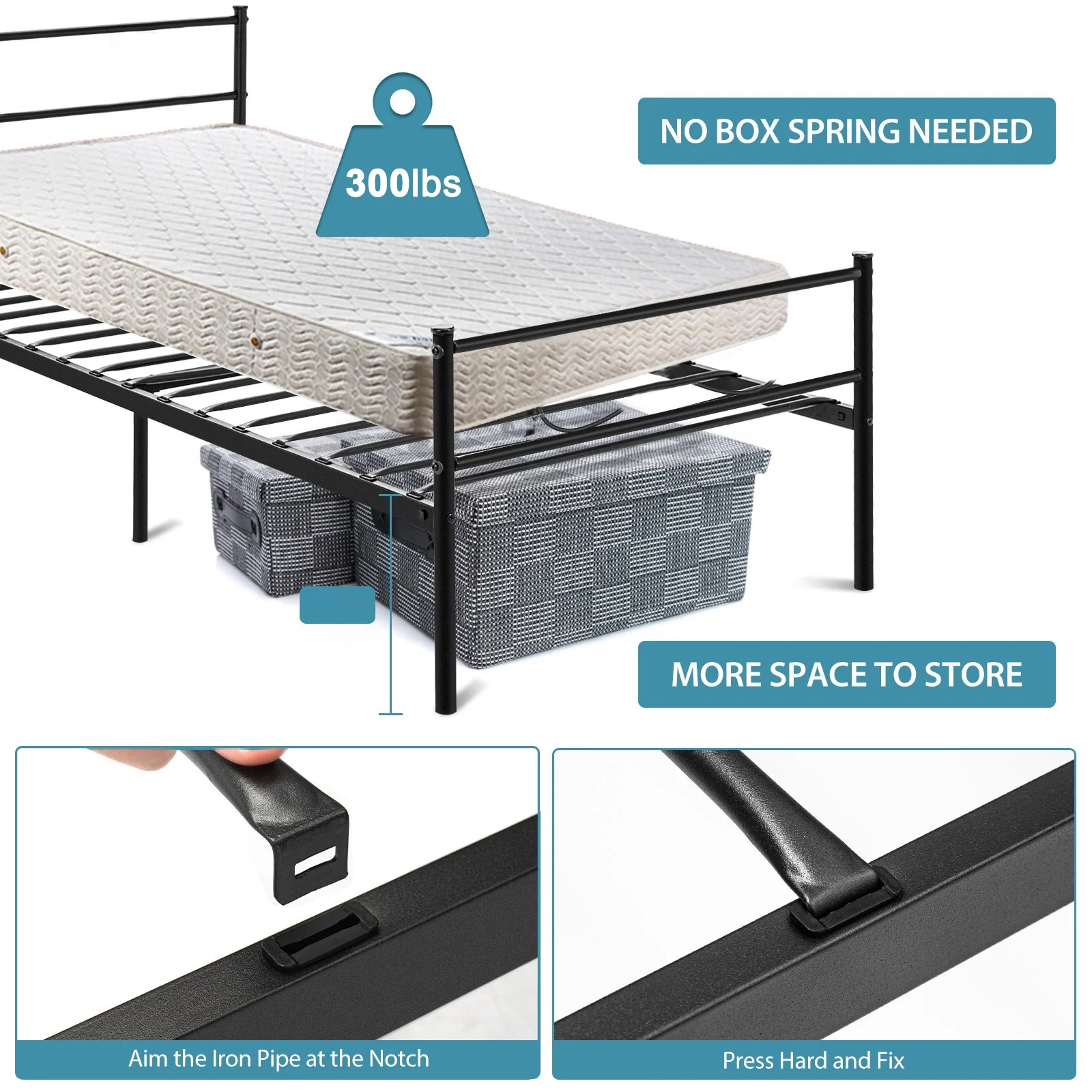 Yaheetech Classic Metal Platform Bed Frame with Headboard and Footboard,Twin Size,Black