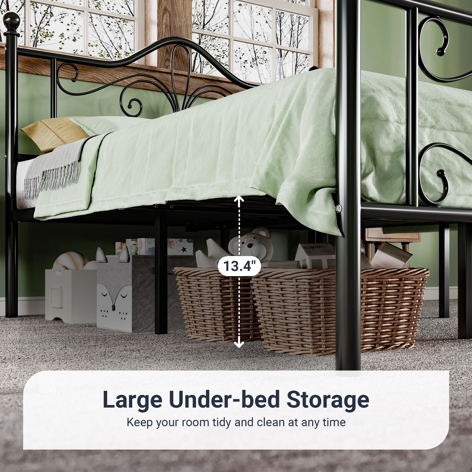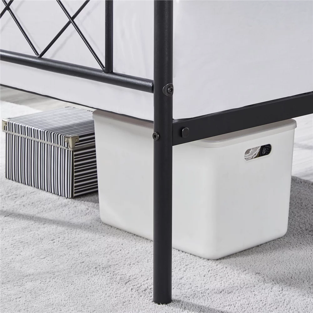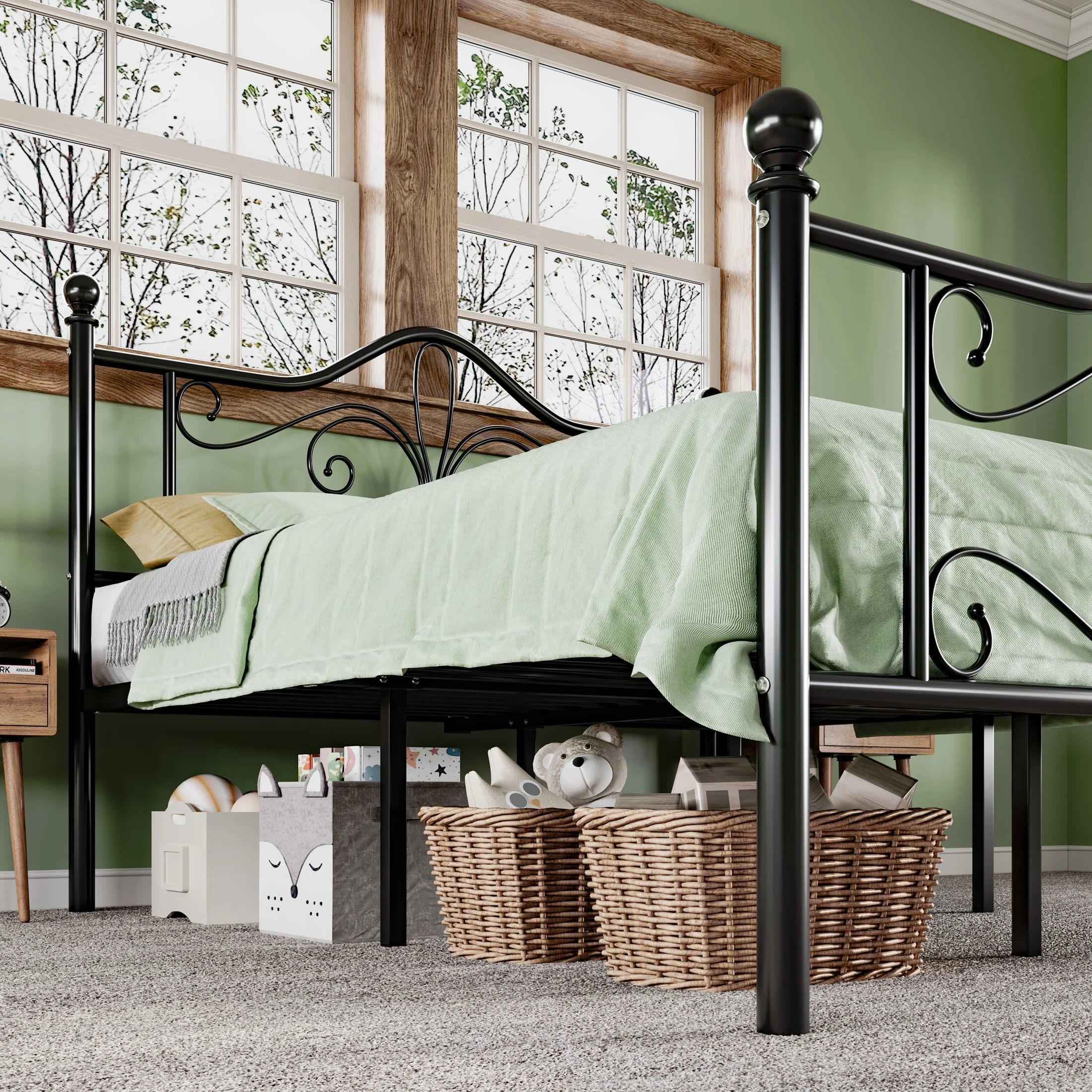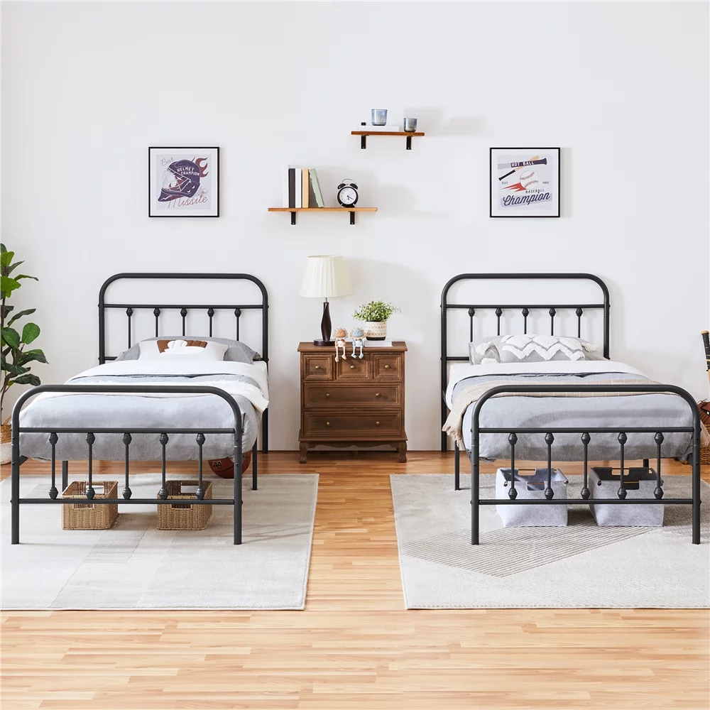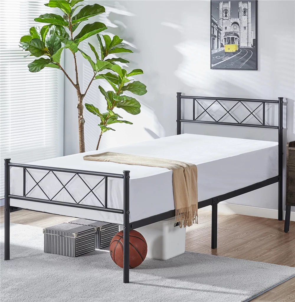 Yaheetech Black Metal Slat Base Twin Bed with X Design Headboard & Footboard