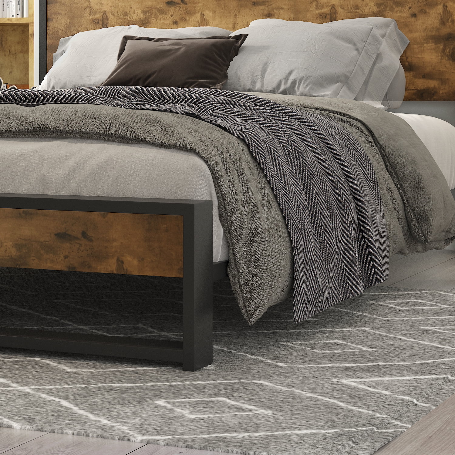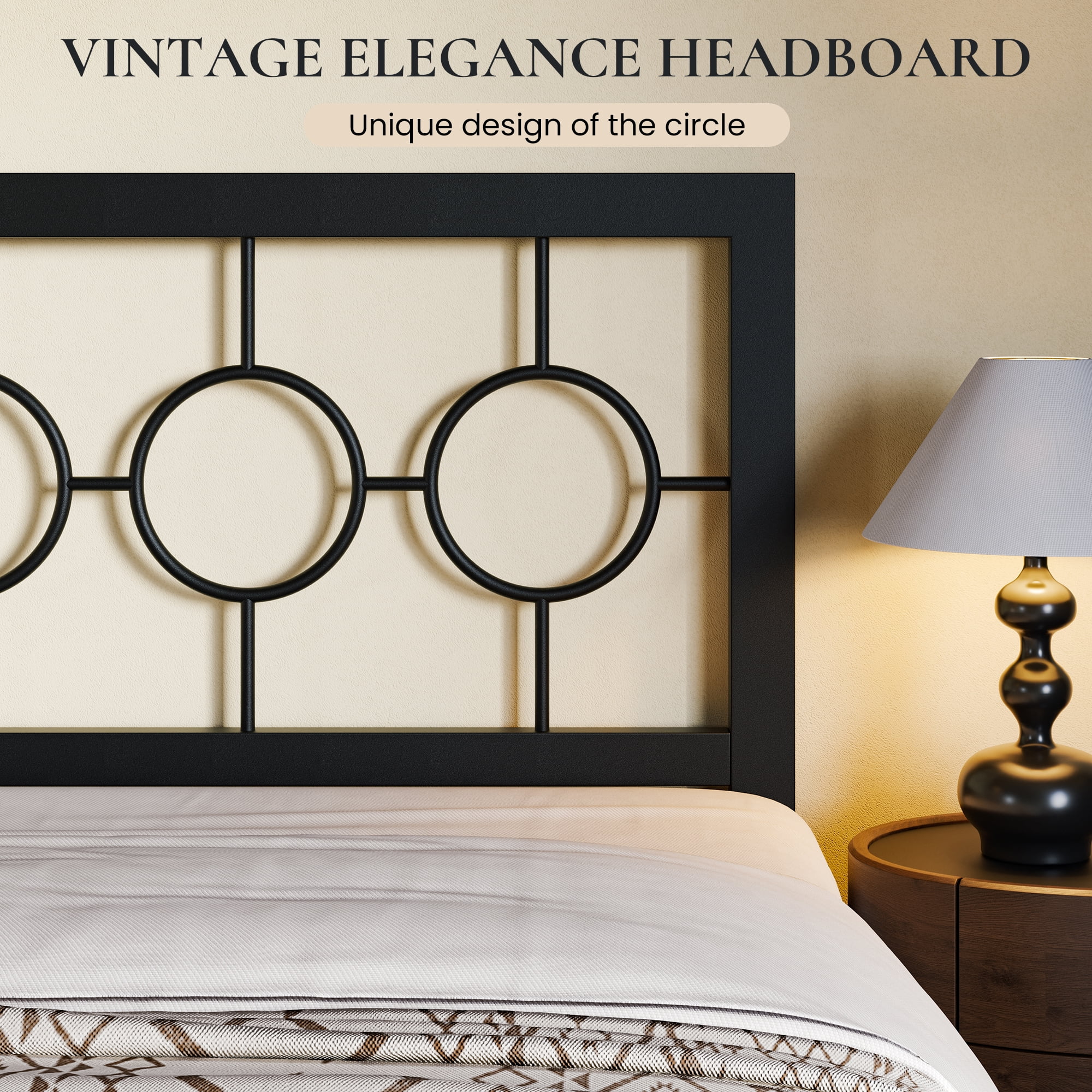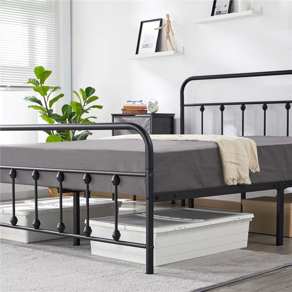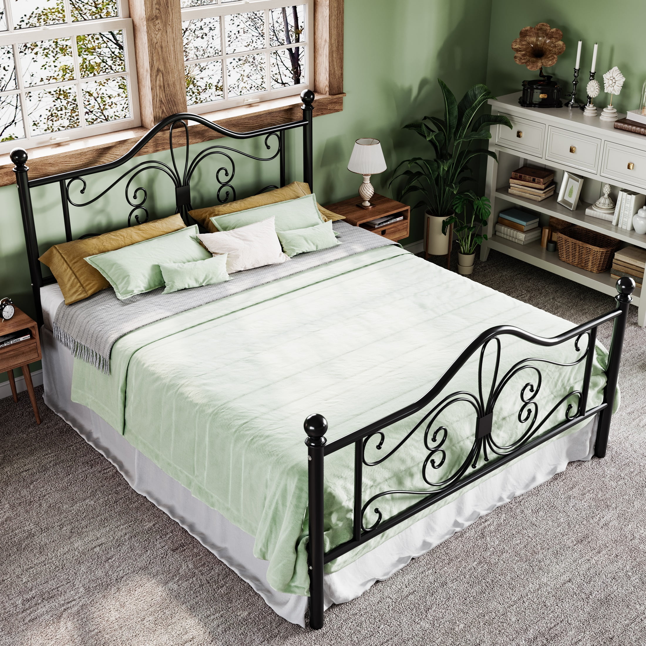Sha Cerlin Black Queen Size Metal Platform Bed Frame with Vintage Headboard & Footboard, Adult