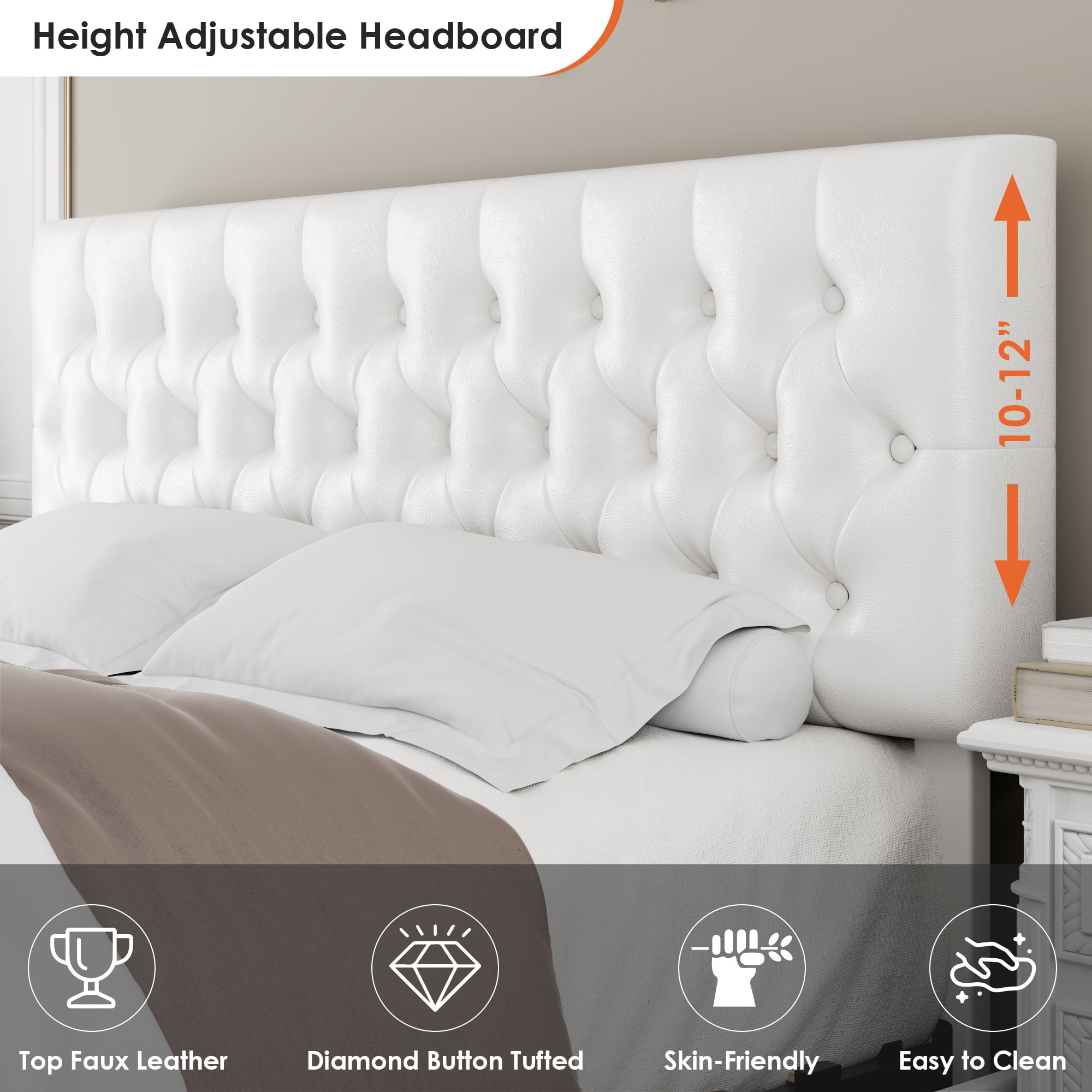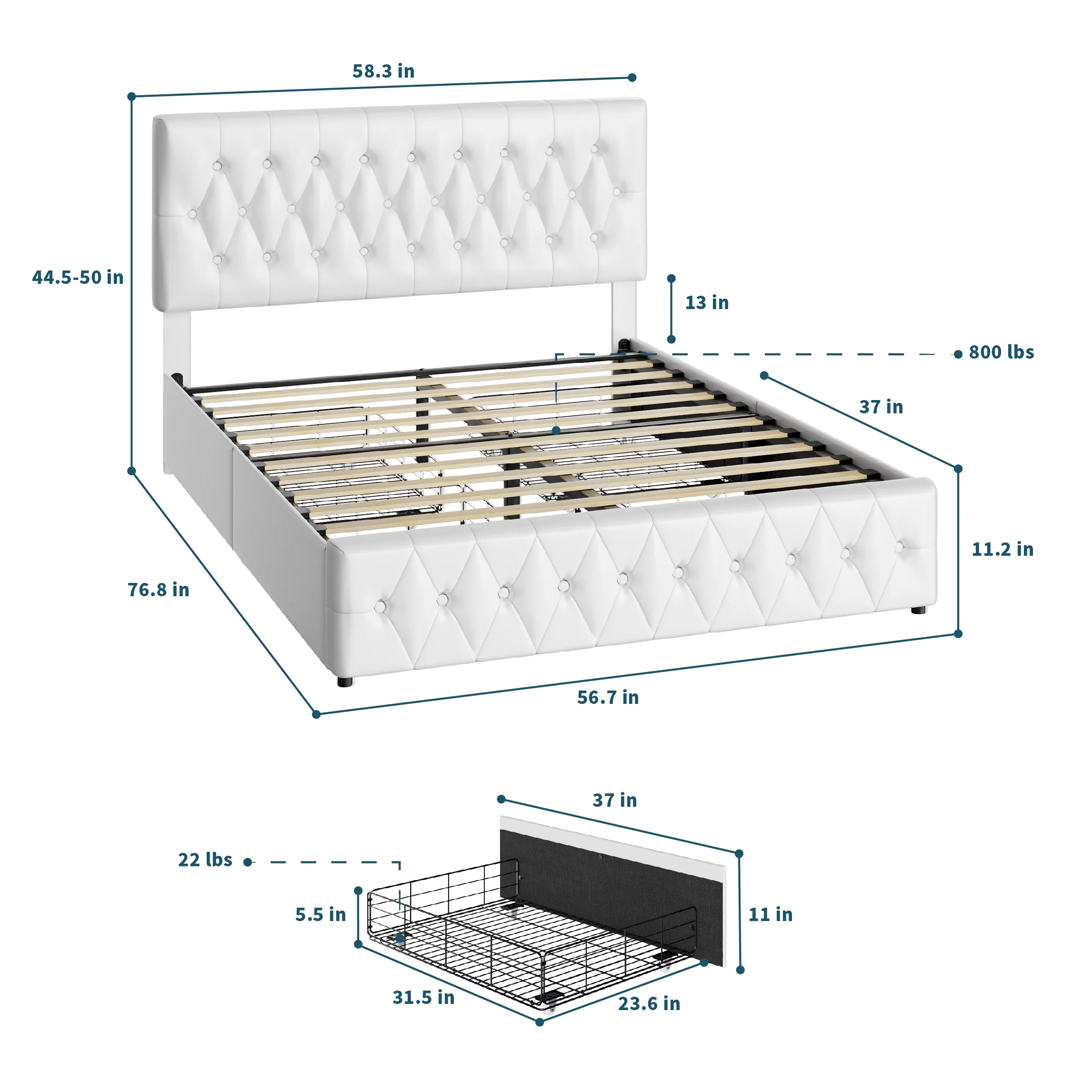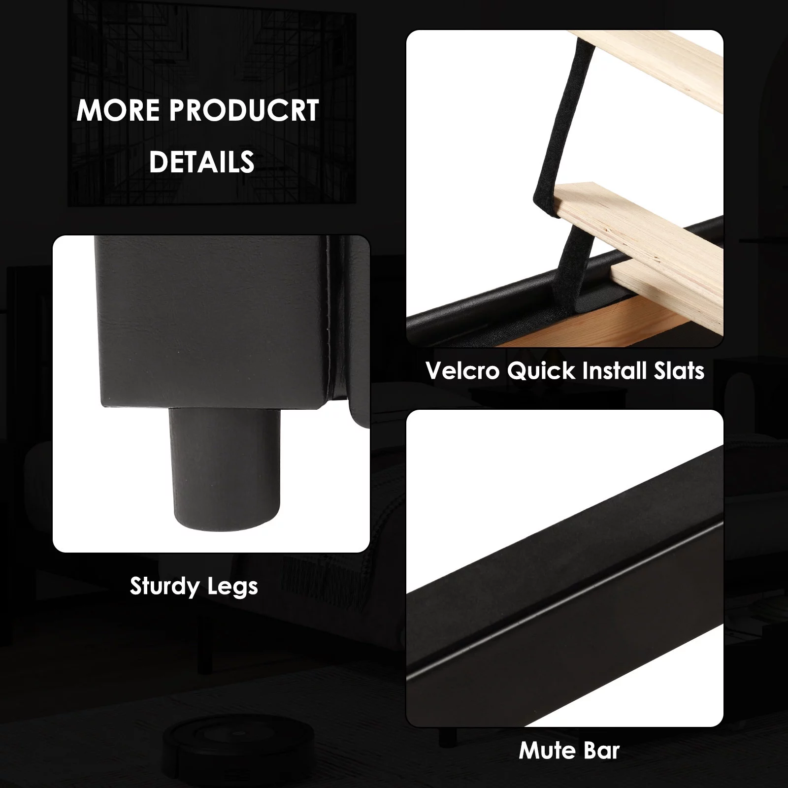 Homfa Queen Size 2 Drawers Bed Frame, PU Leather Upholstered Platform Bed with Adjustable Button Headboard, Black