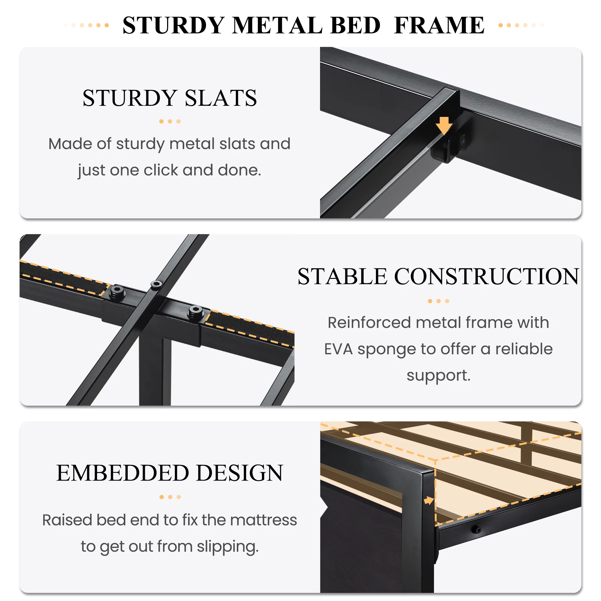 BENTISM Full Size Bed Frame 14 inch Metal Bed Frame Platform 1500 lbs Noise Free