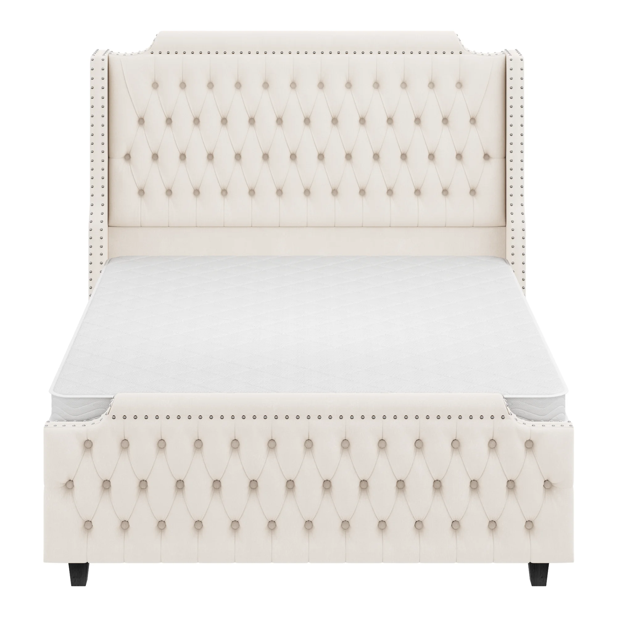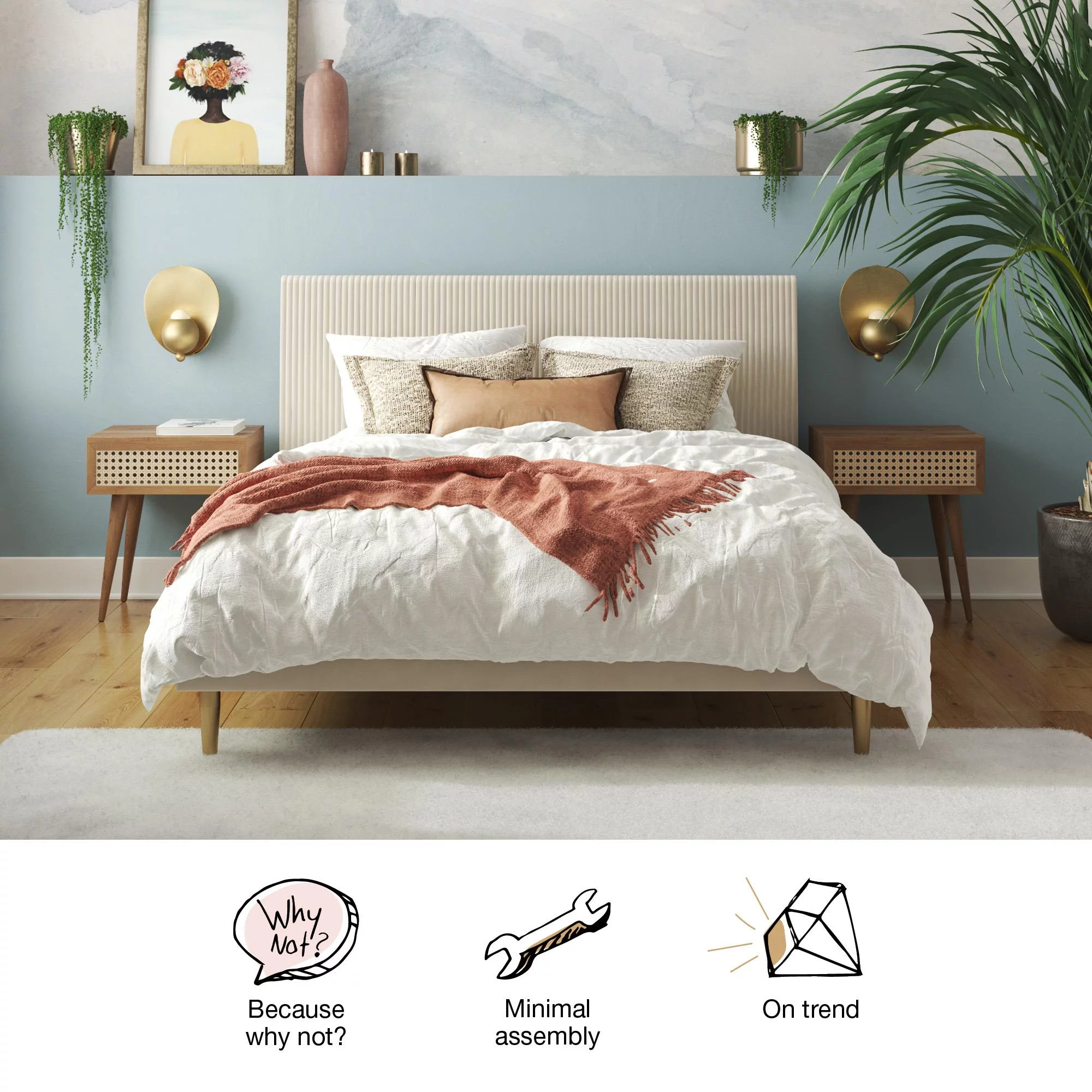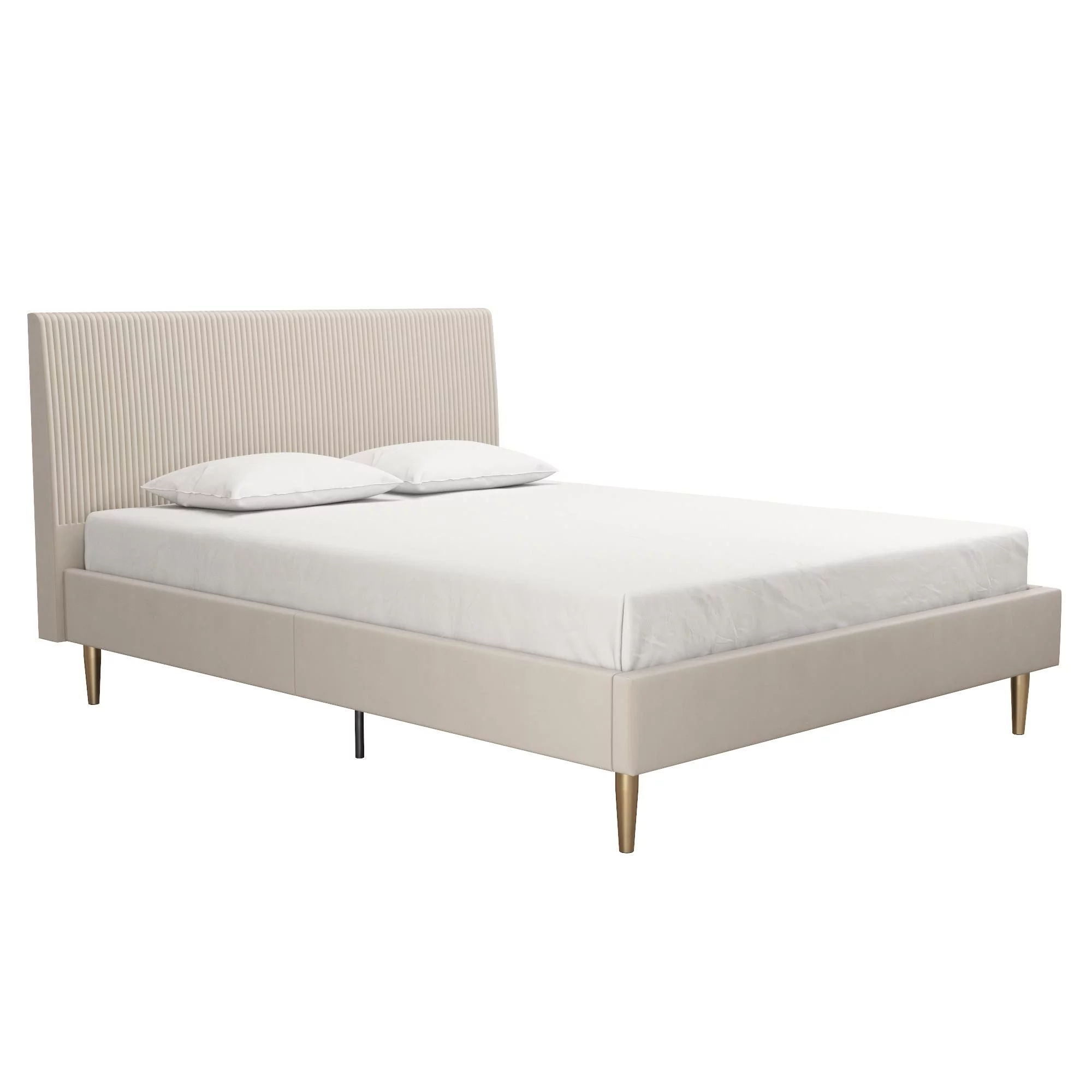 Mr. Kate Daphne Upholstered Bed with Headboard and Modern Platform Frame, Full, Ivory Velvet