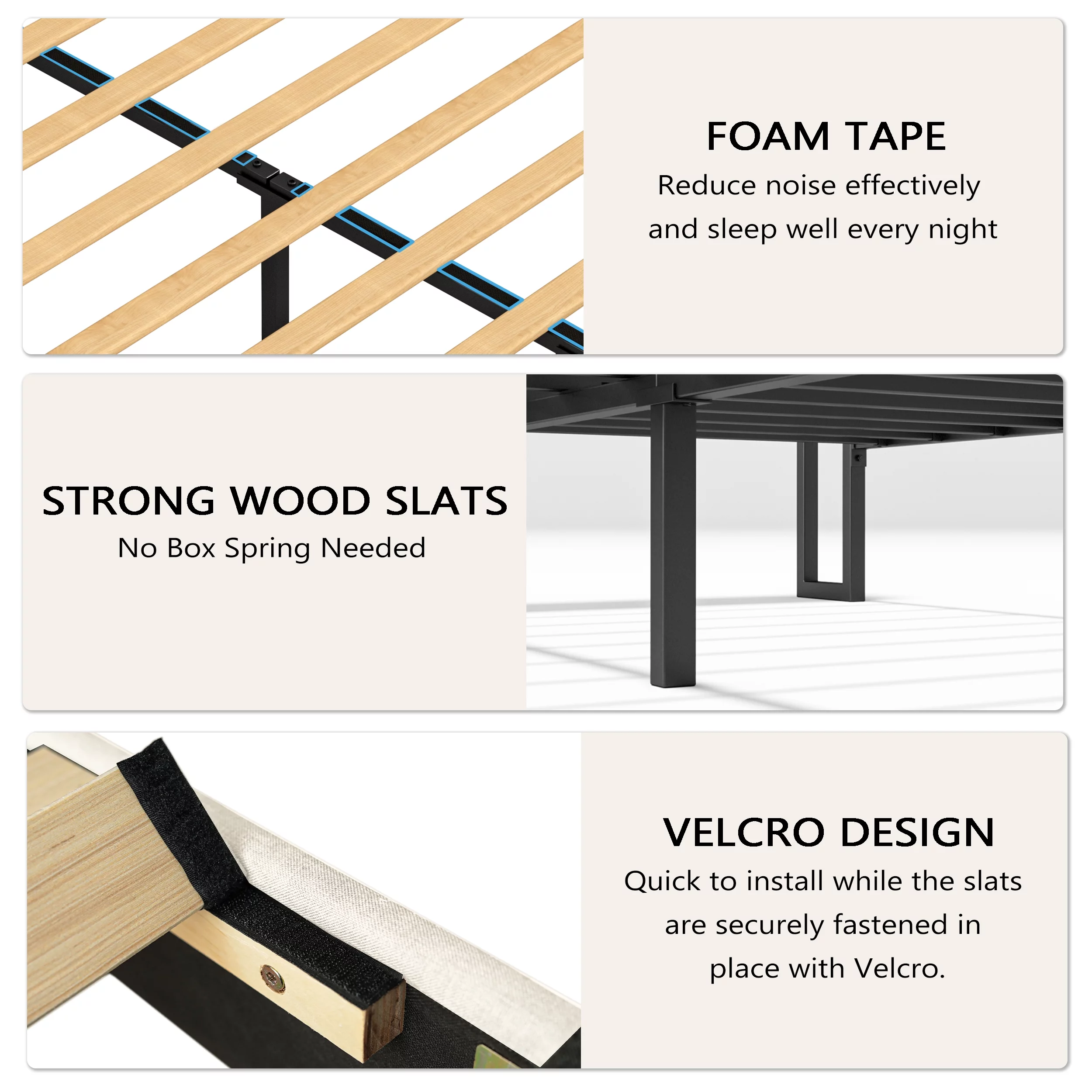 Eavesince 14 inches Queen Size Metal Bed Frames,No Box Spring Needed,Queen Platform Metal Bed Frame for Adult