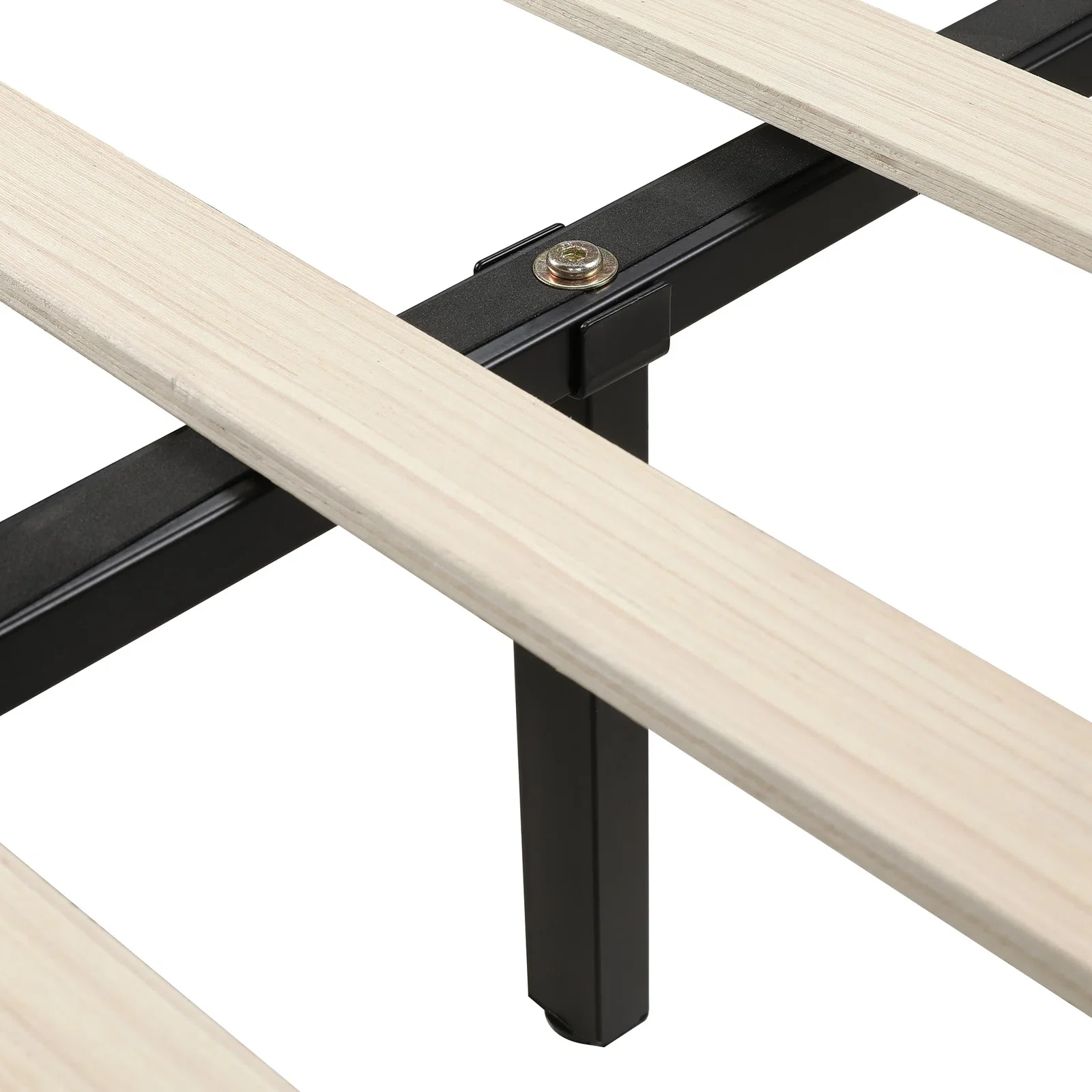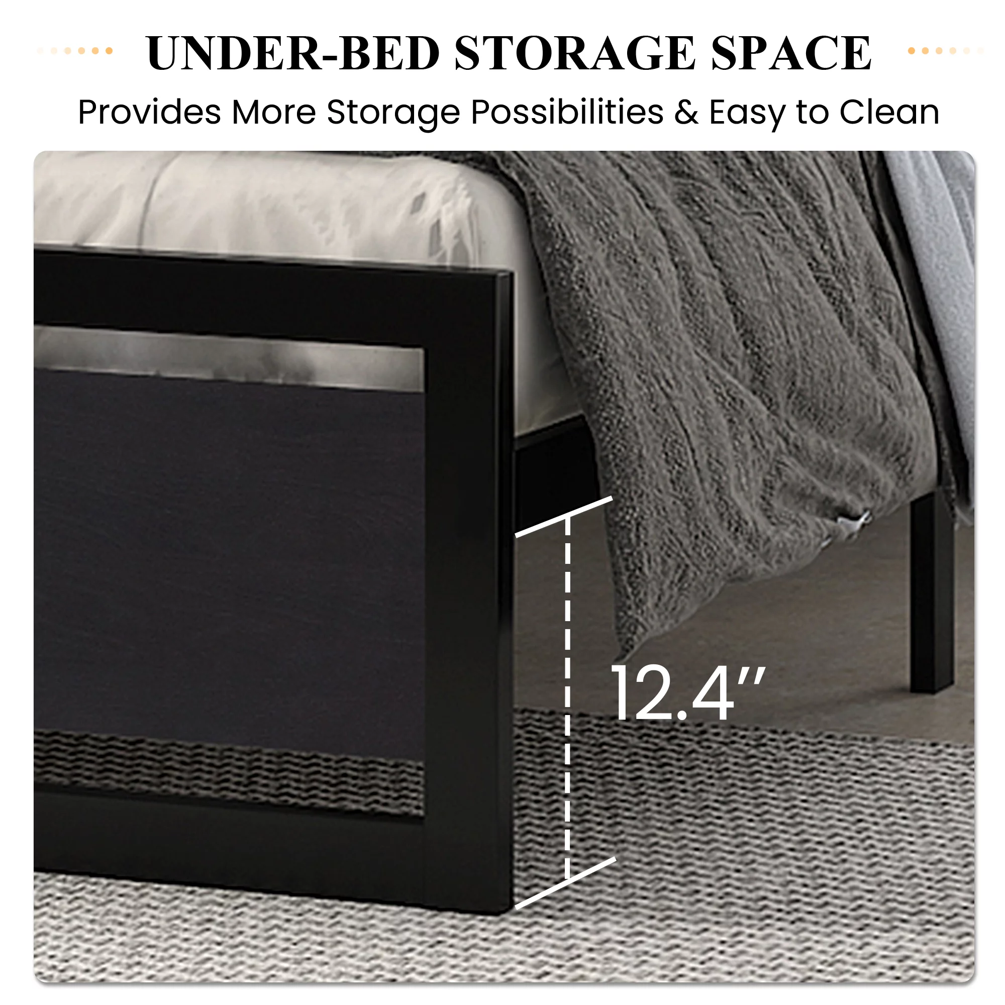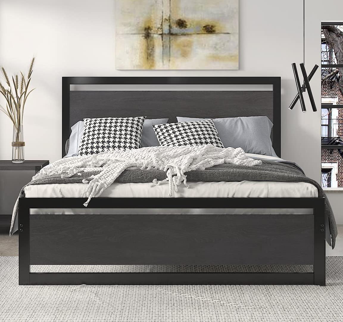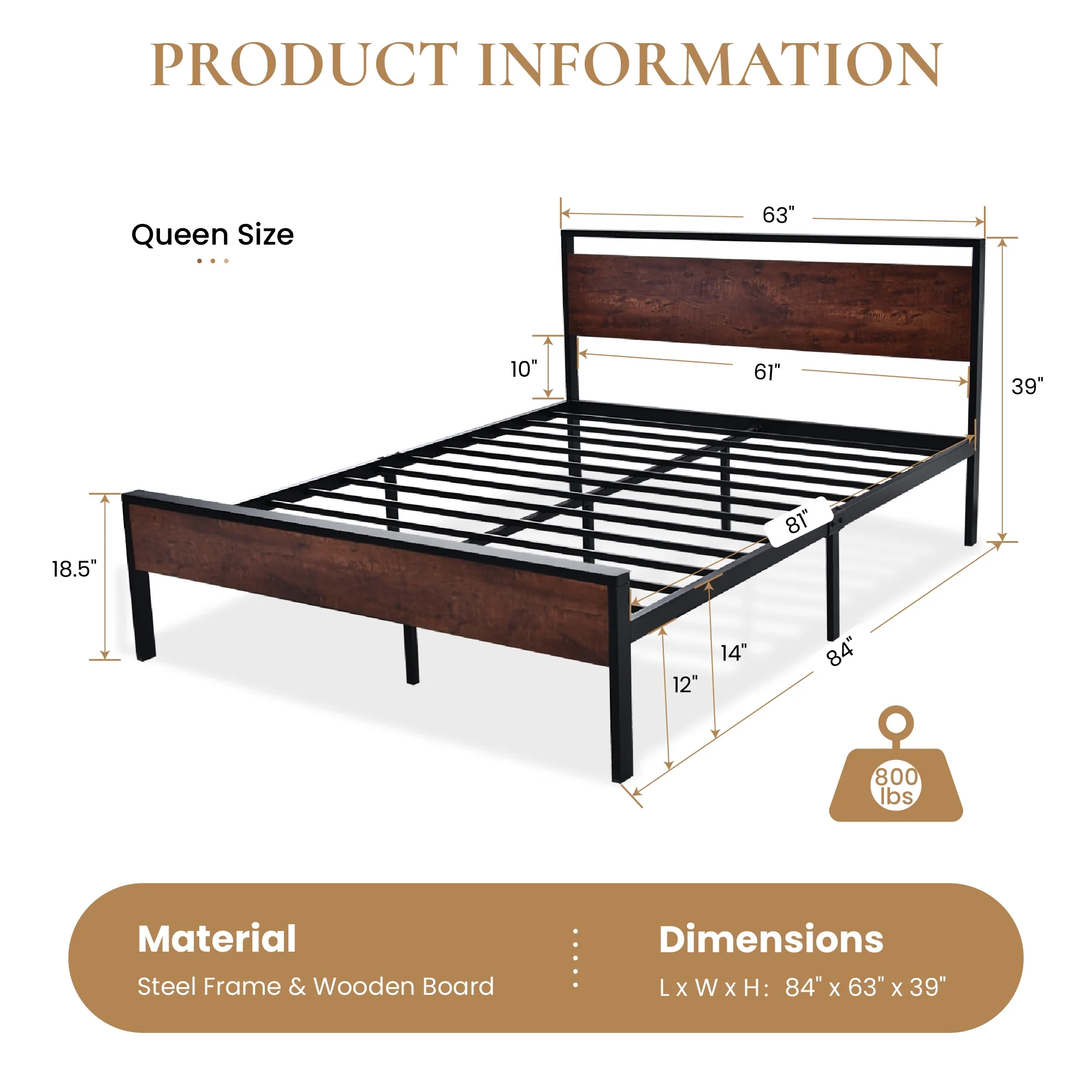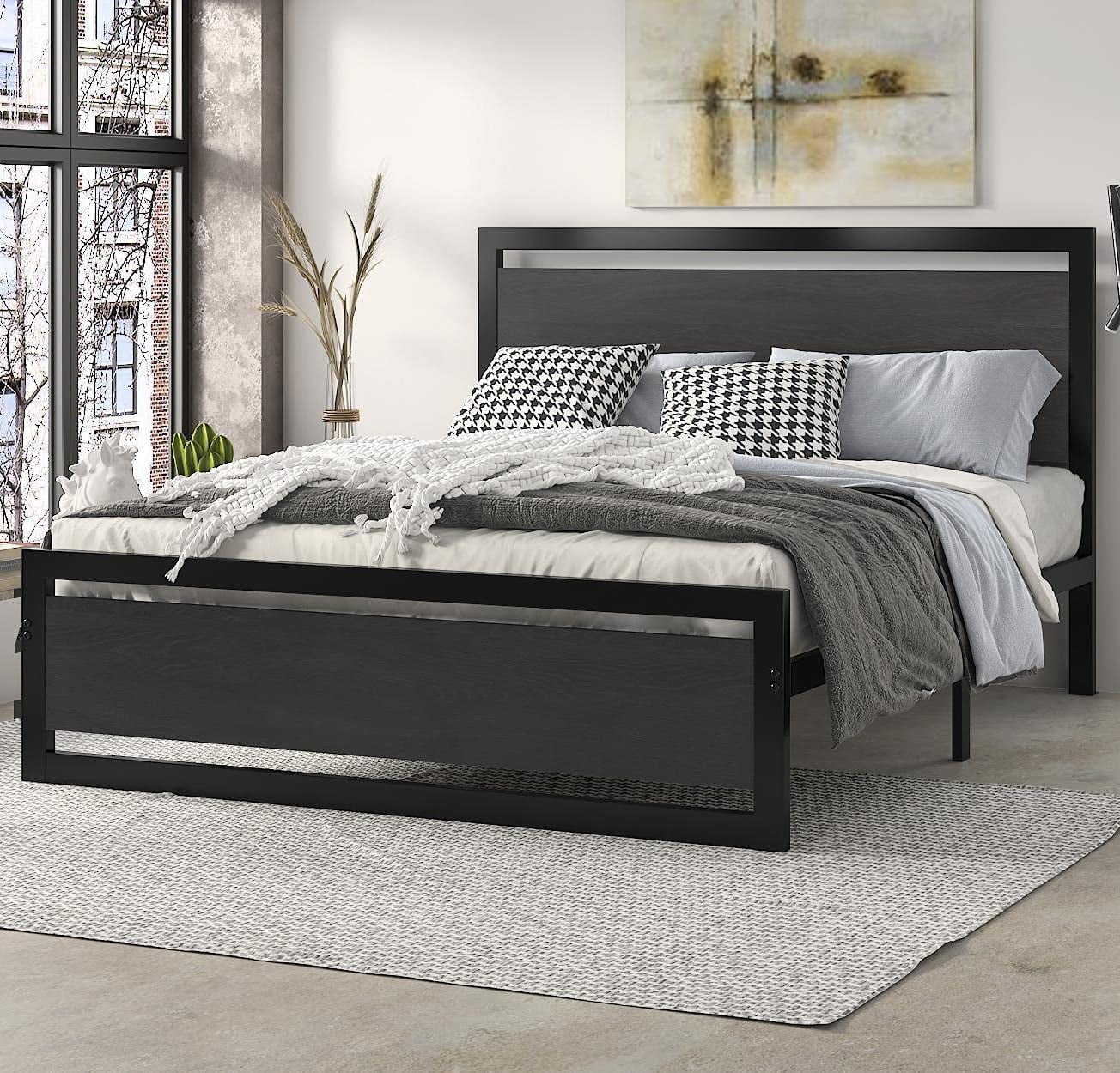 Sha Cerlin Black Queen Size Heavy Duty Metal Platform Bed Frame with Wooden Headboard & Footboard, Adult