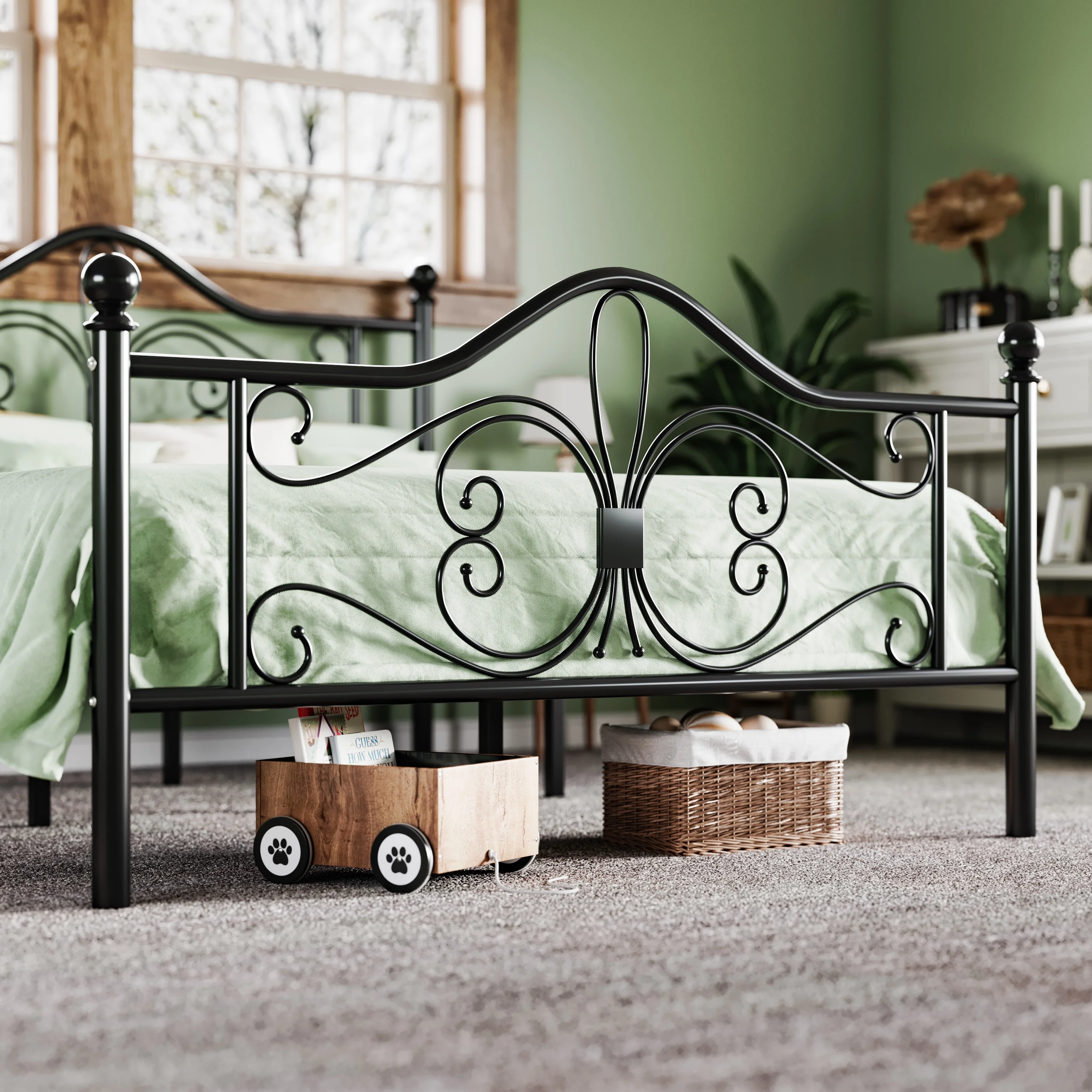 Allewie Queen Size Vintage Metal Bed Frame with Butterfly Pattern Design Headboard & Footboard, Black