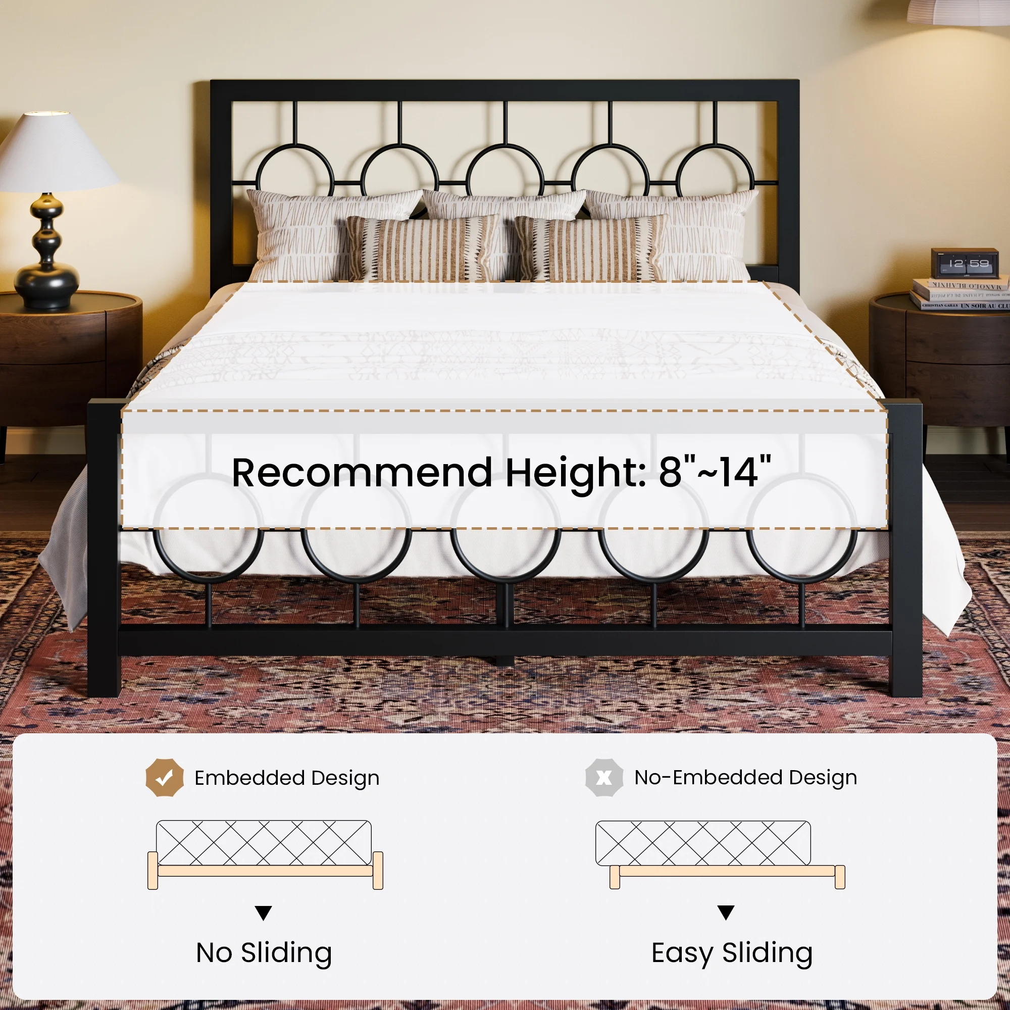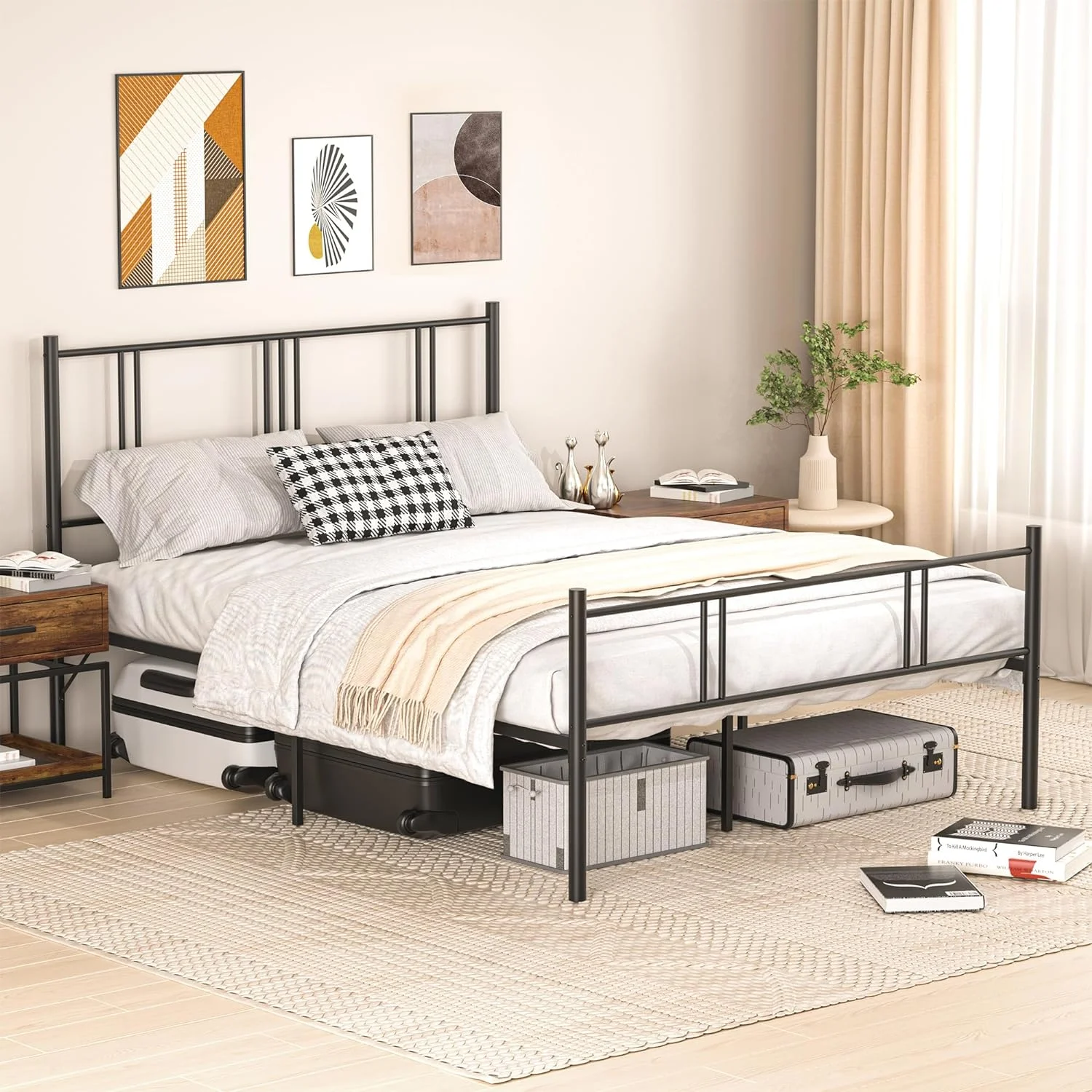 Gounni Queen Steel Bed Frame with Headboard Footboard, Metal Platform Bed