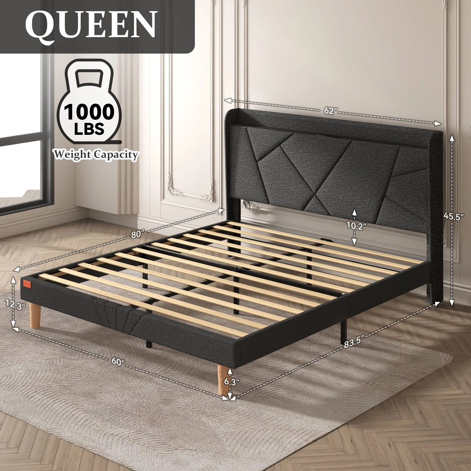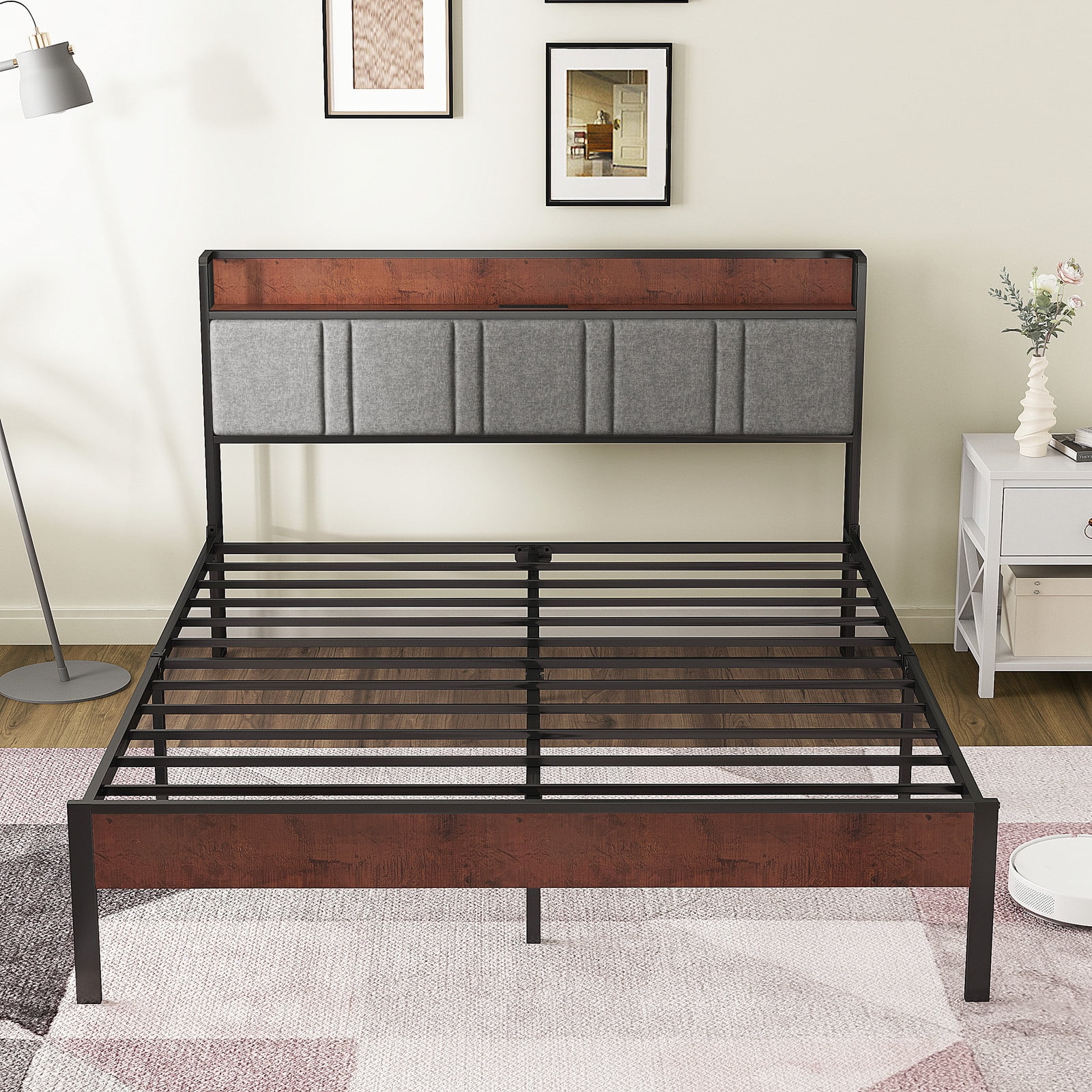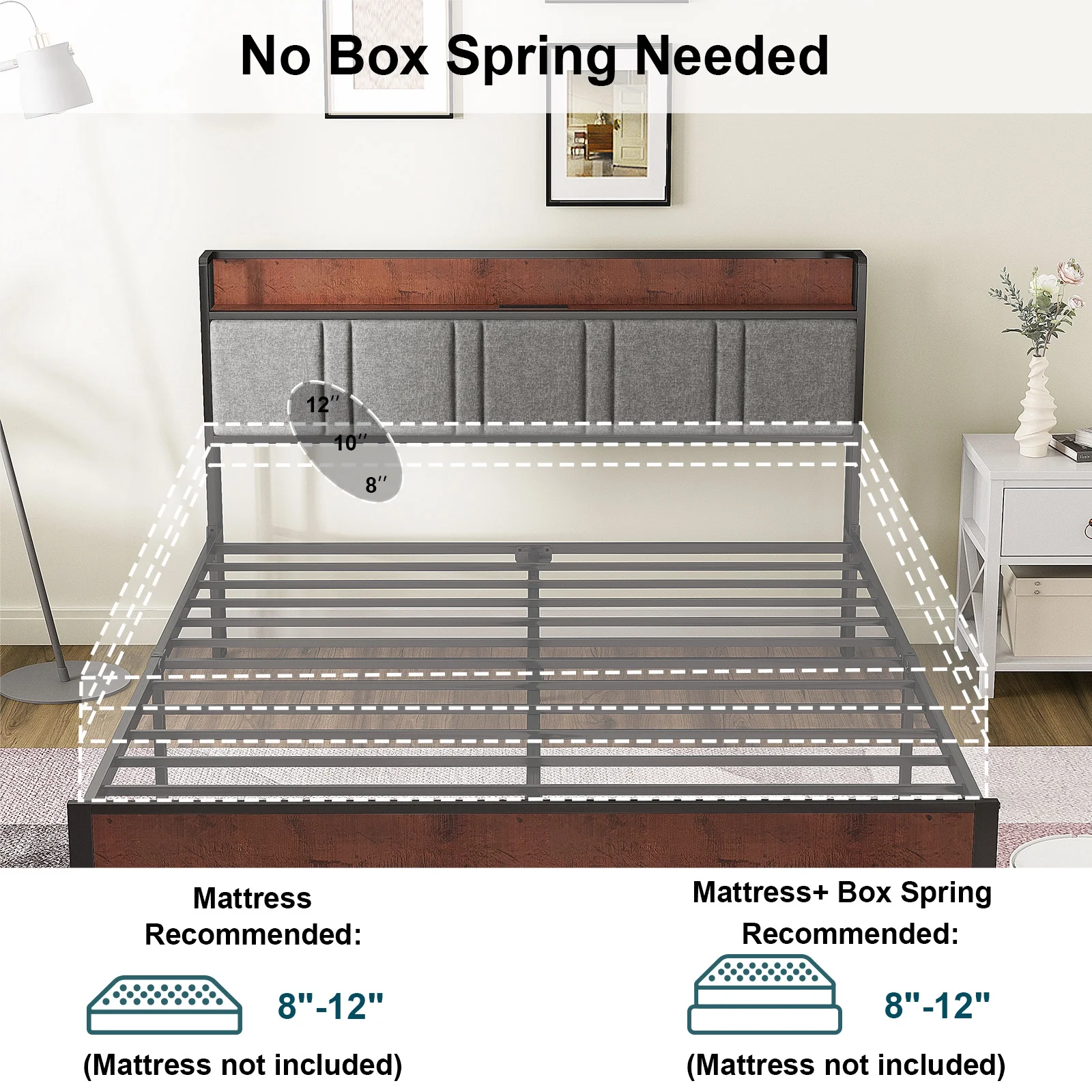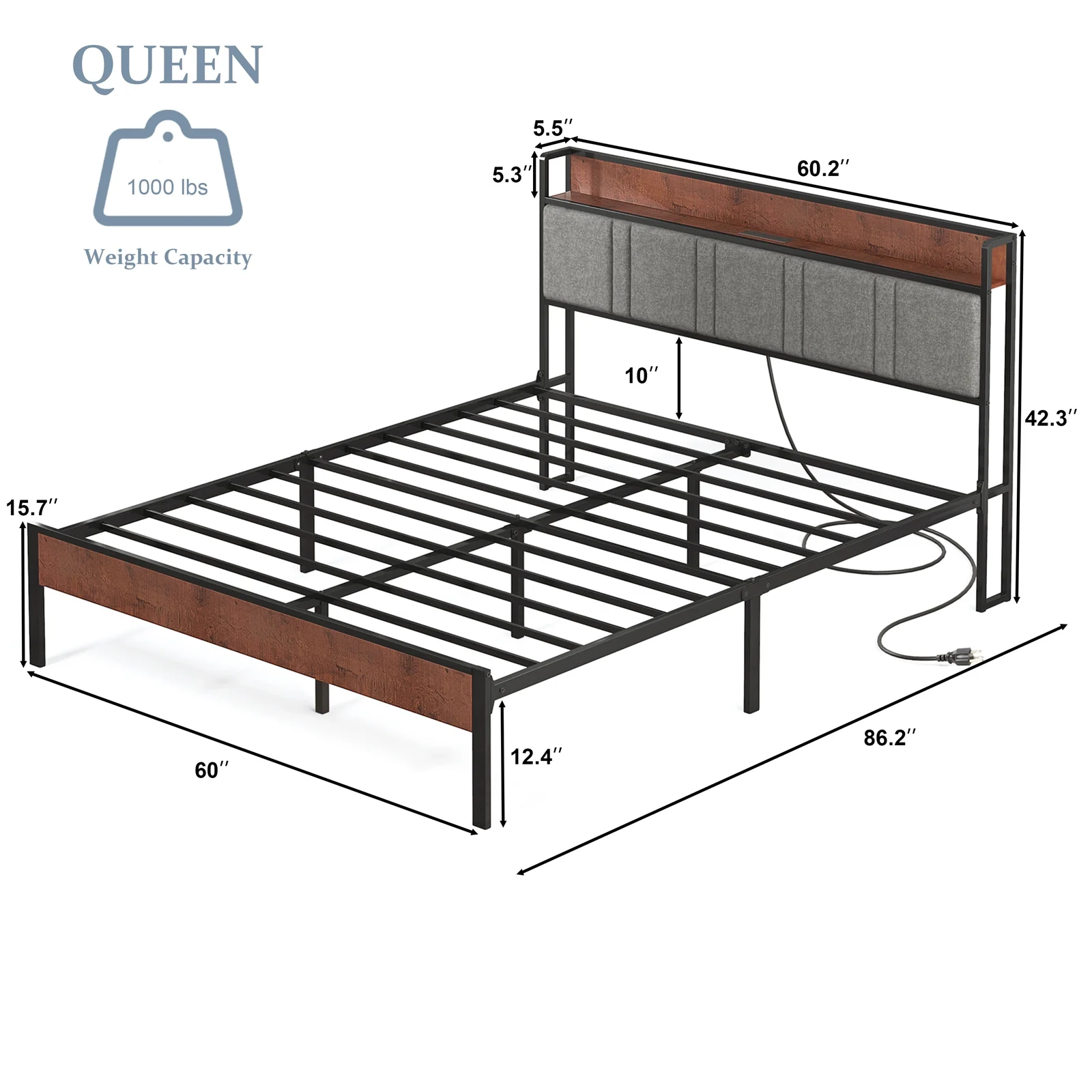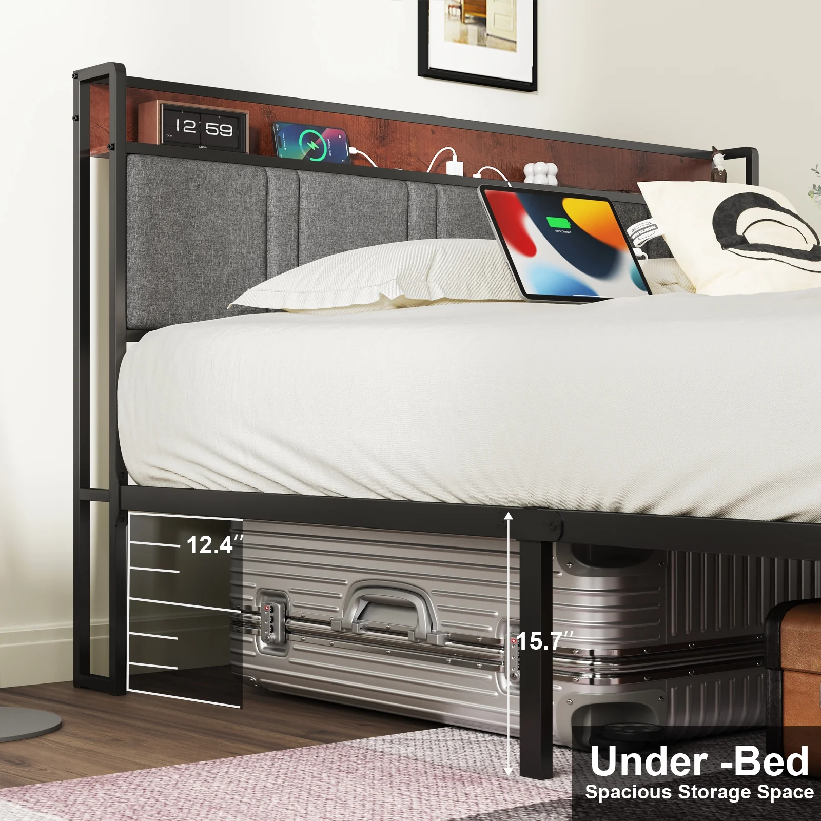 LIKIMIO Queen Platform Bed Frame with Headboard and Under-bed Storage Space, Industrial Grey